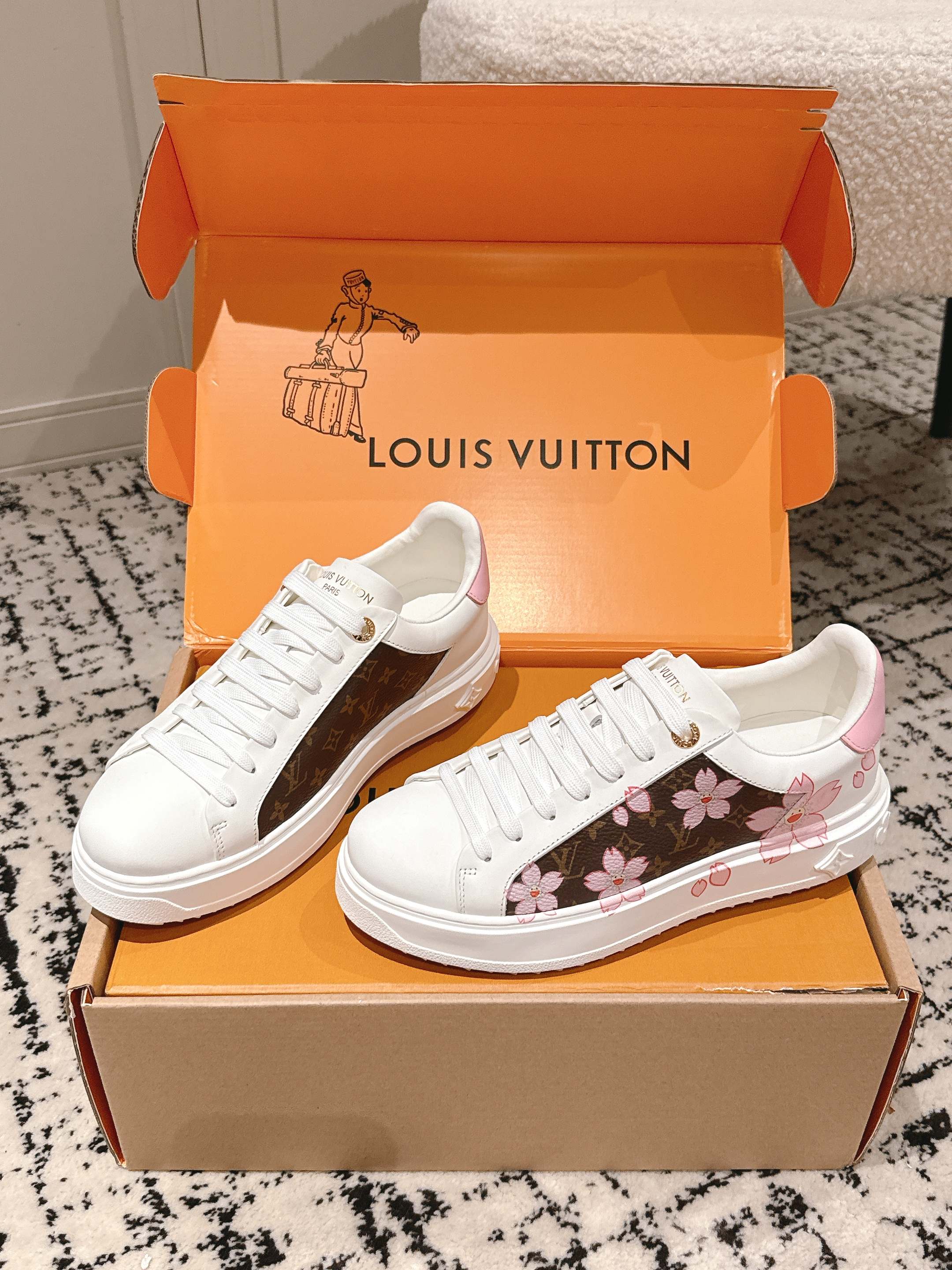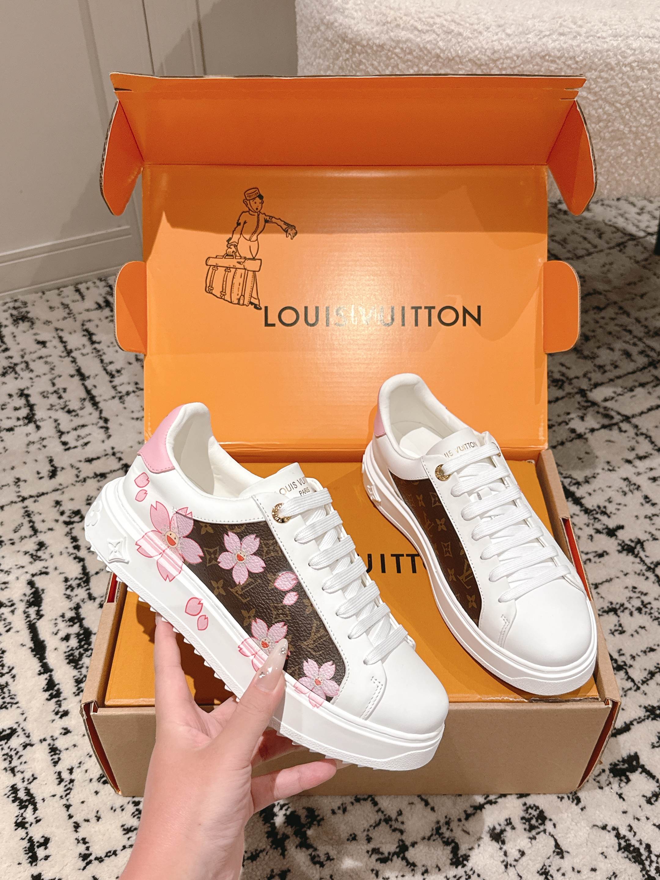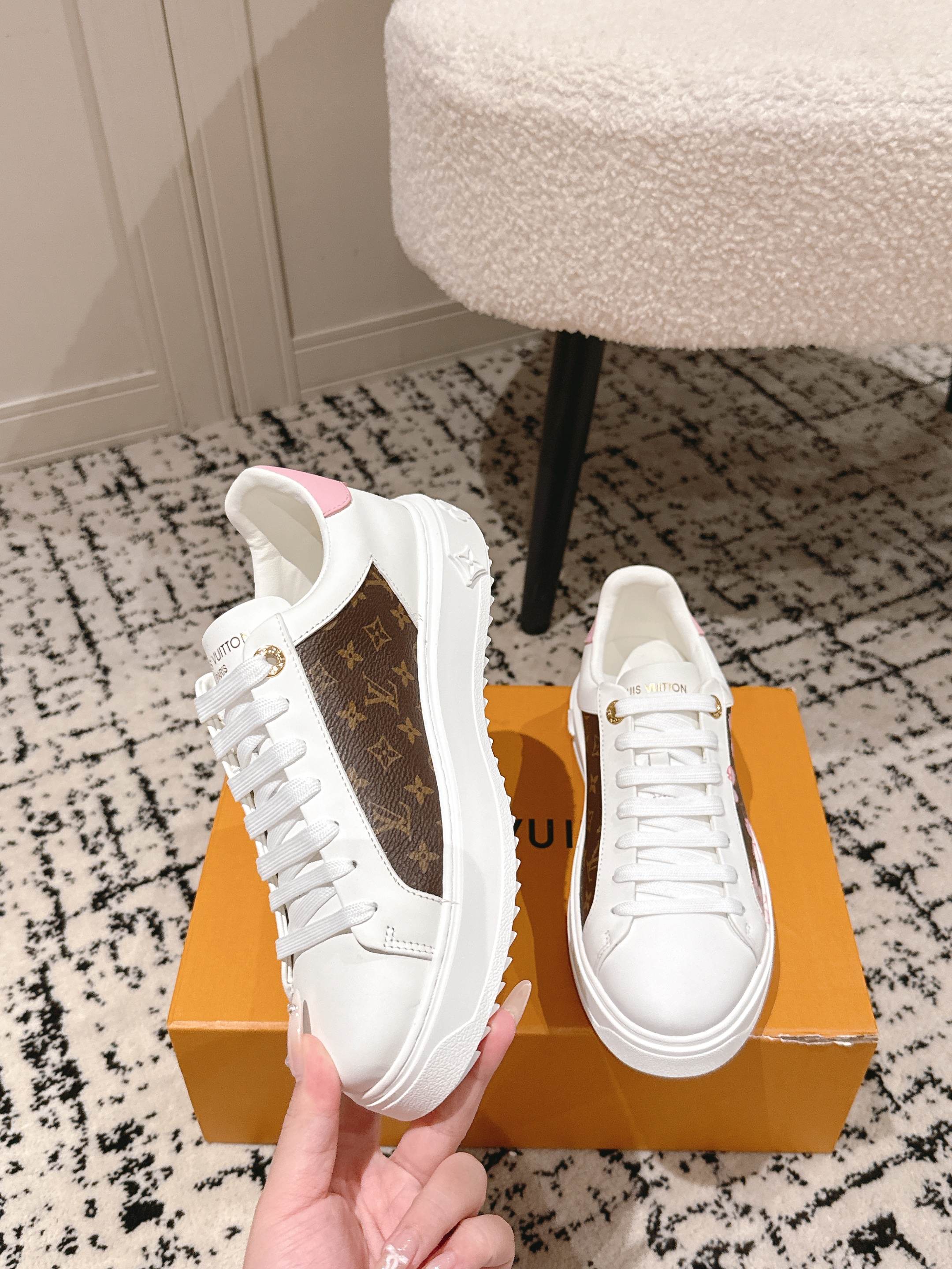 这款鞋子是AAAAA 1:1 质量 (非常棒). 使用了和原版一模一样的材料. 商标部分也保持了和路易威登/Louis Vuitton一样. 图片拍摄是实物鞋子拍摄, 您所收到的实物保证和我们图片一模一样.