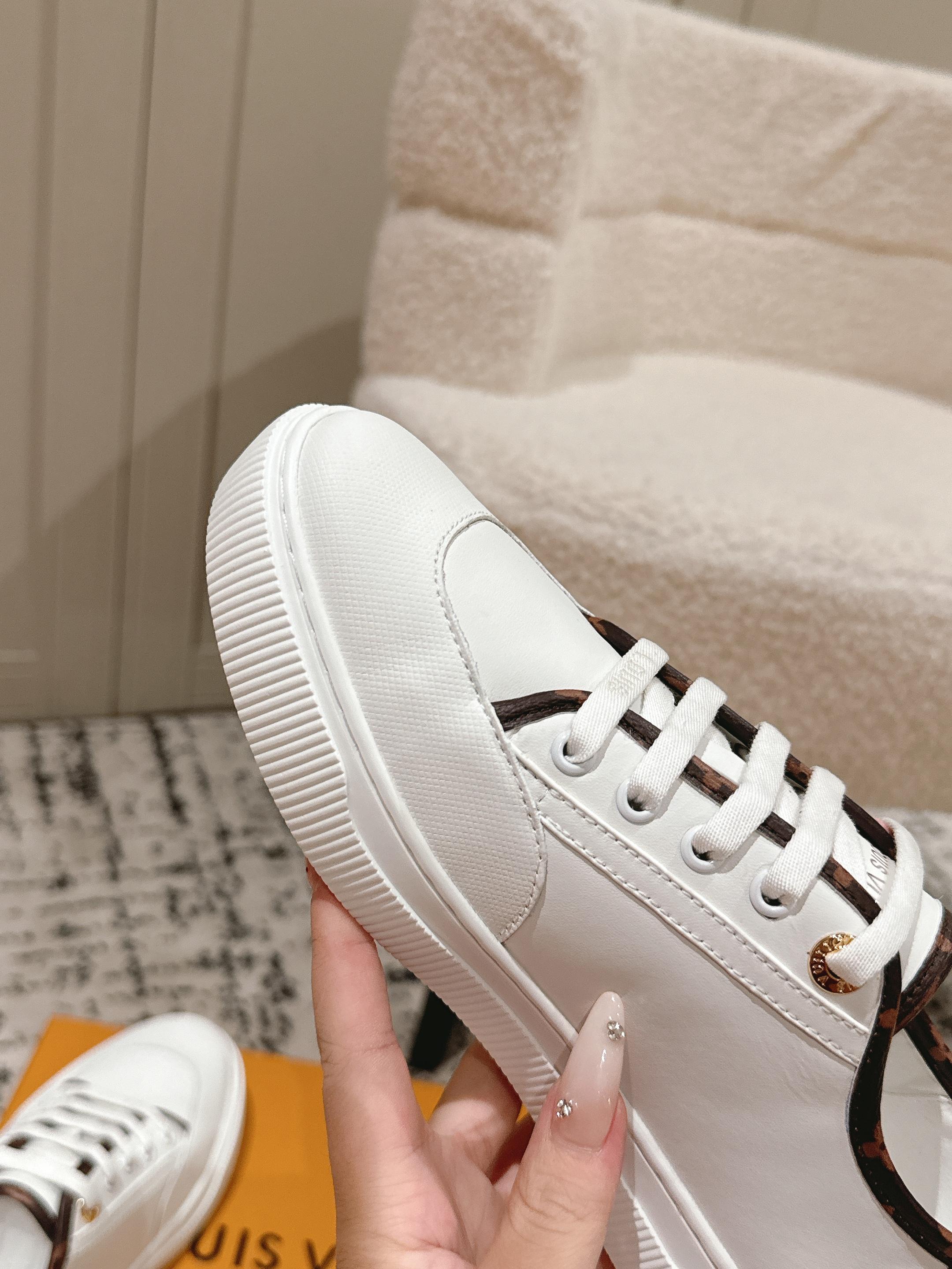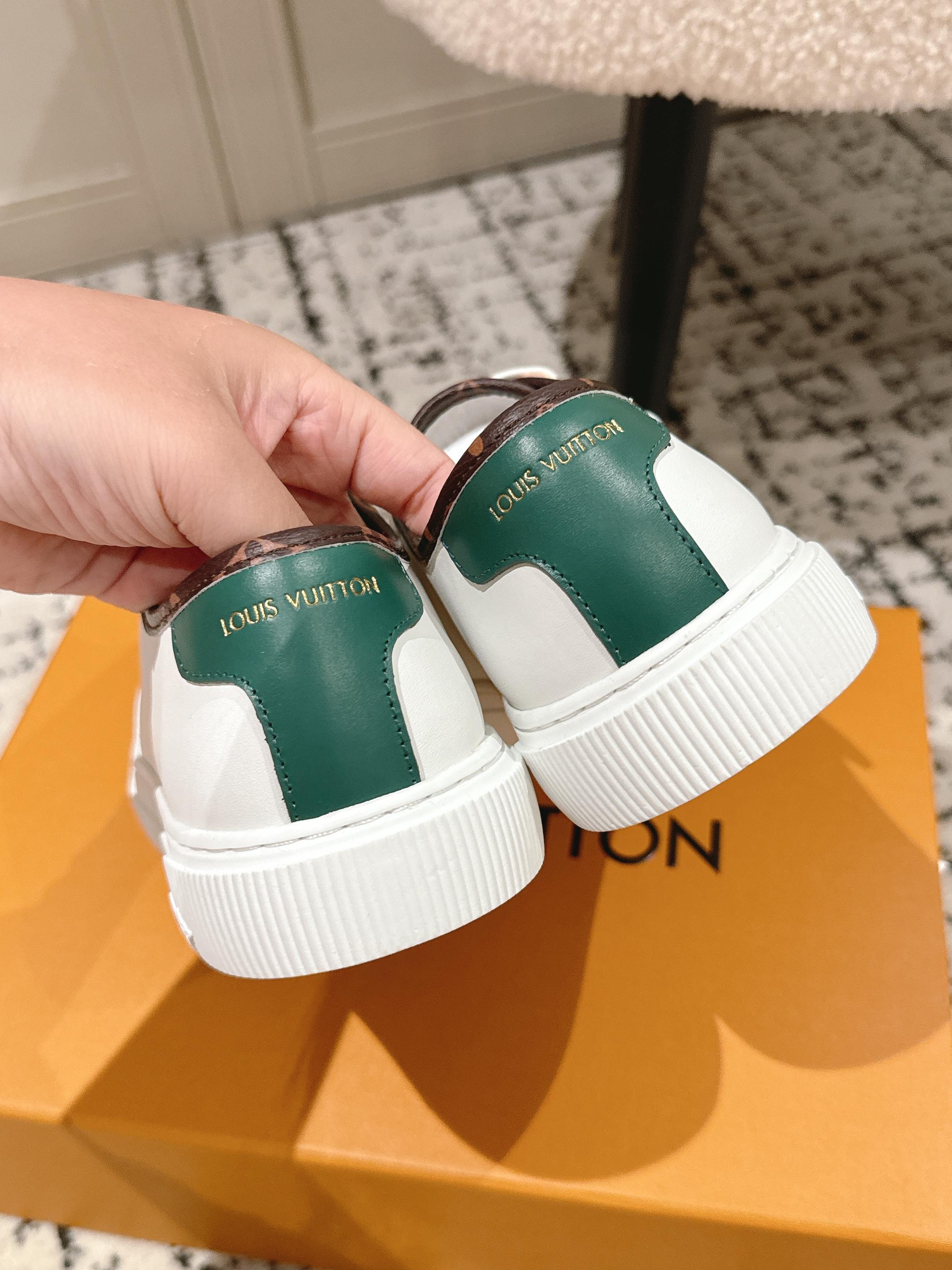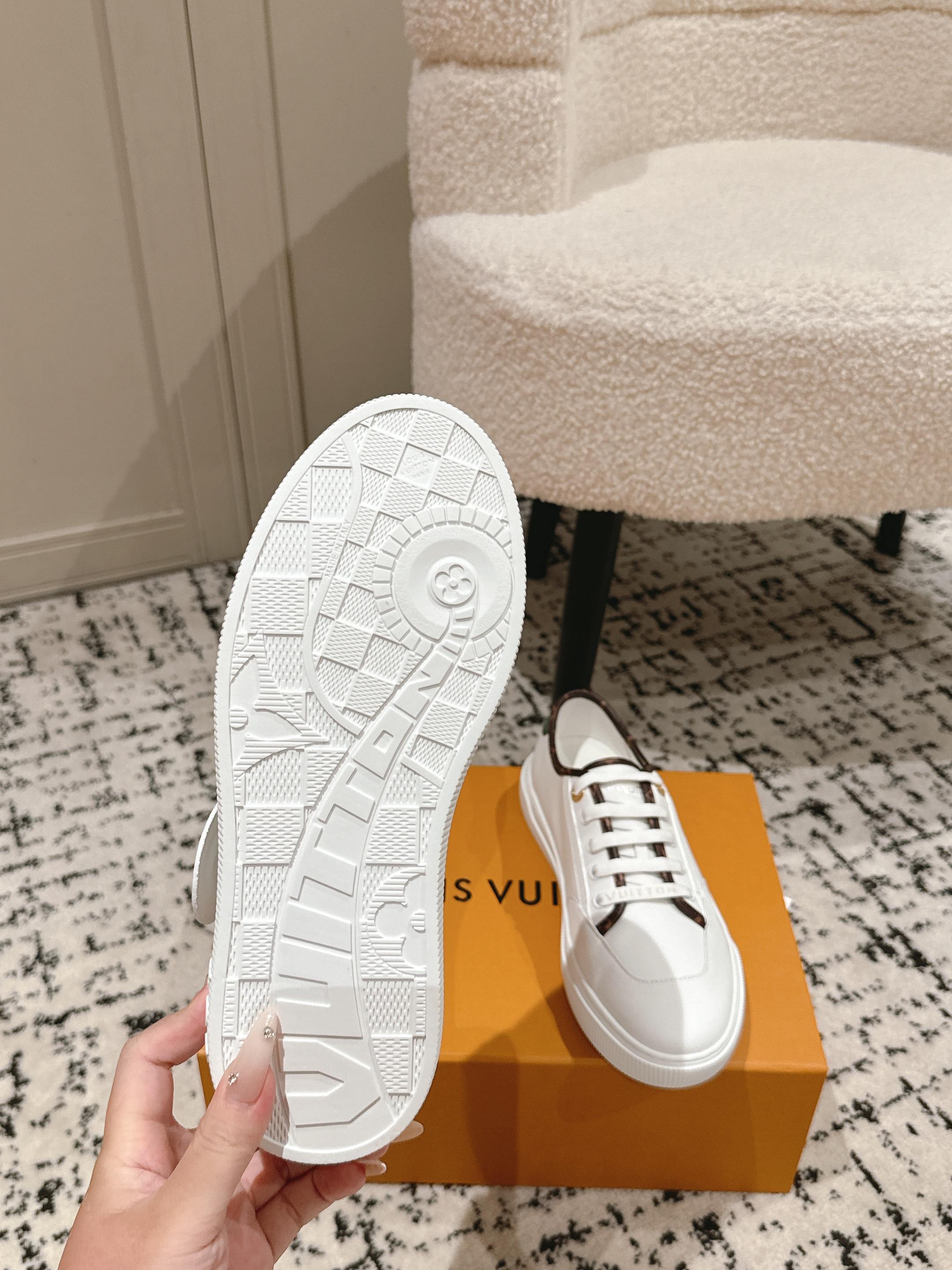 这款鞋子是AAAAA 1:1 质量 (非常棒). 使用了和原版一模一样的材料. 商标部分也保持了和路易威登/Louis Vuitton一样. 图片拍摄是实物鞋子拍摄, 您所收到的实物保证和我们图片一模一样.