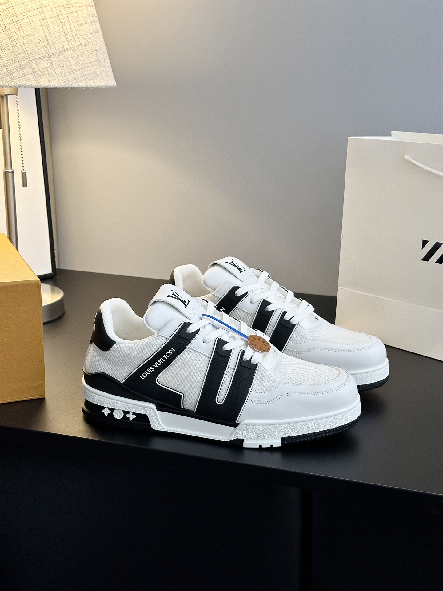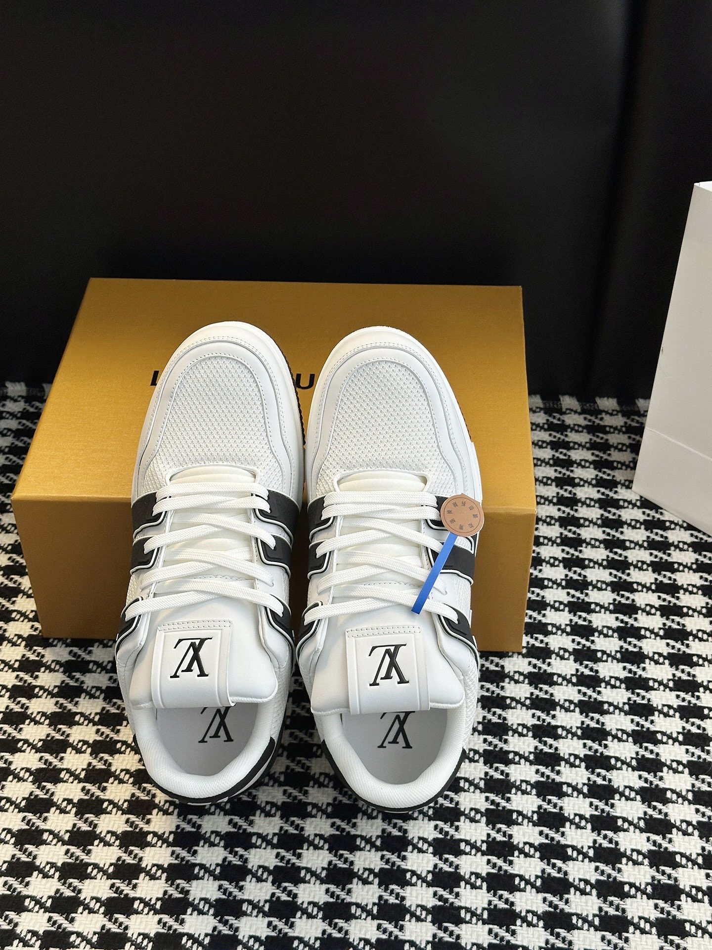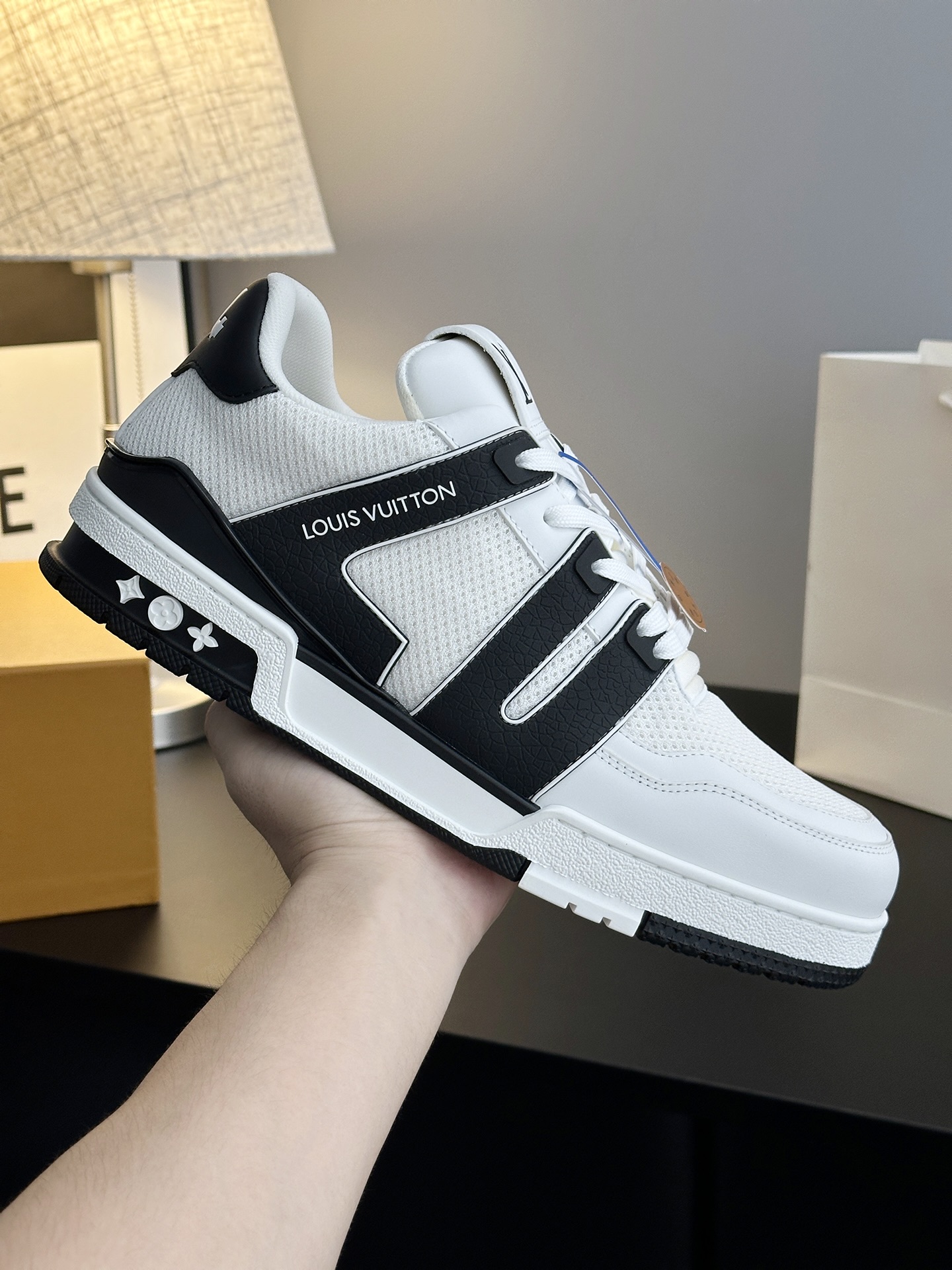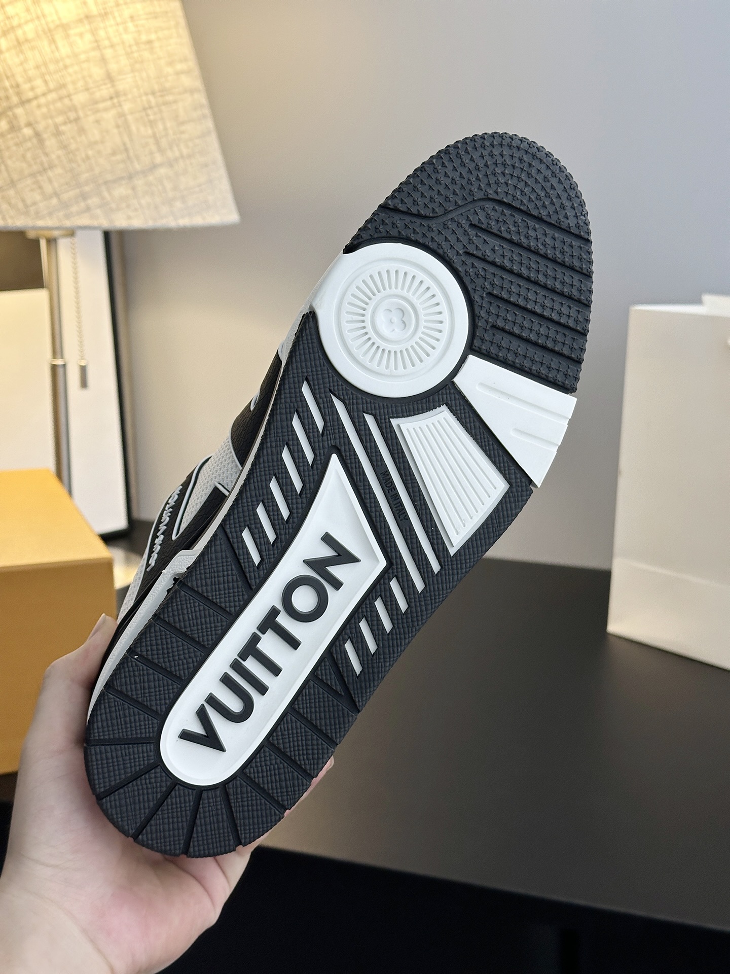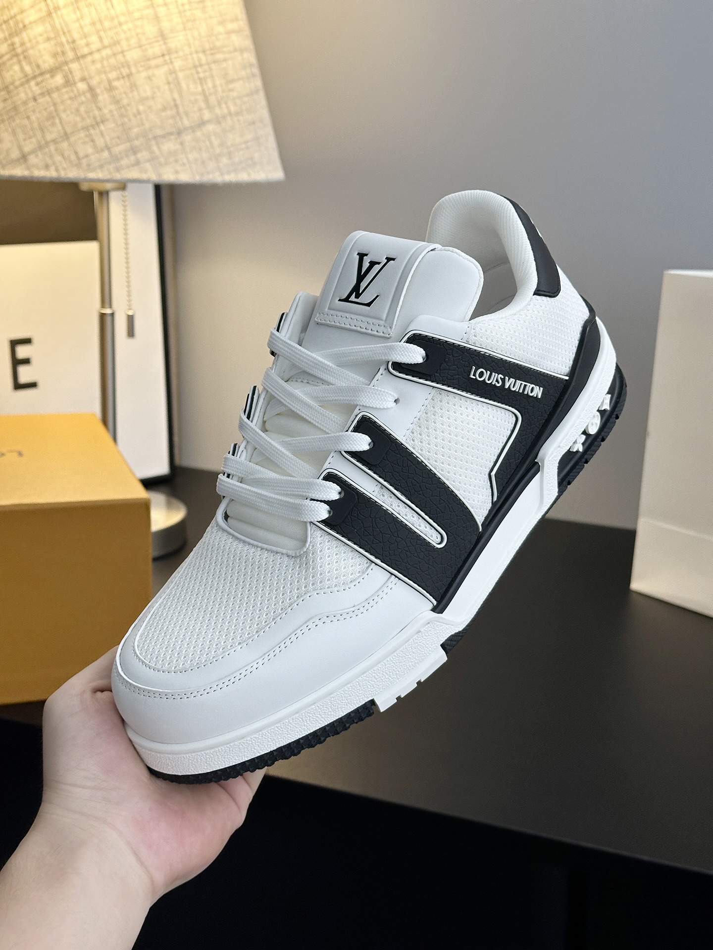 这款鞋子是AAAAA 1:1 质量 (非常棒). 使用了和原版一模一样的材料. 商标部分也保持了和路易威登/Louis Vuitton一样. 图片拍摄是实物鞋子拍摄, 您所收到的实物保证和我们图片一模一样.
