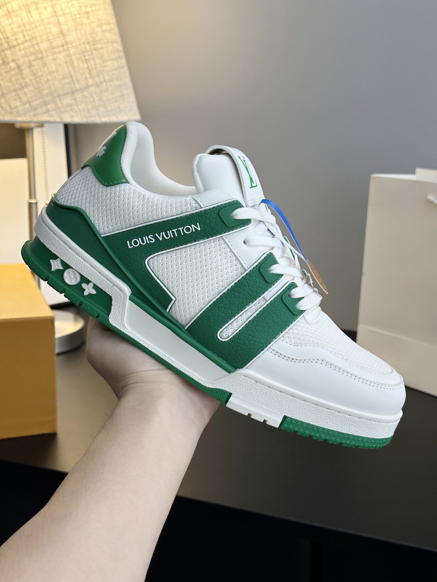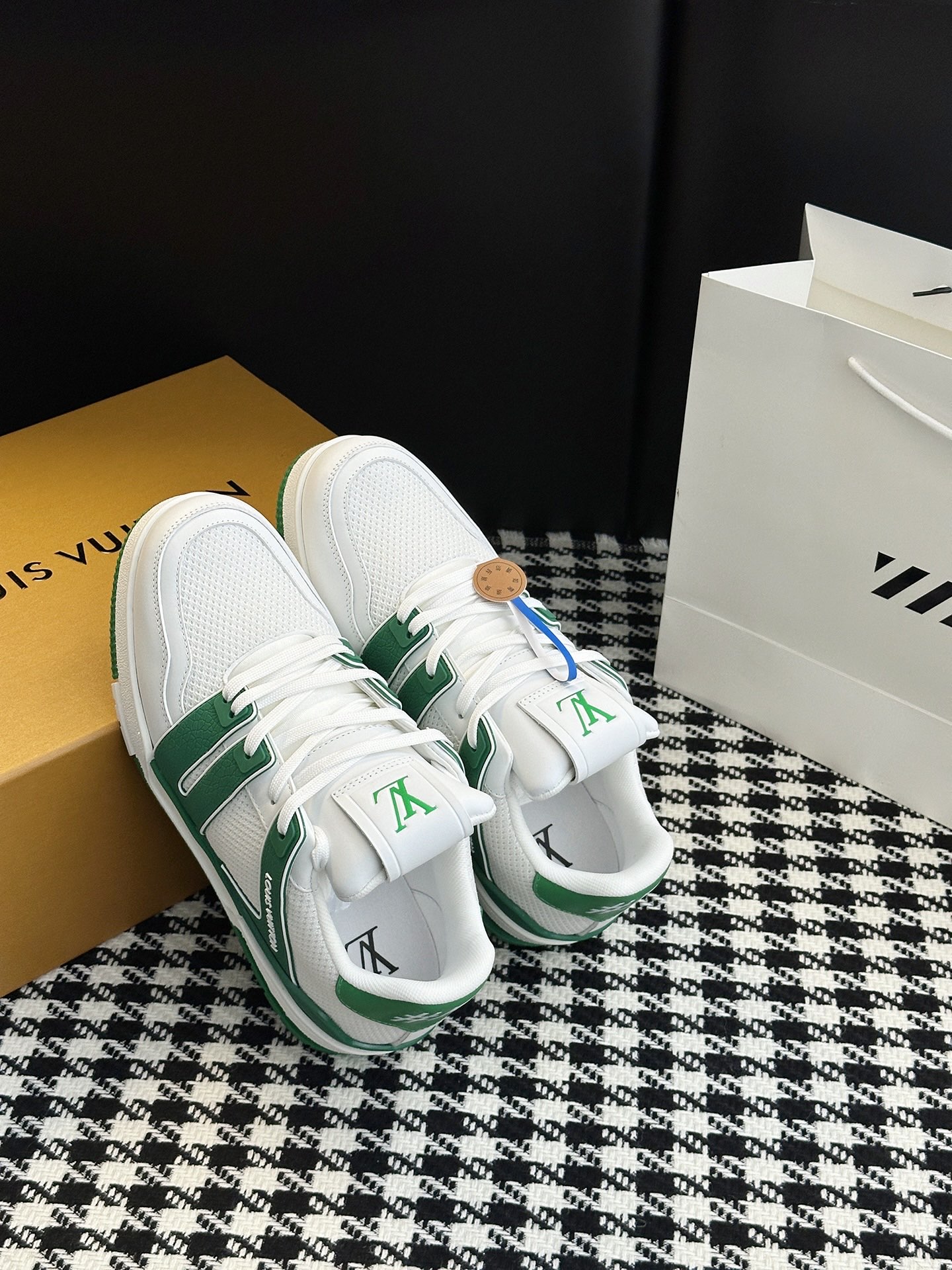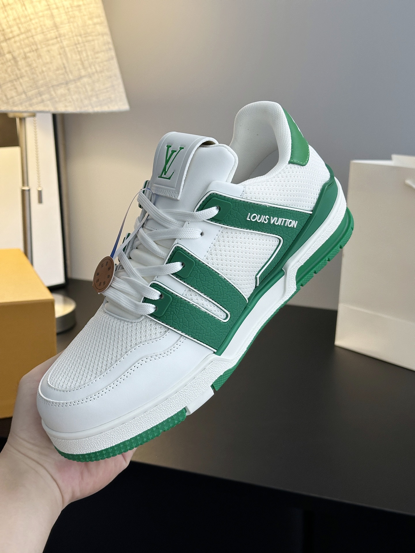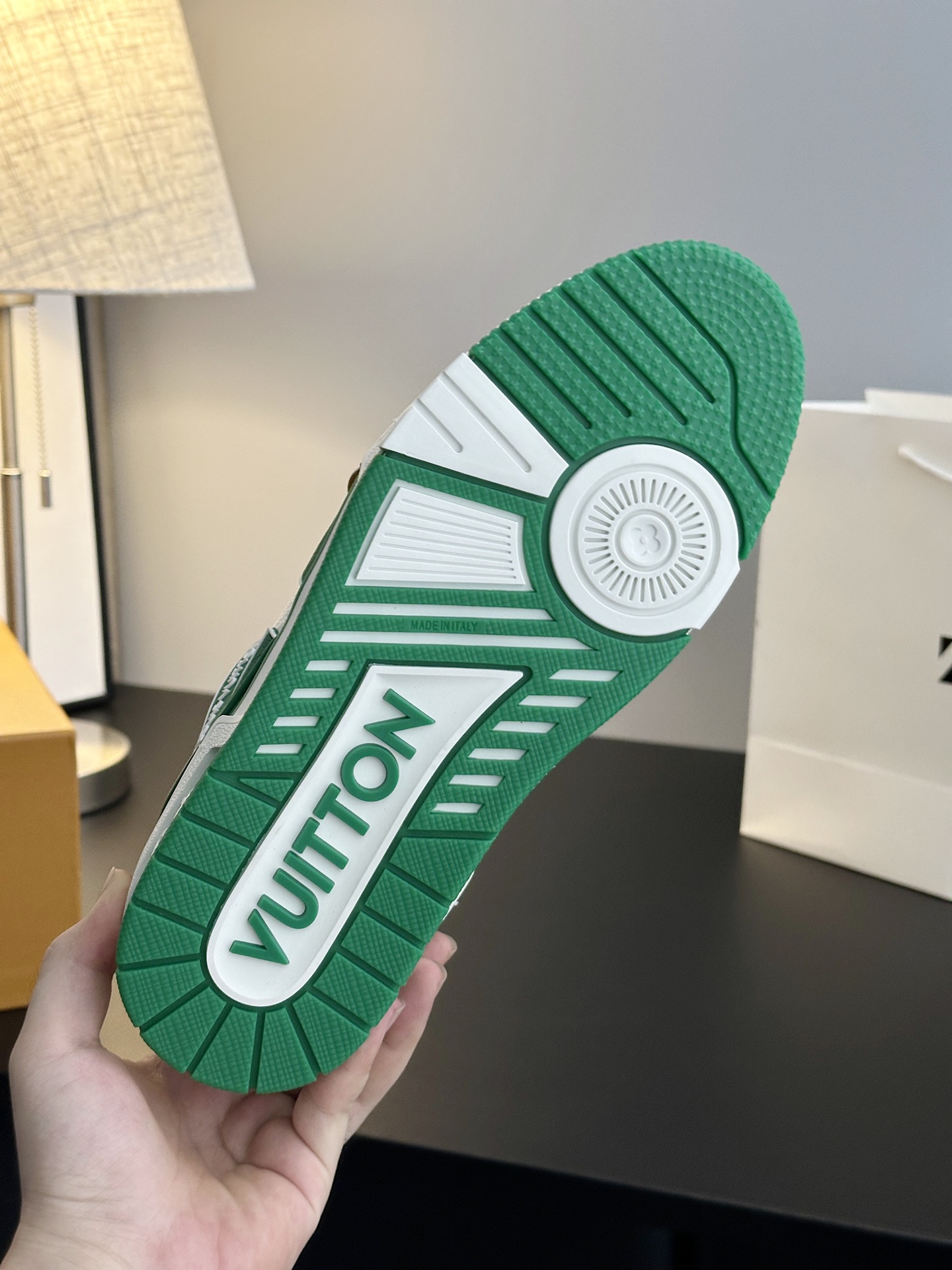 这款鞋子是AAAAA 1:1 质量 (非常棒). 使用了和原版一模一样的材料. 商标部分也保持了和路易威登/Louis Vuitton一样. 图片拍摄是实物鞋子拍摄, 您所收到的实物保证和我们图片一模一样.