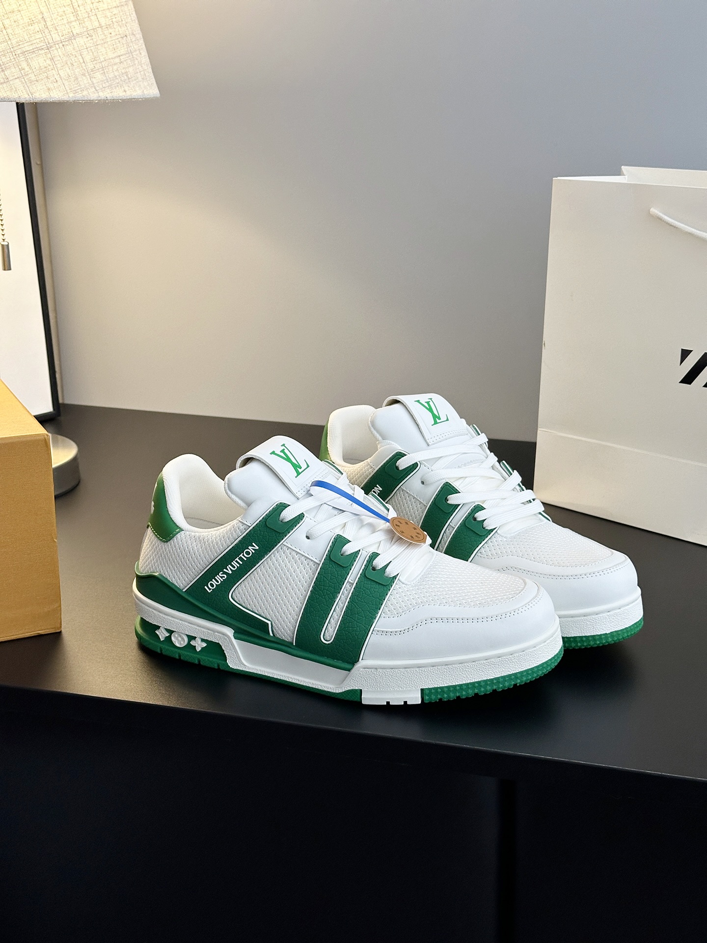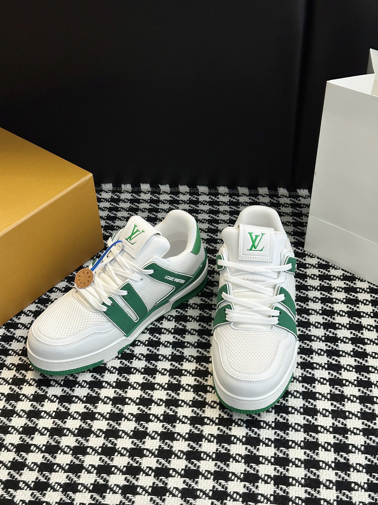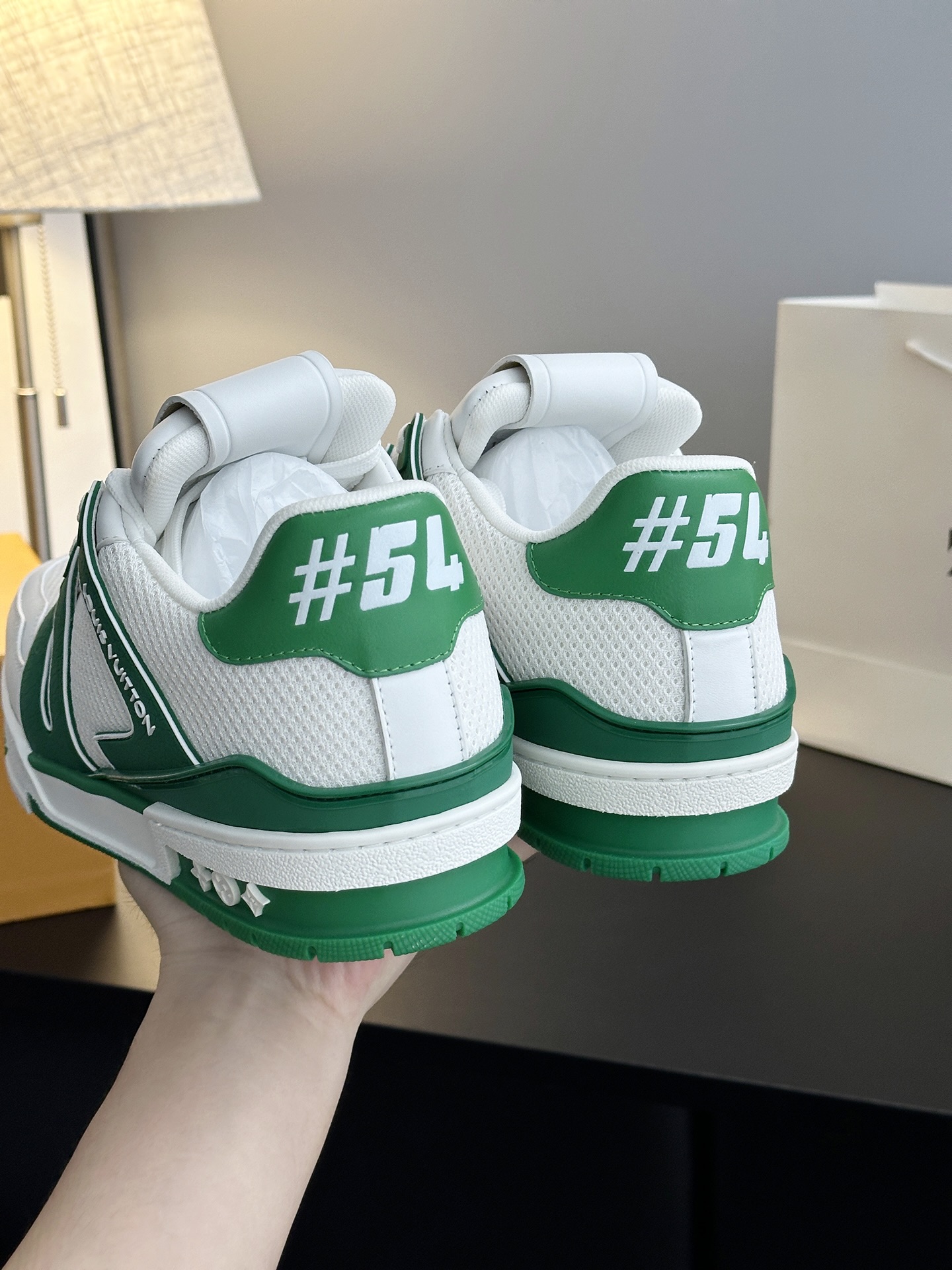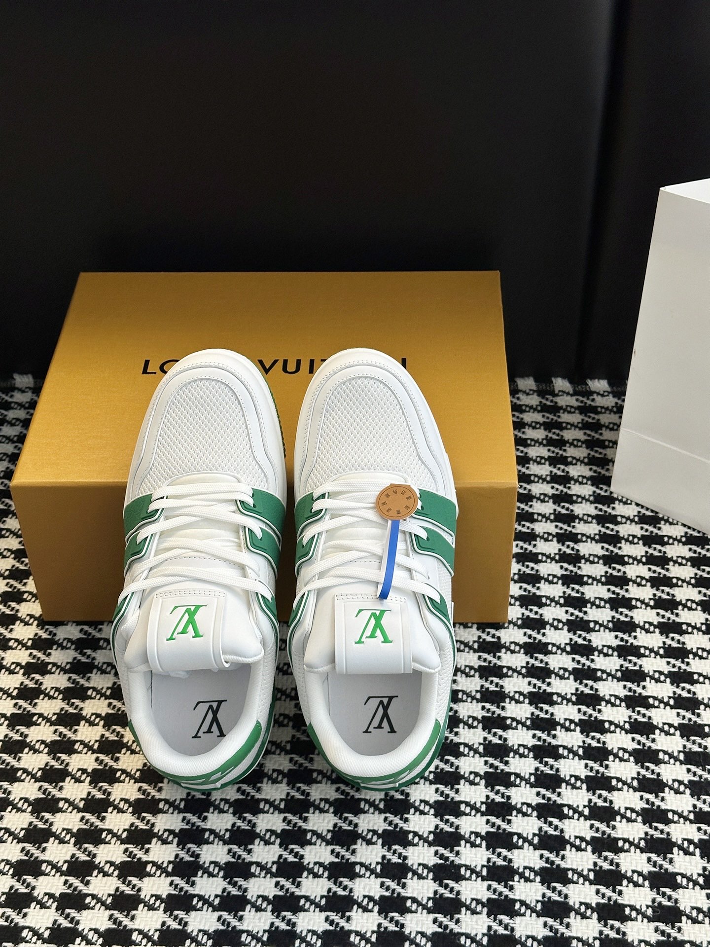 这款鞋子是AAAAA 1:1 质量 (非常棒). 使用了和原版一模一样的材料. 商标部分也保持了和路易威登/Louis Vuitton一样. 图片拍摄是实物鞋子拍摄, 您所收到的实物保证和我们图片一模一样.