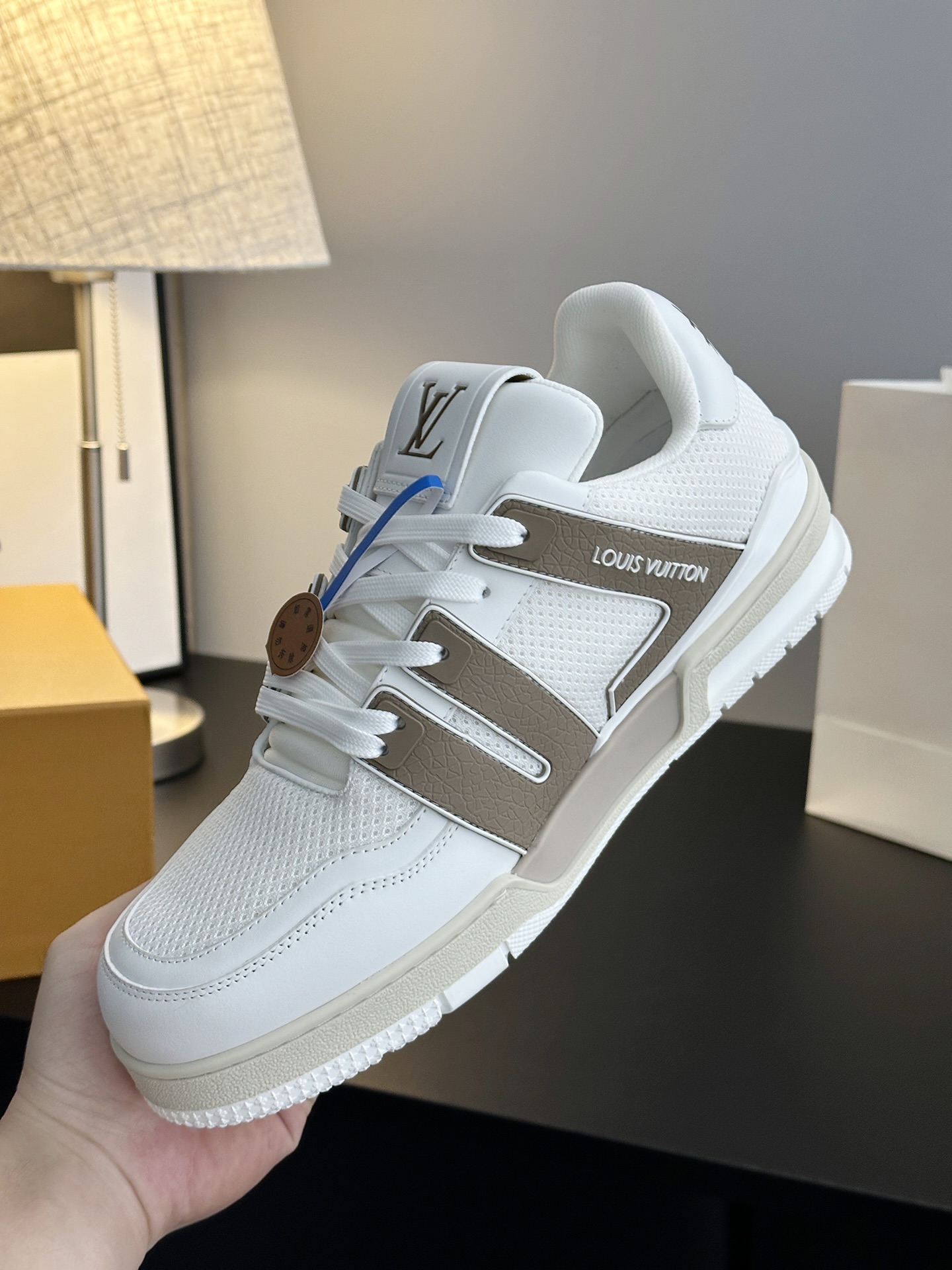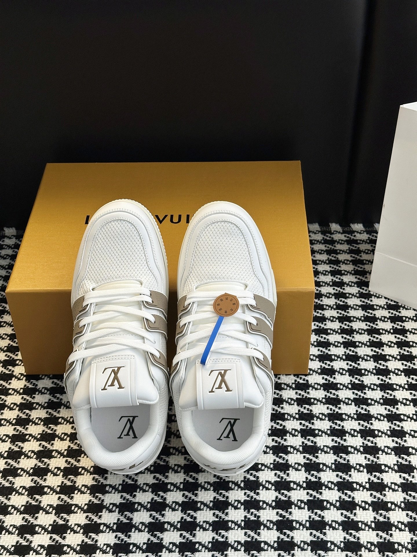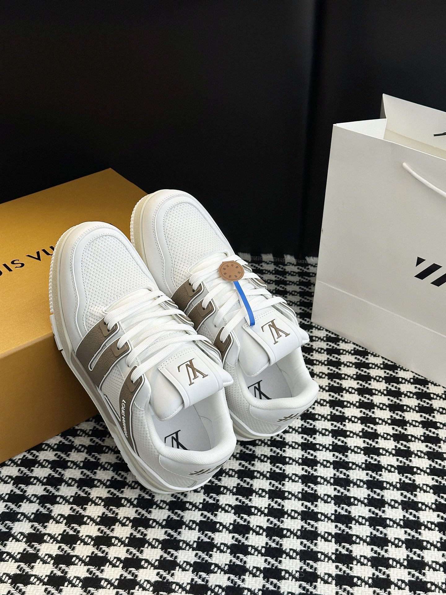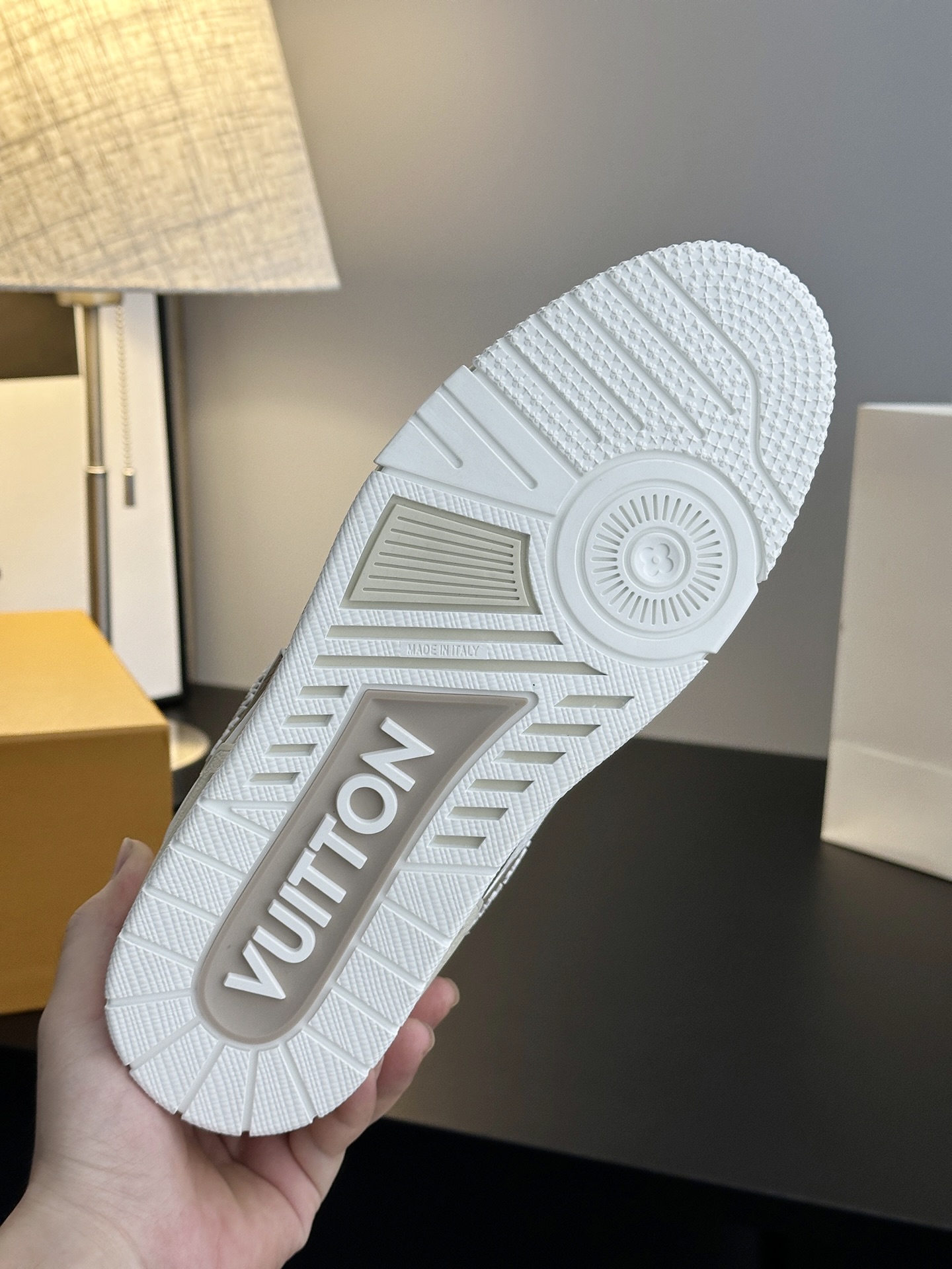 这款鞋子是AAAAA 1:1 质量 (非常棒). 使用了和原版一模一样的材料. 商标部分也保持了和路易威登/Louis Vuitton一样. 图片拍摄是实物鞋子拍摄, 您所收到的实物保证和我们图片一模一样.