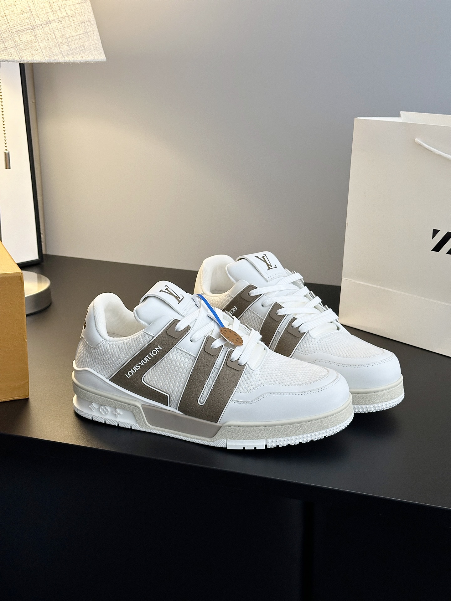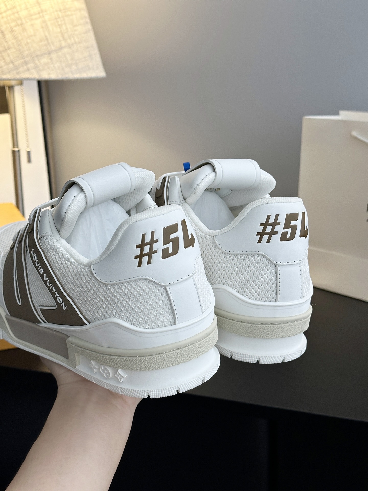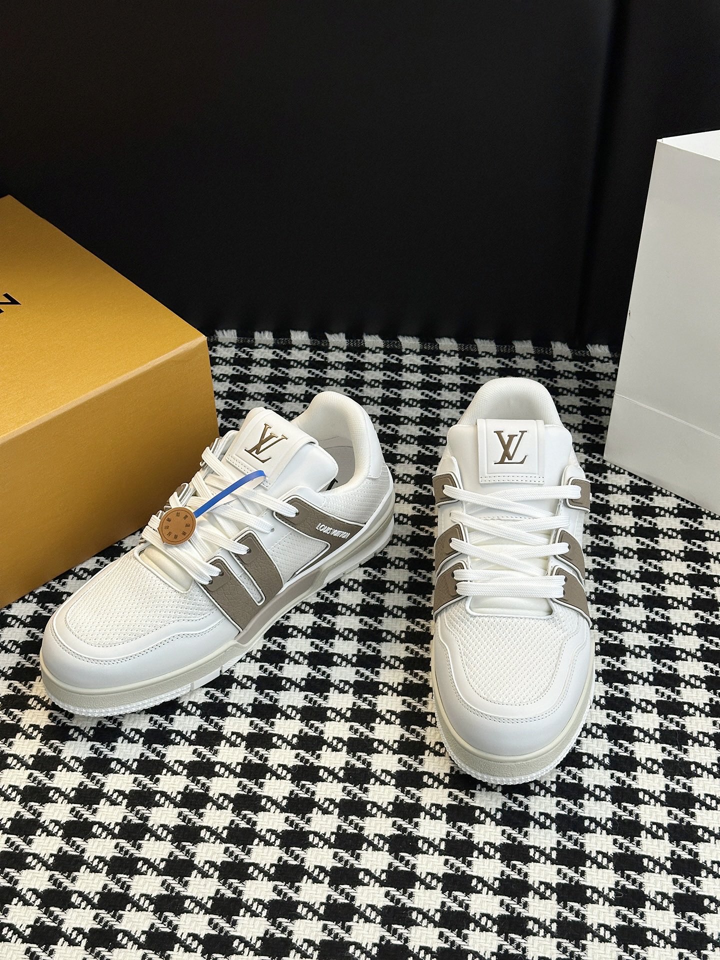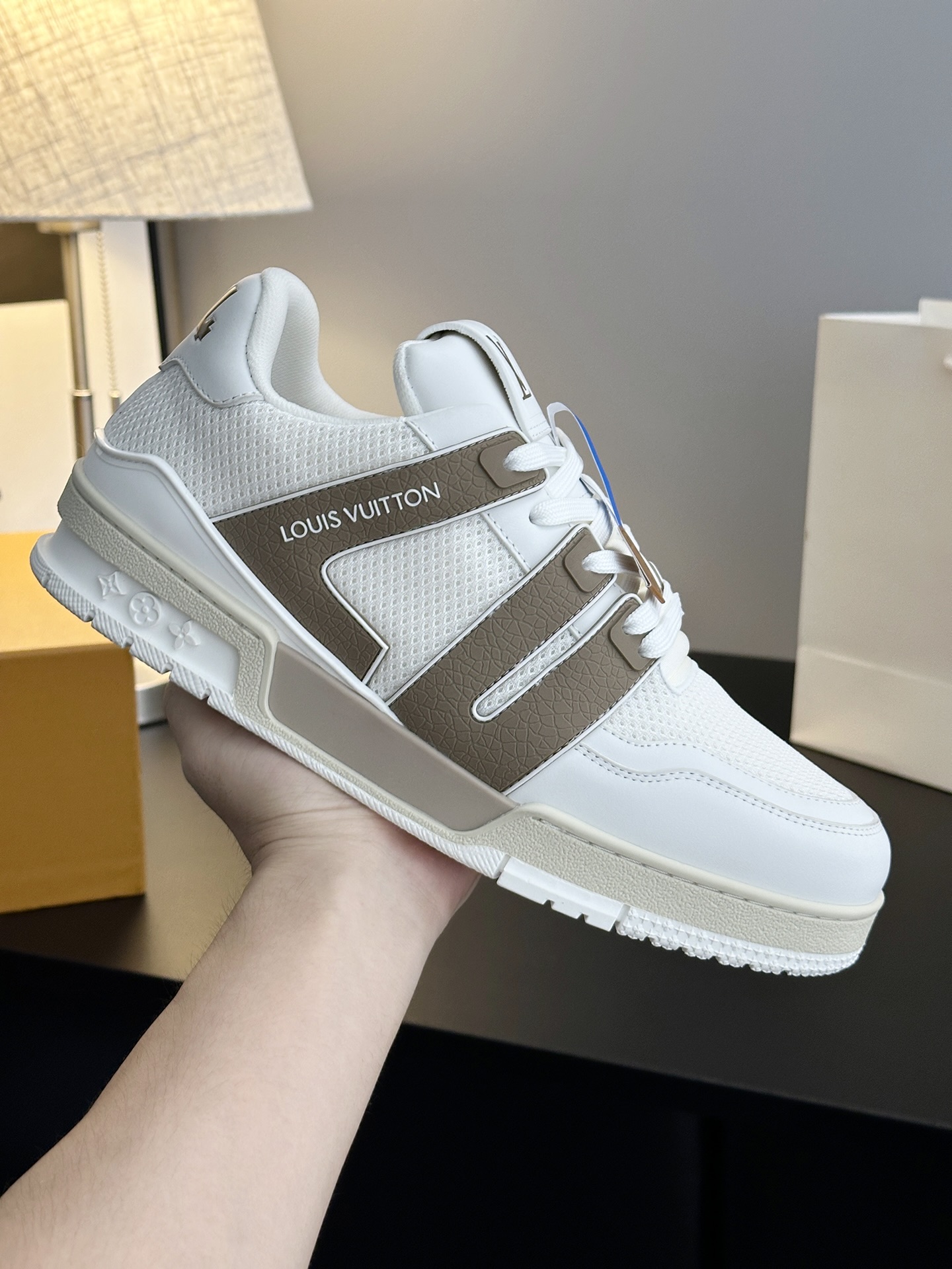 这款鞋子是AAAAA 1:1 质量 (非常棒). 使用了和原版一模一样的材料. 商标部分也保持了和路易威登/Louis Vuitton一样. 图片拍摄是实物鞋子拍摄, 您所收到的实物保证和我们图片一模一样.
