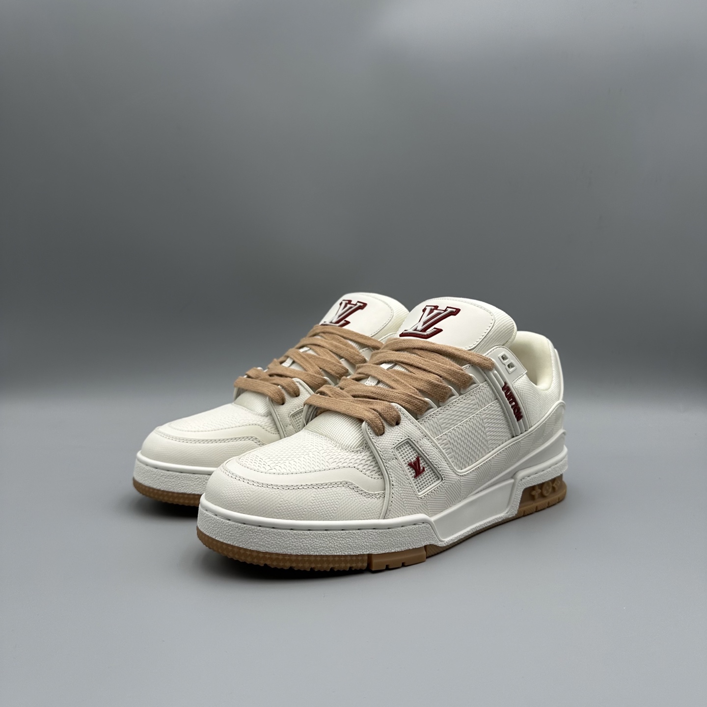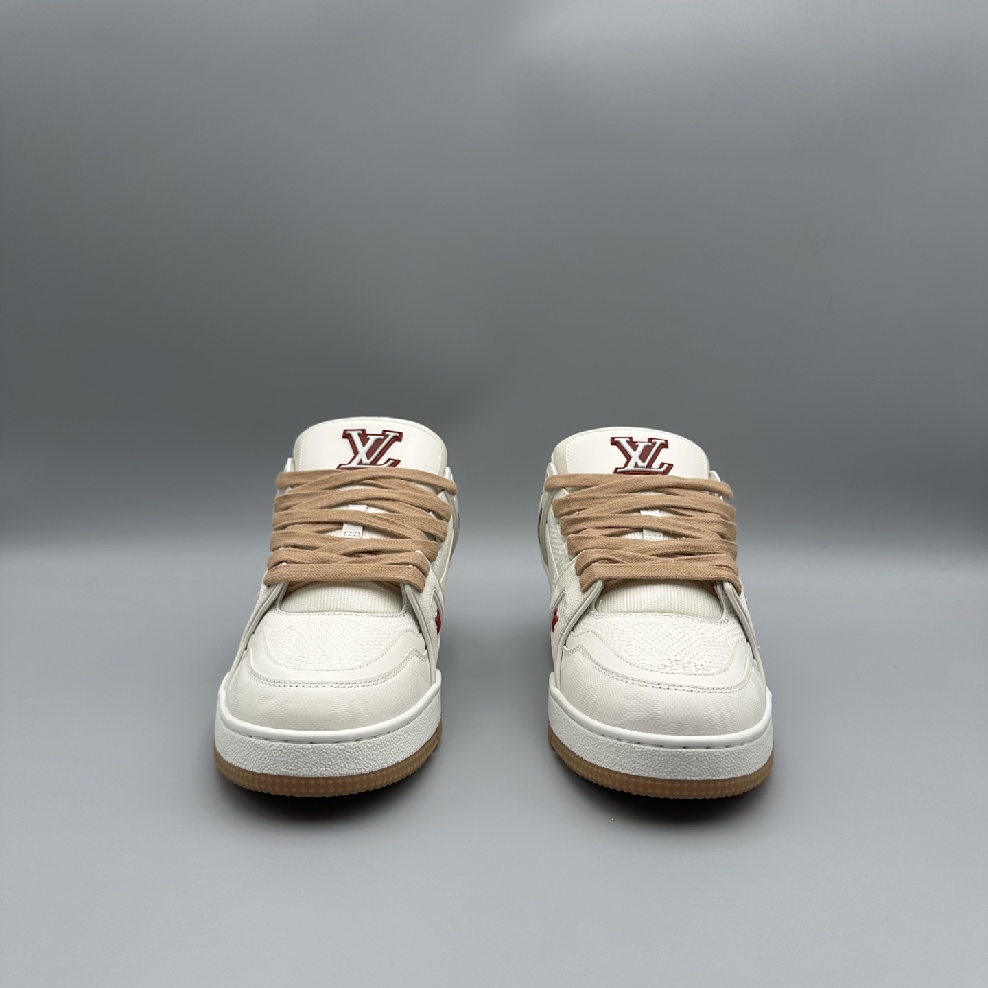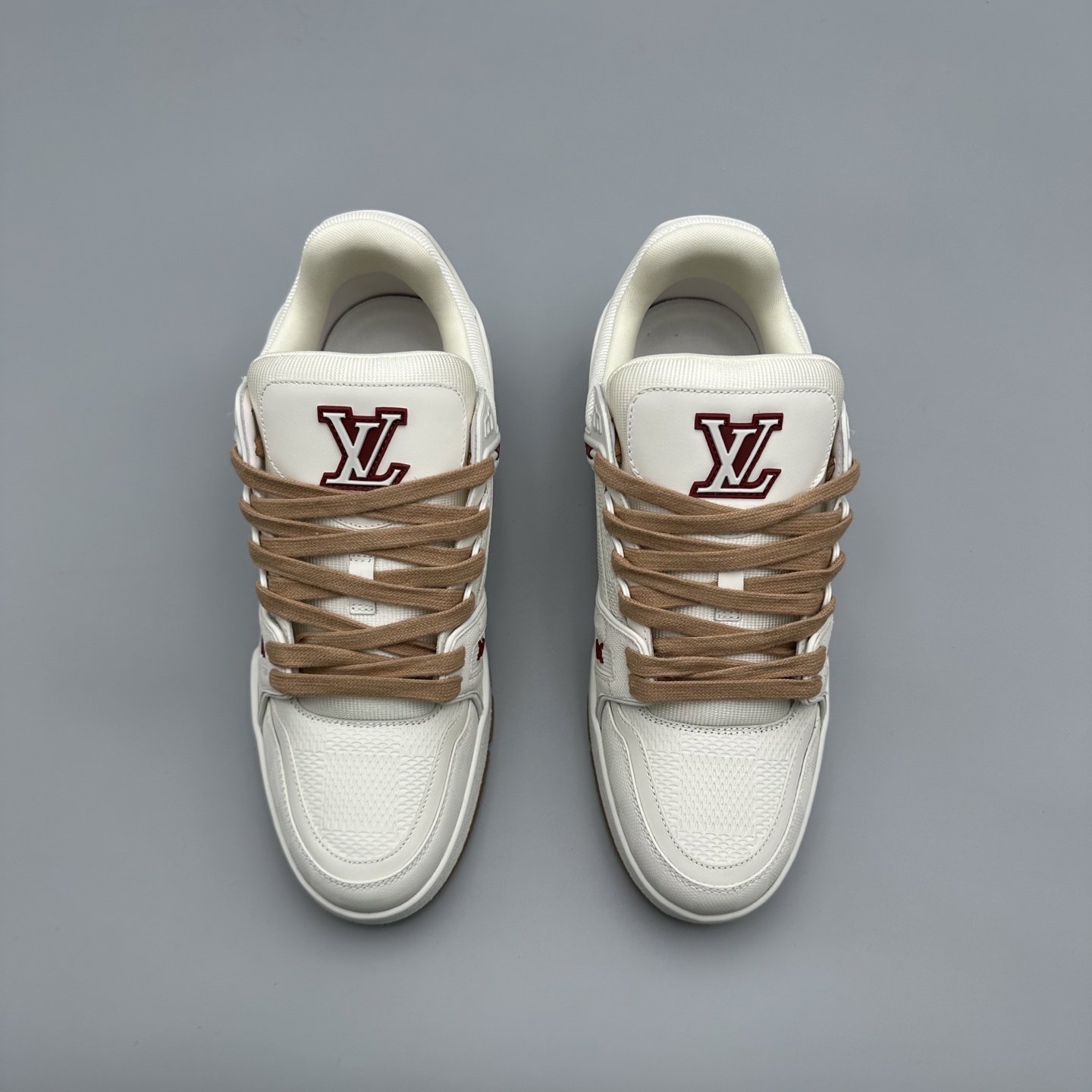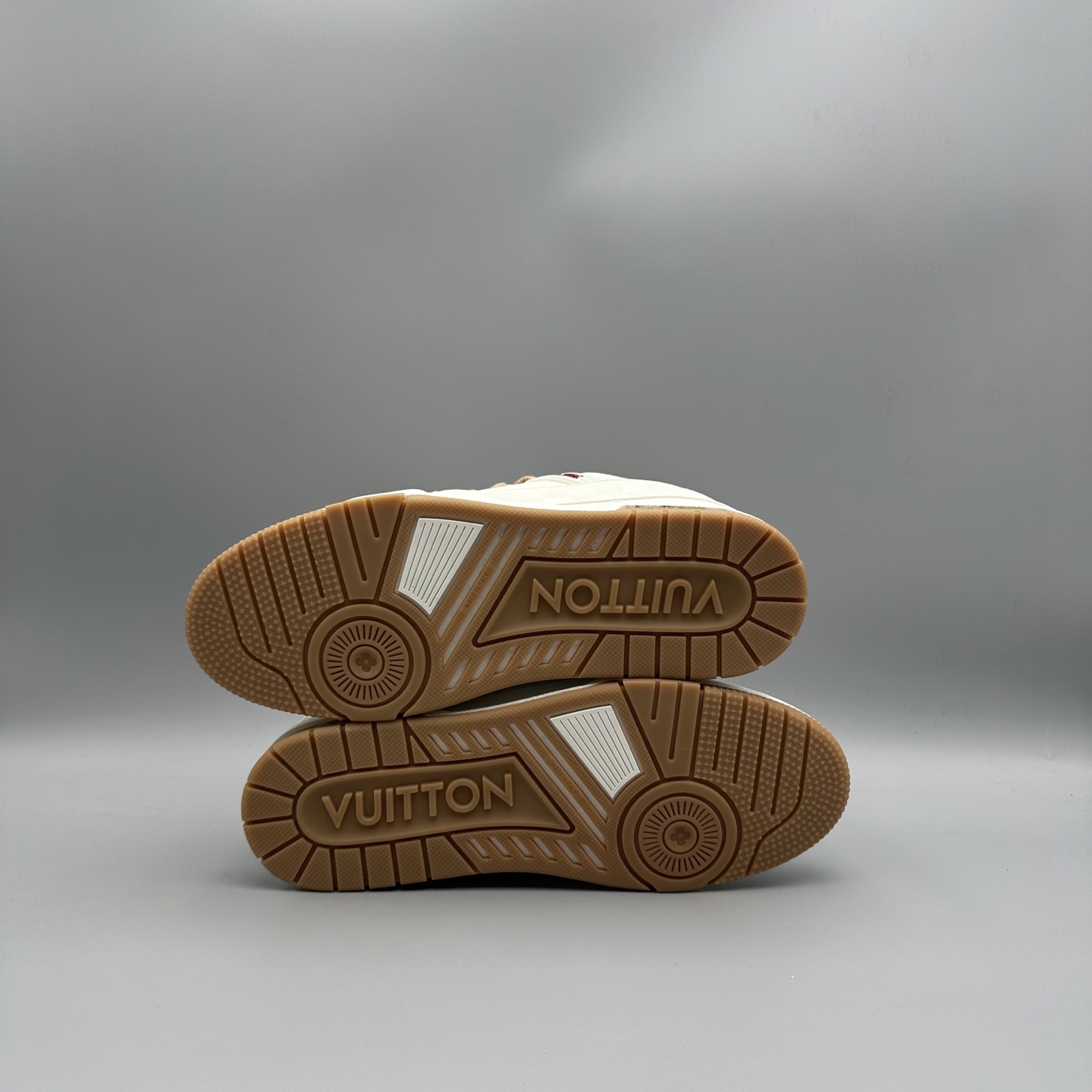 这款鞋子是AAAAA 1:1 质量 (非常棒). 使用了和原版一模一样的材料. 商标部分也保持了和路易威登/Louis Vuitton一样. 图片拍摄是实物鞋子拍摄, 您所收到的实物保证和我们图片一模一样.