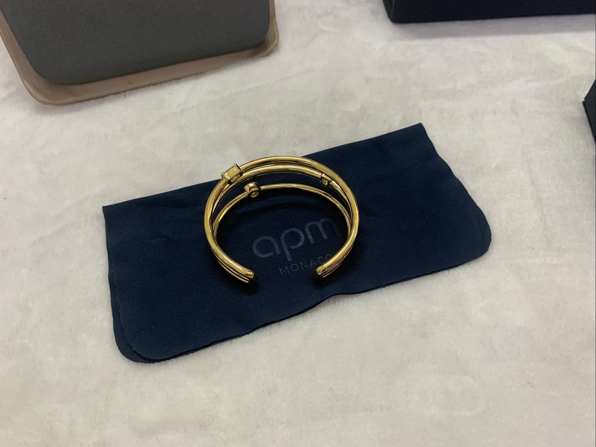 这款首饰是AAAAA 1:1 质量 (非常棒). 使用了和原版一模一样的材料. 商标部分也保持了和APM Monaco一样. 图片拍摄是实物首饰拍摄, 您所收到的实物保证和我们图片一模一样.