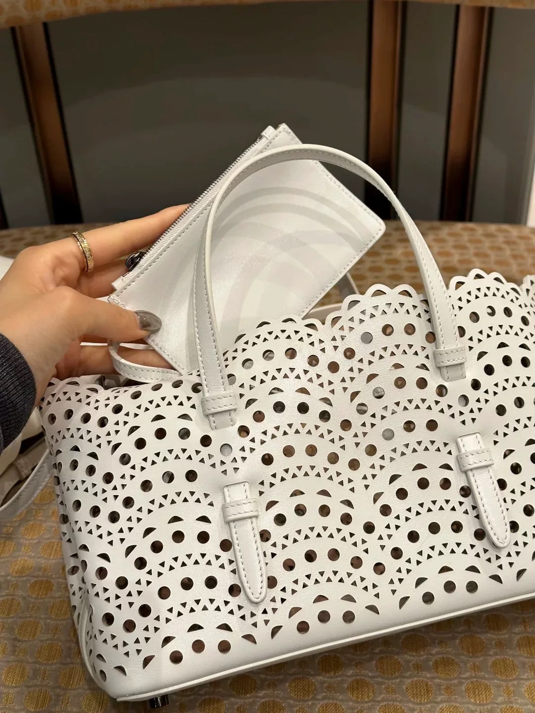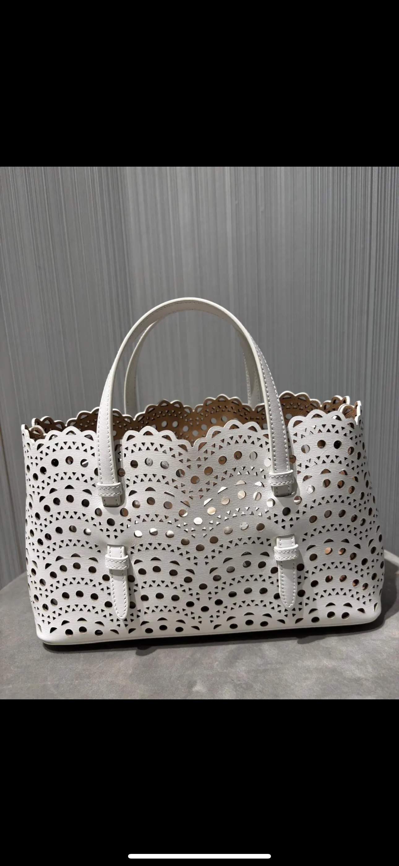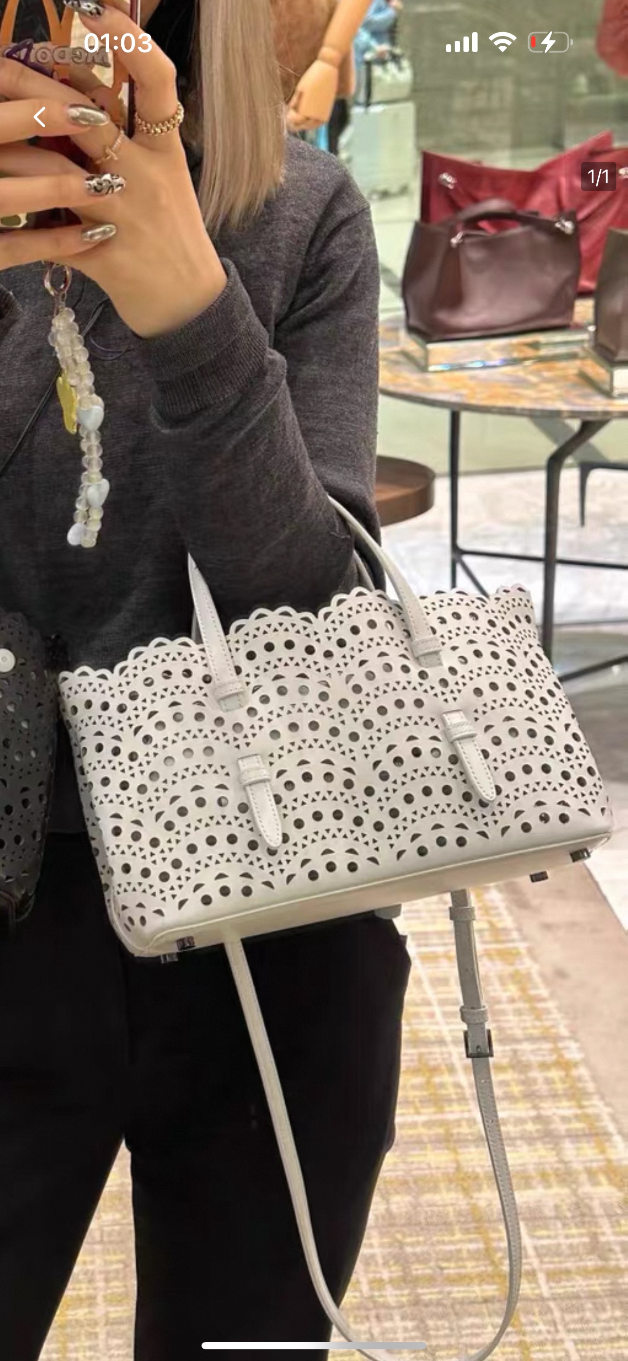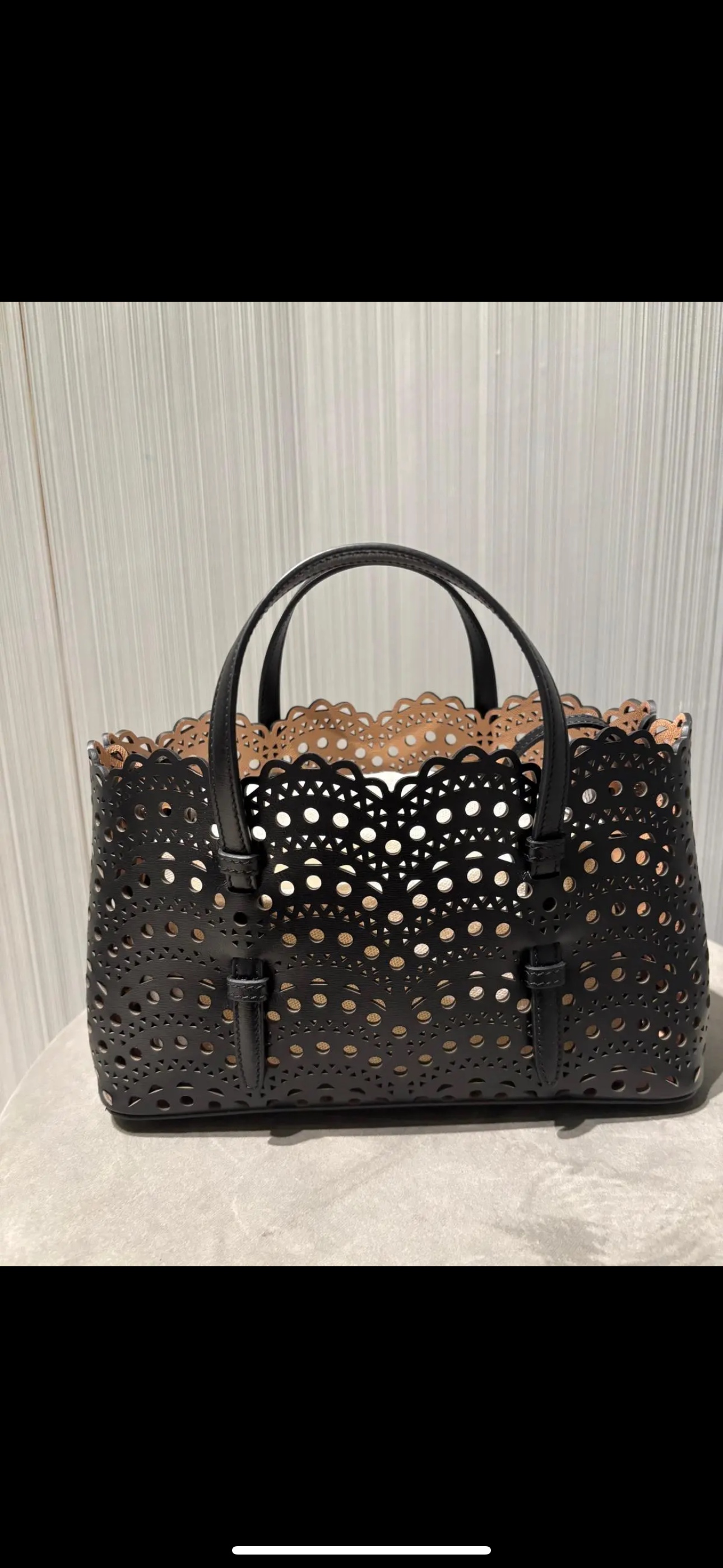这款包包是AAAAA 1:1 质量 (非常棒). 使用了和原版一模一样的材料. 商标部分也保持了和Alaia一样. 图片拍摄是实物包包拍摄, 您所收到的实物保证和我们图片一模一样.