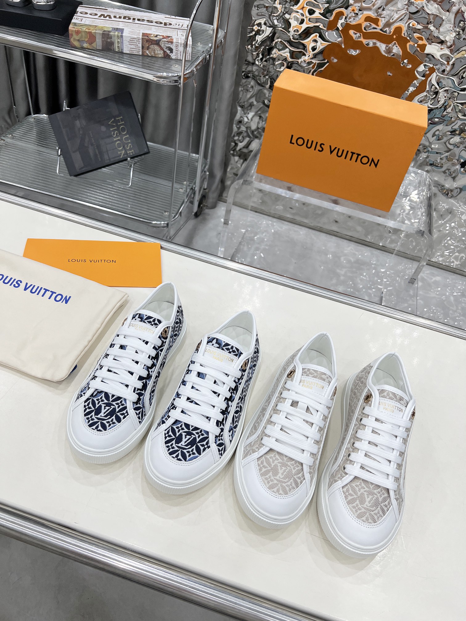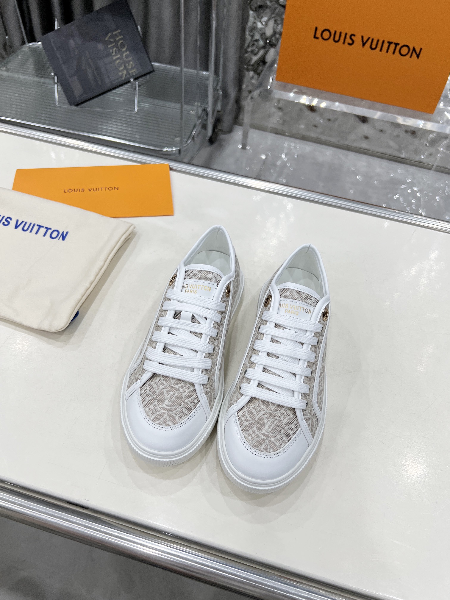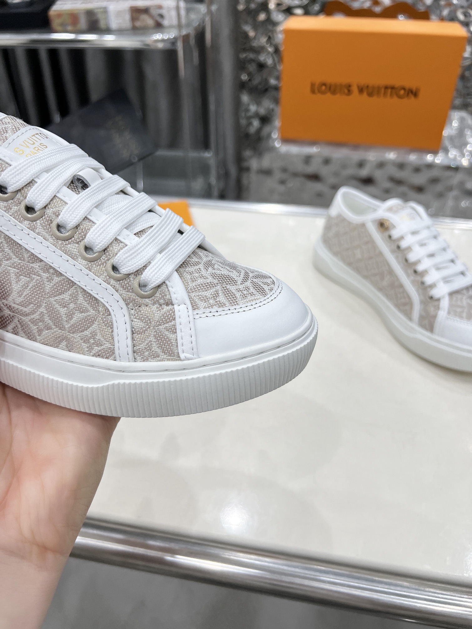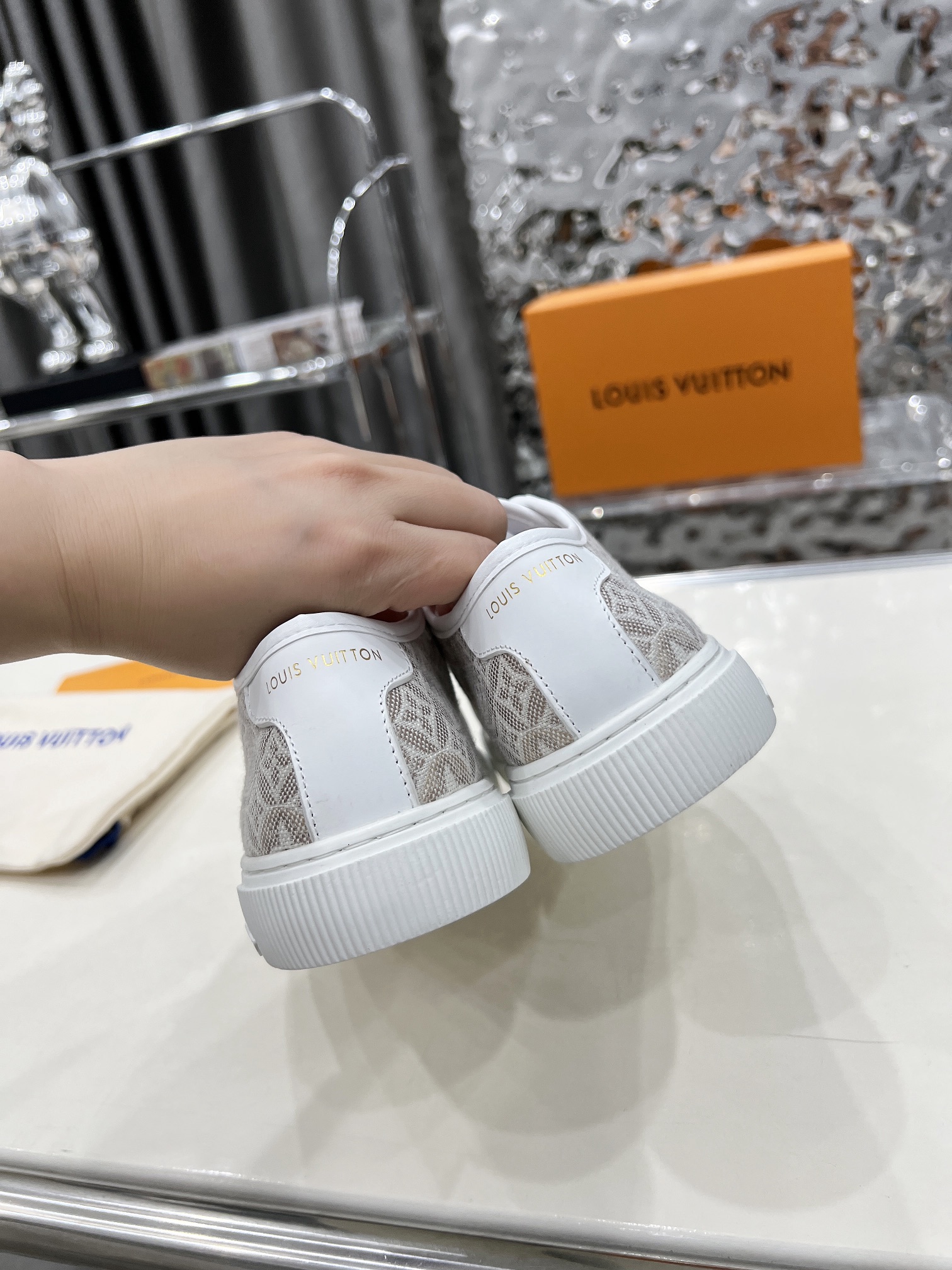 这款鞋子是AAAAA 1:1 质量 (非常棒). 使用了和原版一模一样的材料. 商标部分也保持了和路易威登/Louis Vuitton一样. 图片拍摄是实物鞋子拍摄, 您所收到的实物保证和我们图片一模一样.