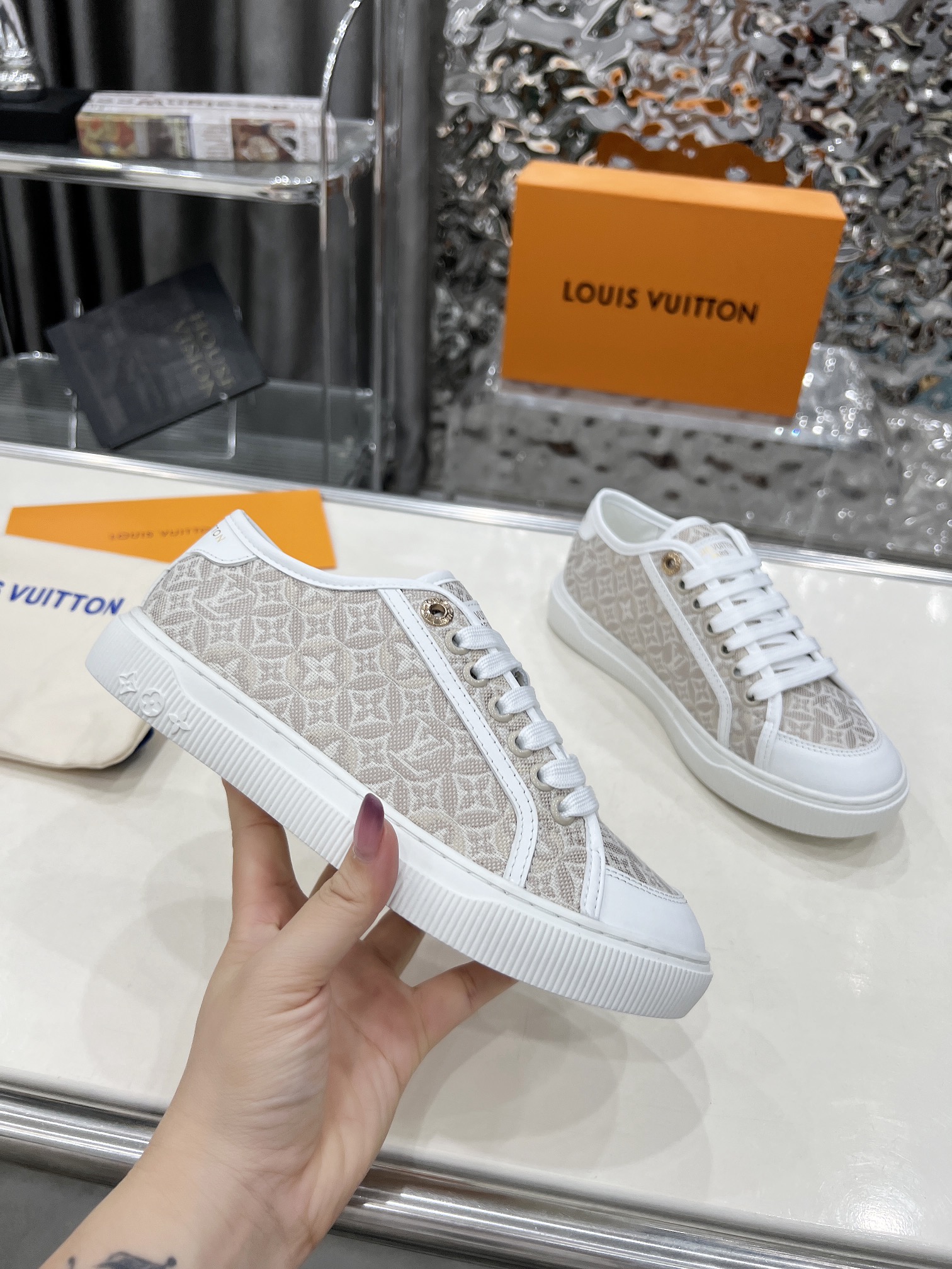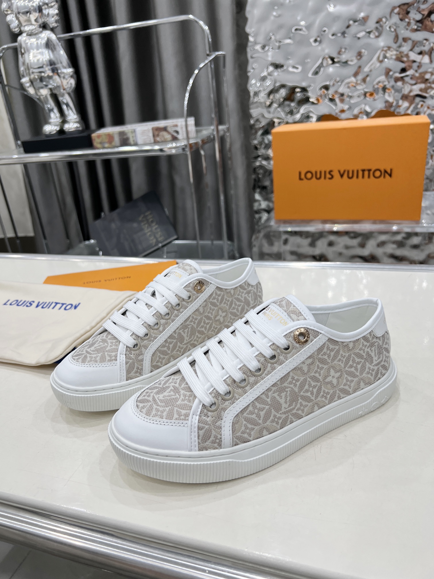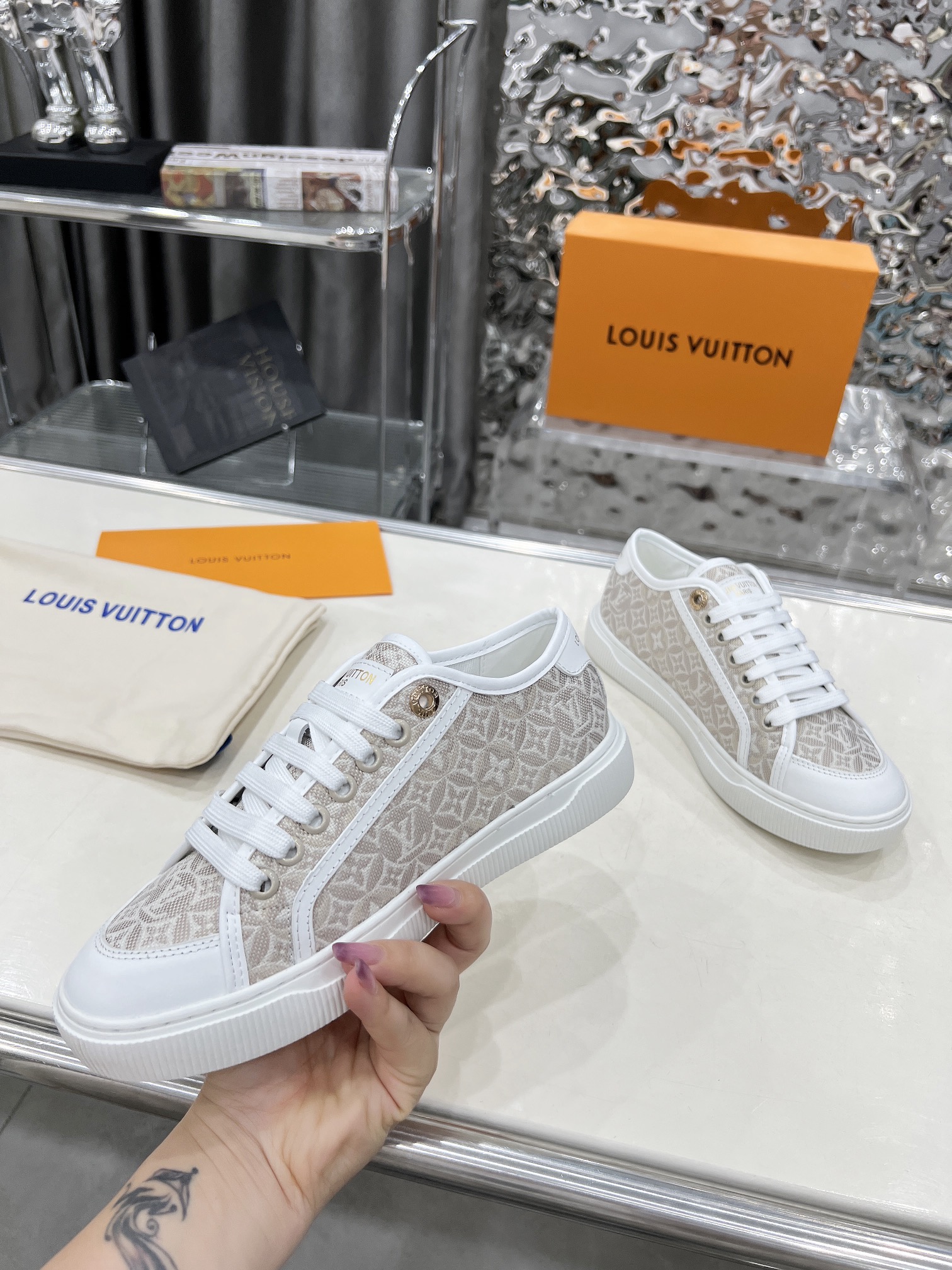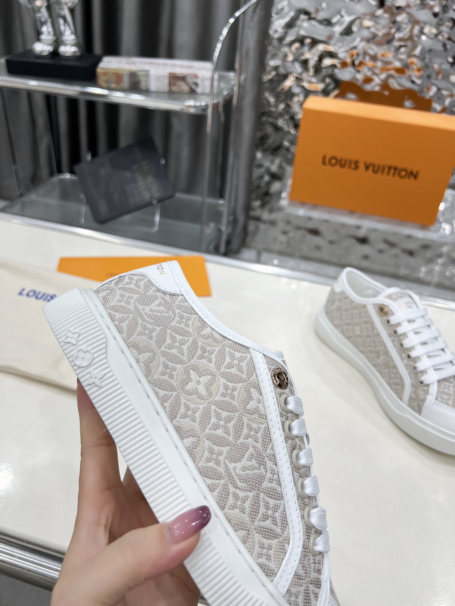 这款鞋子是AAAAA 1:1 质量 (非常棒). 使用了和原版一模一样的材料. 商标部分也保持了和路易威登/Louis Vuitton一样. 图片拍摄是实物鞋子拍摄, 您所收到的实物保证和我们图片一模一样.