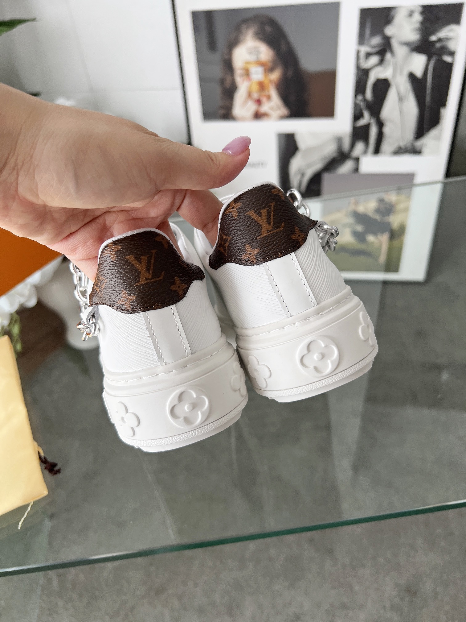 这款鞋子是AAAAA 1:1 质量 (非常棒). 使用了和原版一模一样的材料. 商标部分也保持了和路易威登/Louis Vuitton一样. 图片拍摄是实物鞋子拍摄, 您所收到的实物保证和我们图片一模一样.