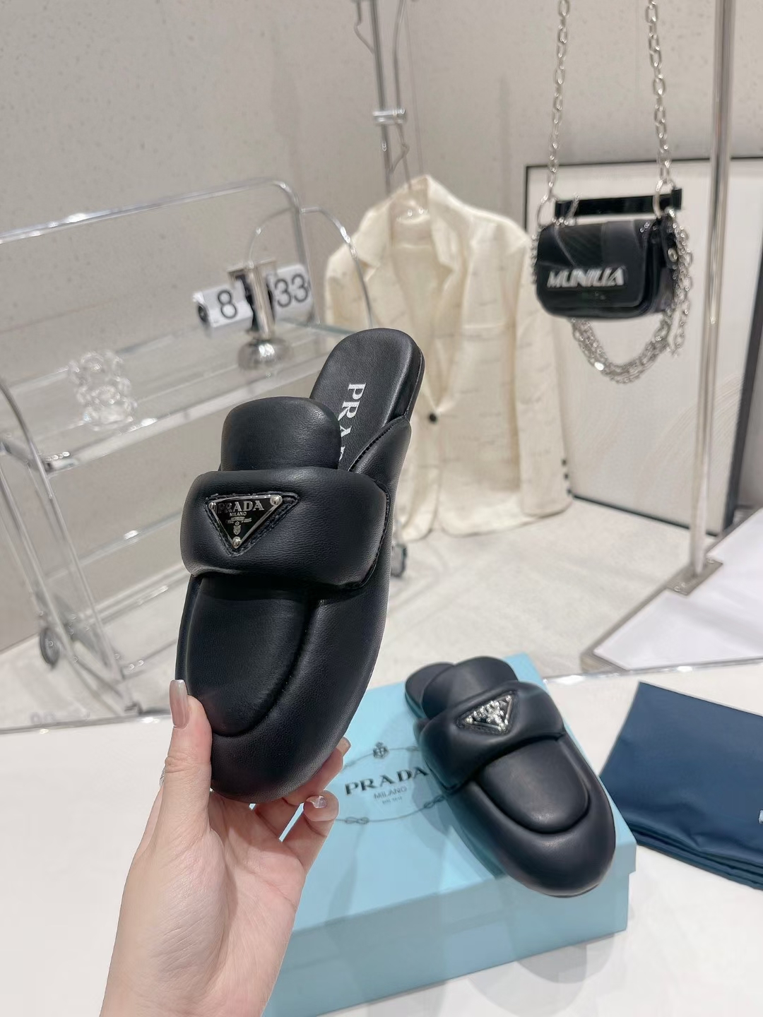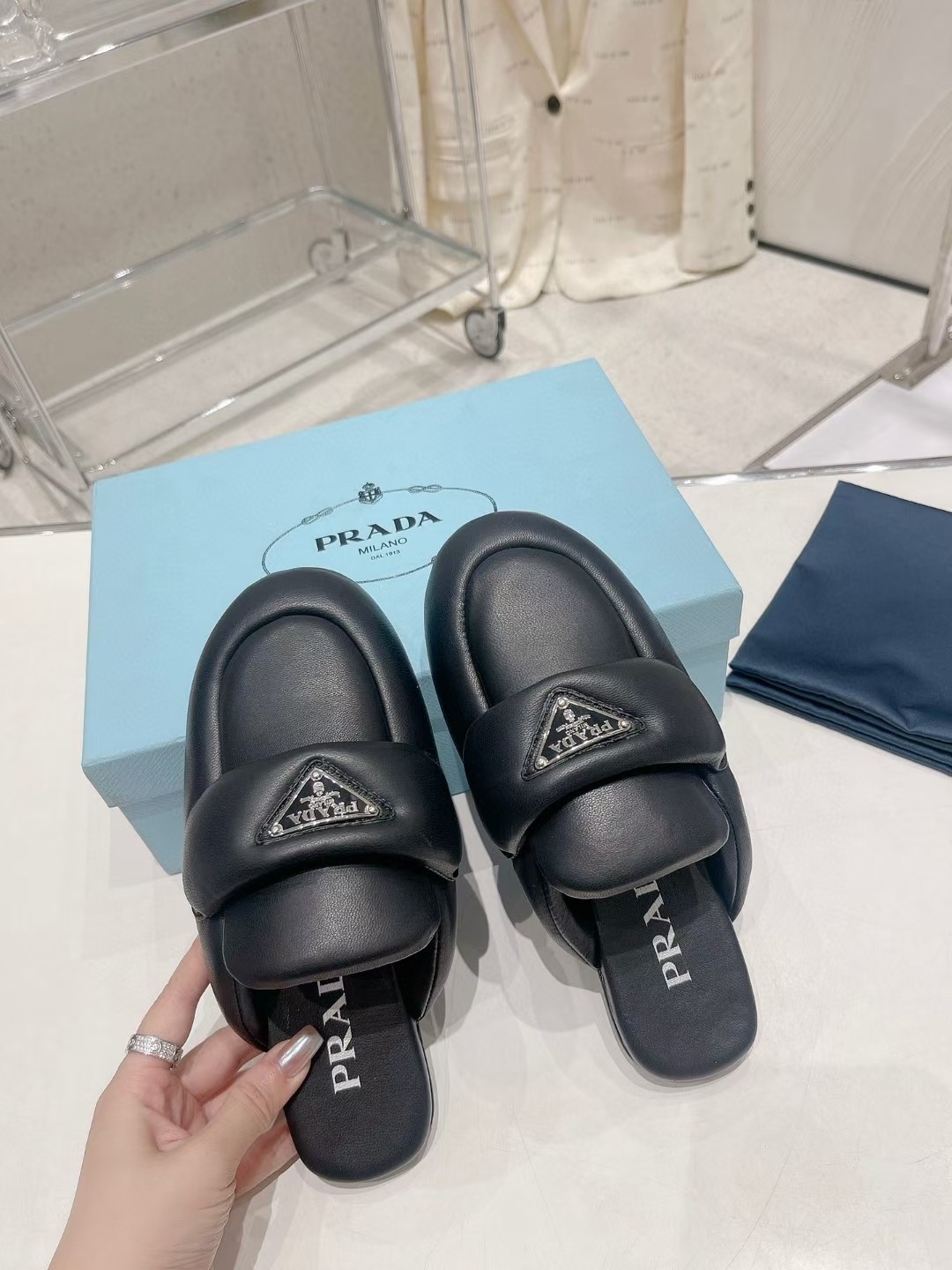这款鞋子是AAAAA 1:1 质量 (非常棒). 使用了和原版一模一样的材料. 商标部分也保持了和普拉达/Prada一样. 图片拍摄是实物鞋子拍摄, 您所收到的实物保证和我们图片一模一样.