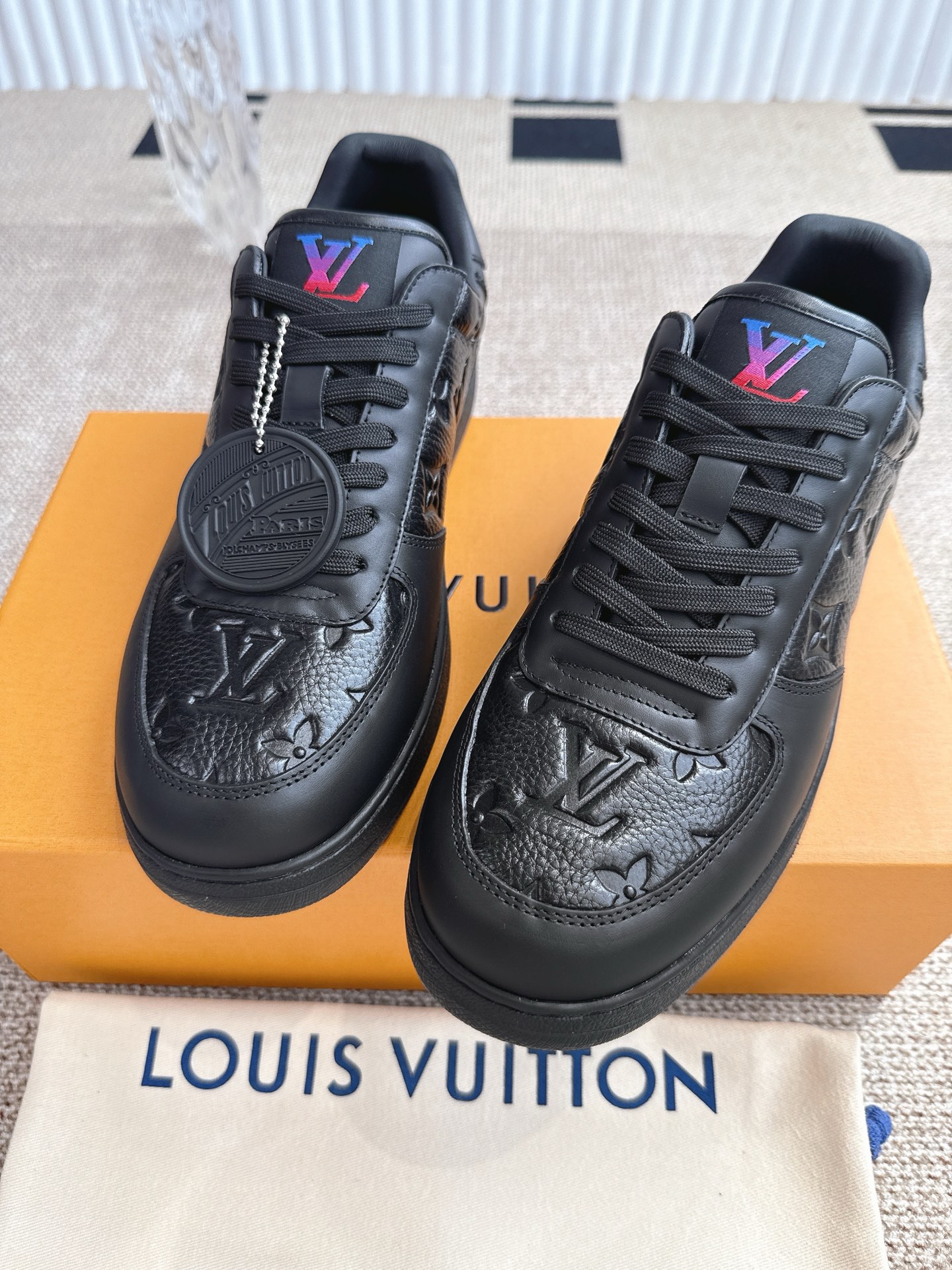 这款鞋子是AAAAA 1:1 质量 (非常棒). 使用了和原版一模一样的材料. 商标部分也保持了和路易威登/Louis Vuitton一样. 图片拍摄是实物鞋子拍摄, 您所收到的实物保证和我们图片一模一样.
