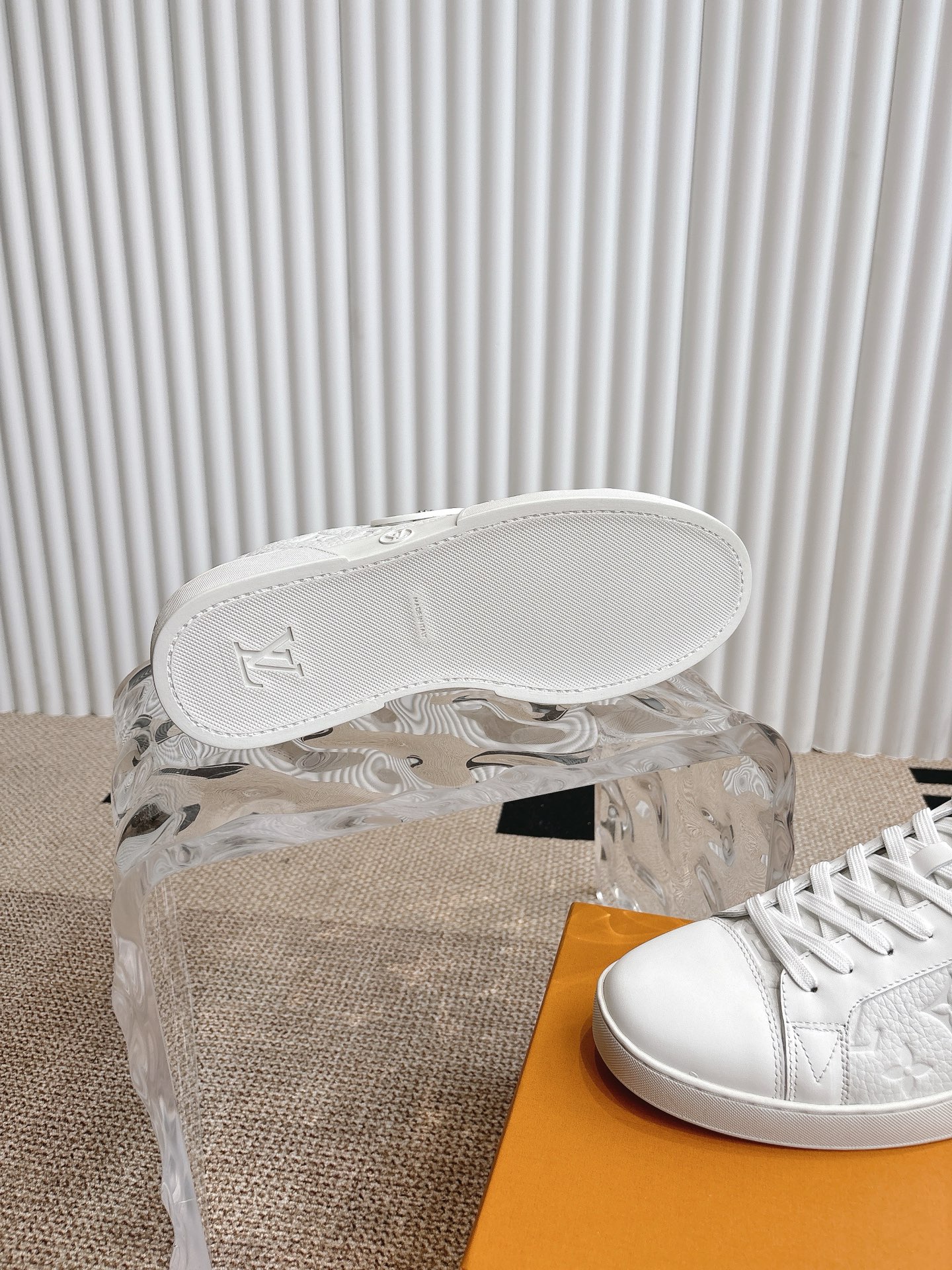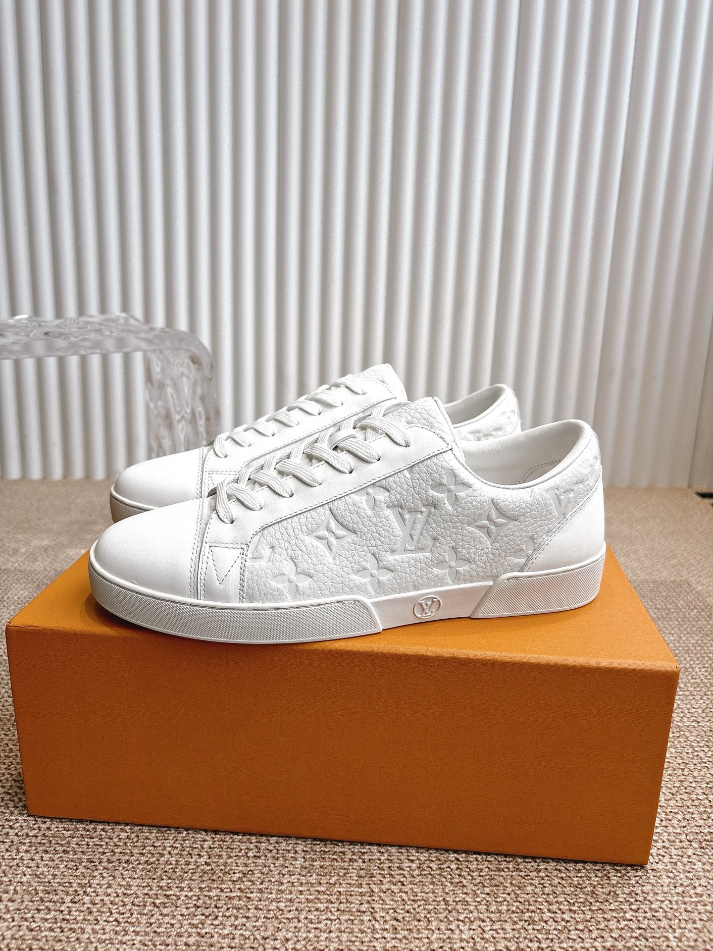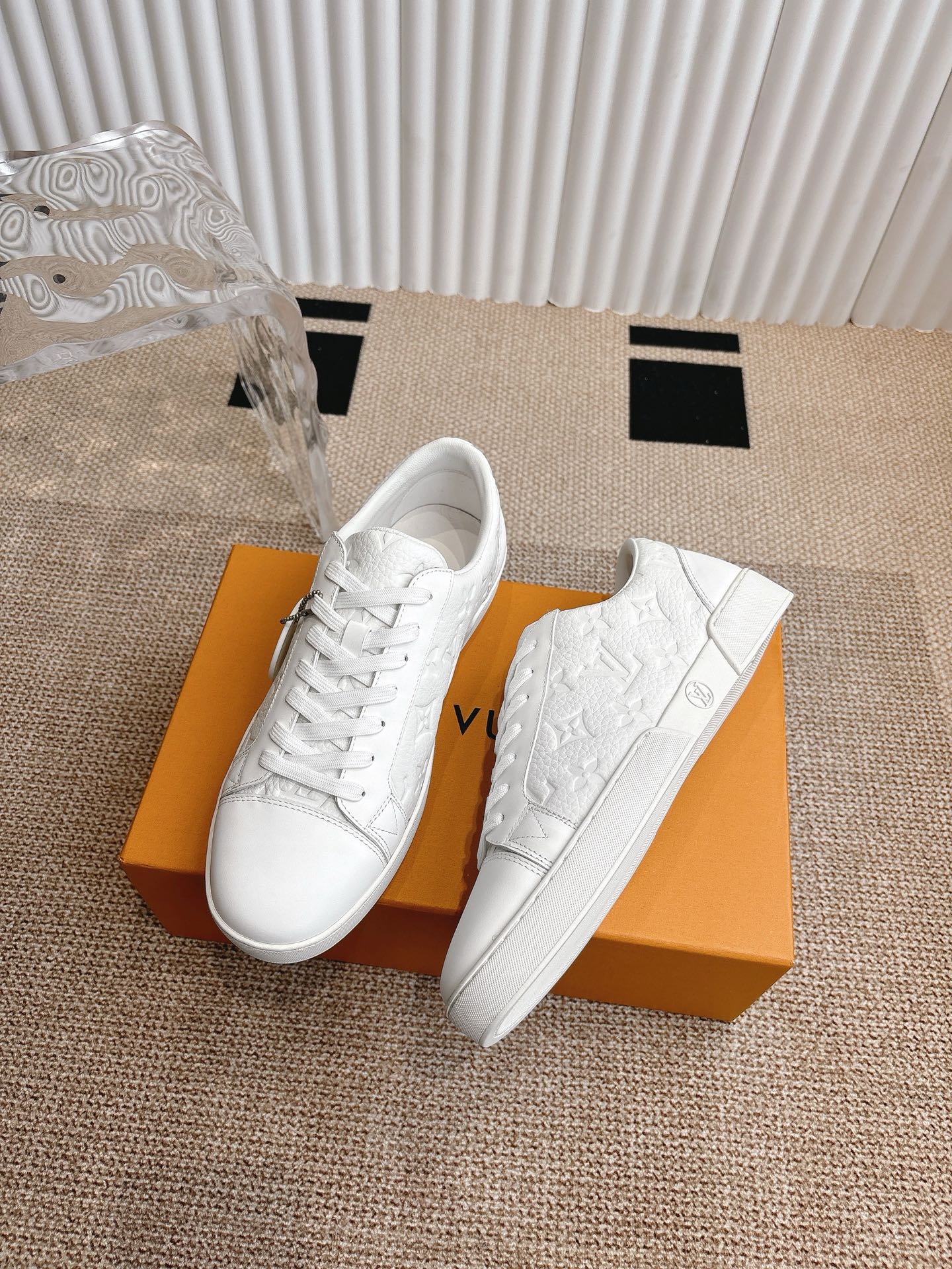 这款鞋子是AAAAA 1:1 质量 (非常棒). 使用了和原版一模一样的材料. 商标部分也保持了和路易威登/Louis Vuitton一样. 图片拍摄是实物鞋子拍摄, 您所收到的实物保证和我们图片一模一样.