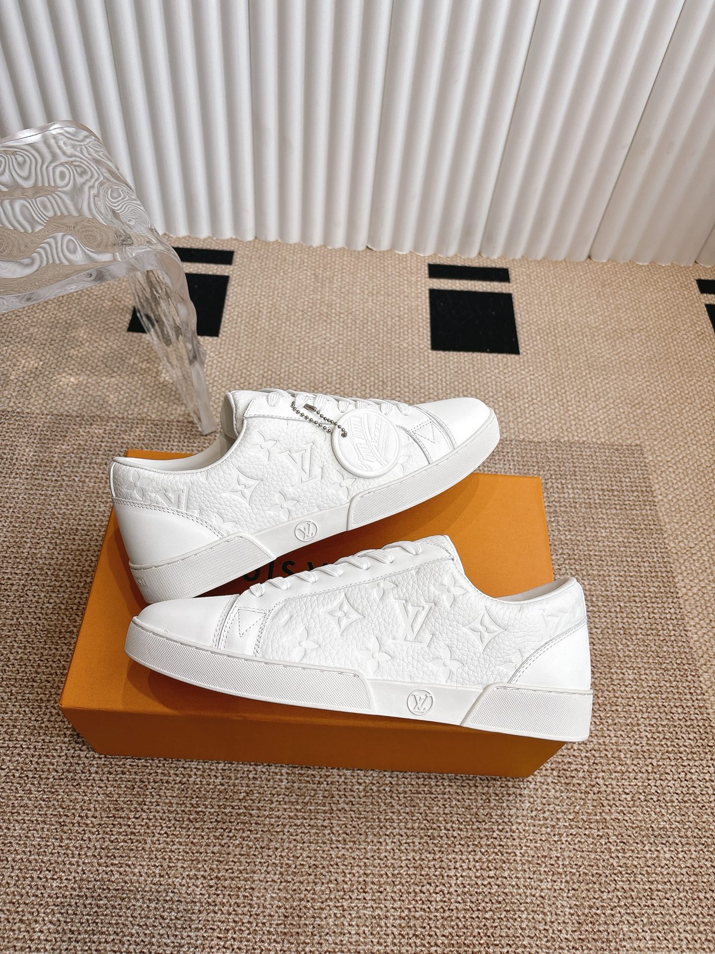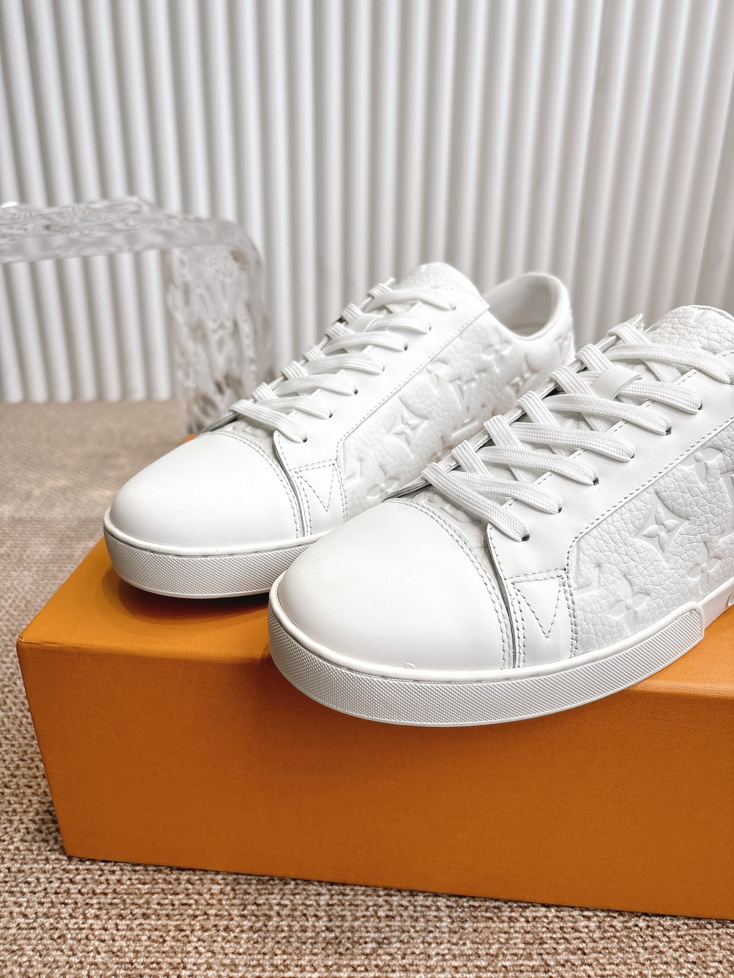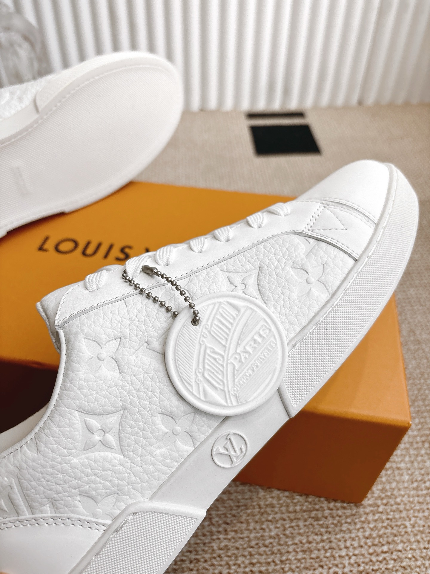 这款鞋子是AAAAA 1:1 质量 (非常棒). 使用了和原版一模一样的材料. 商标部分也保持了和路易威登/Louis Vuitton一样. 图片拍摄是实物鞋子拍摄, 您所收到的实物保证和我们图片一模一样.