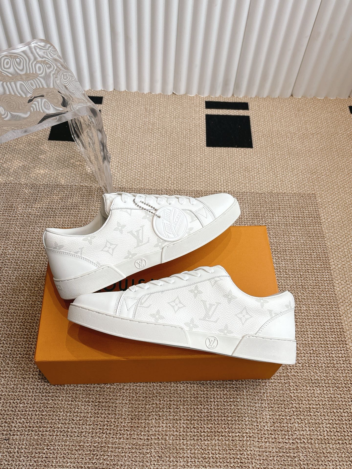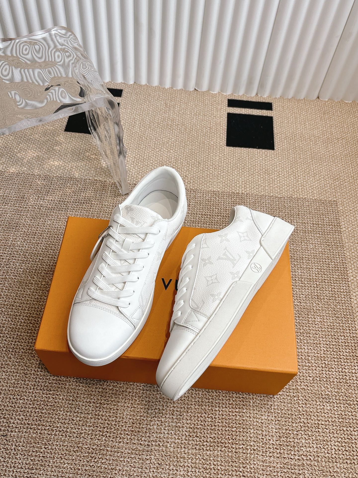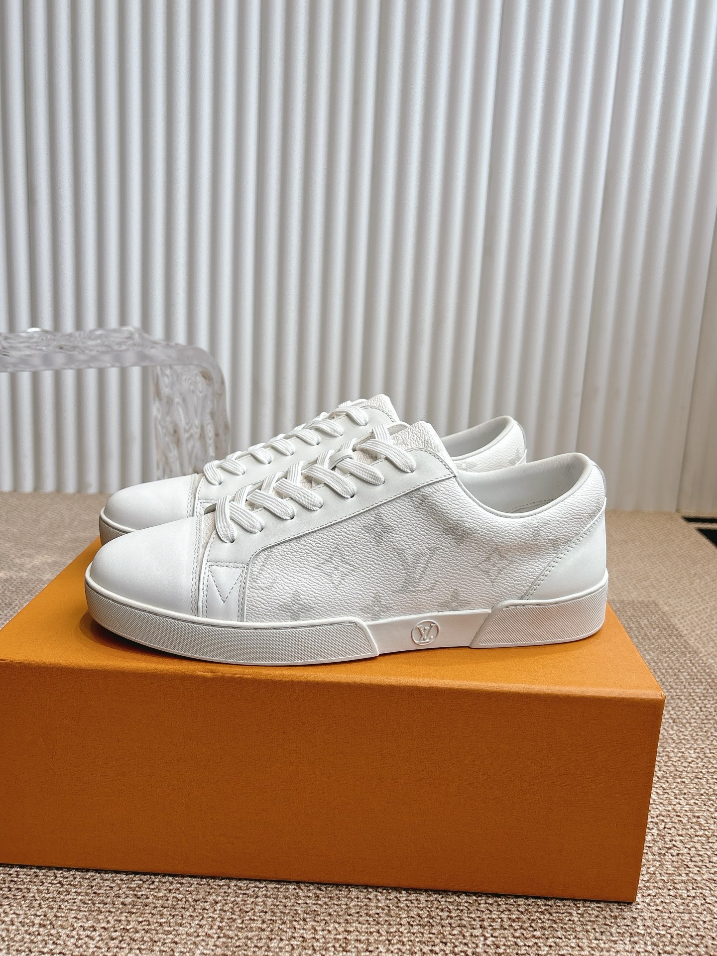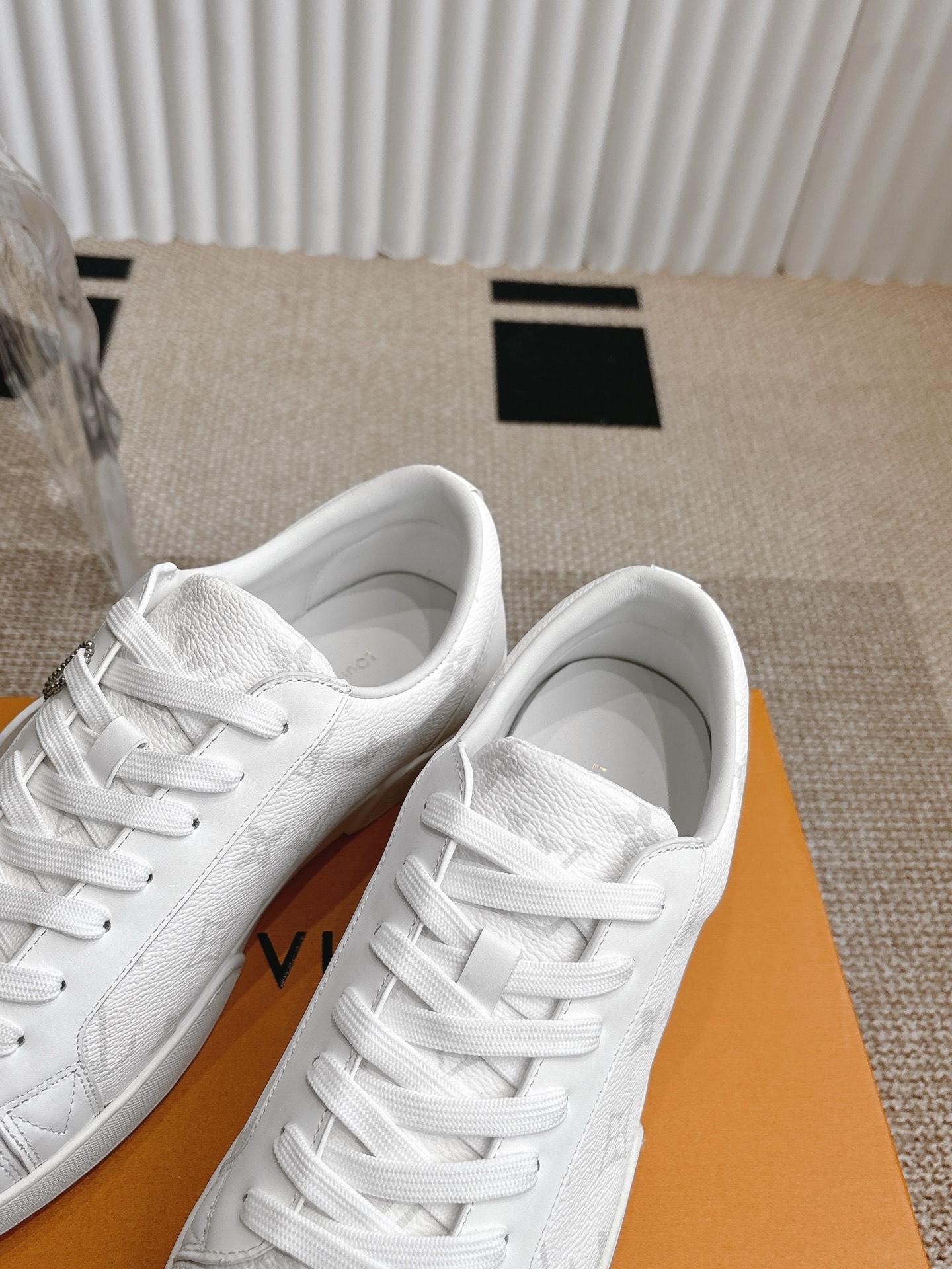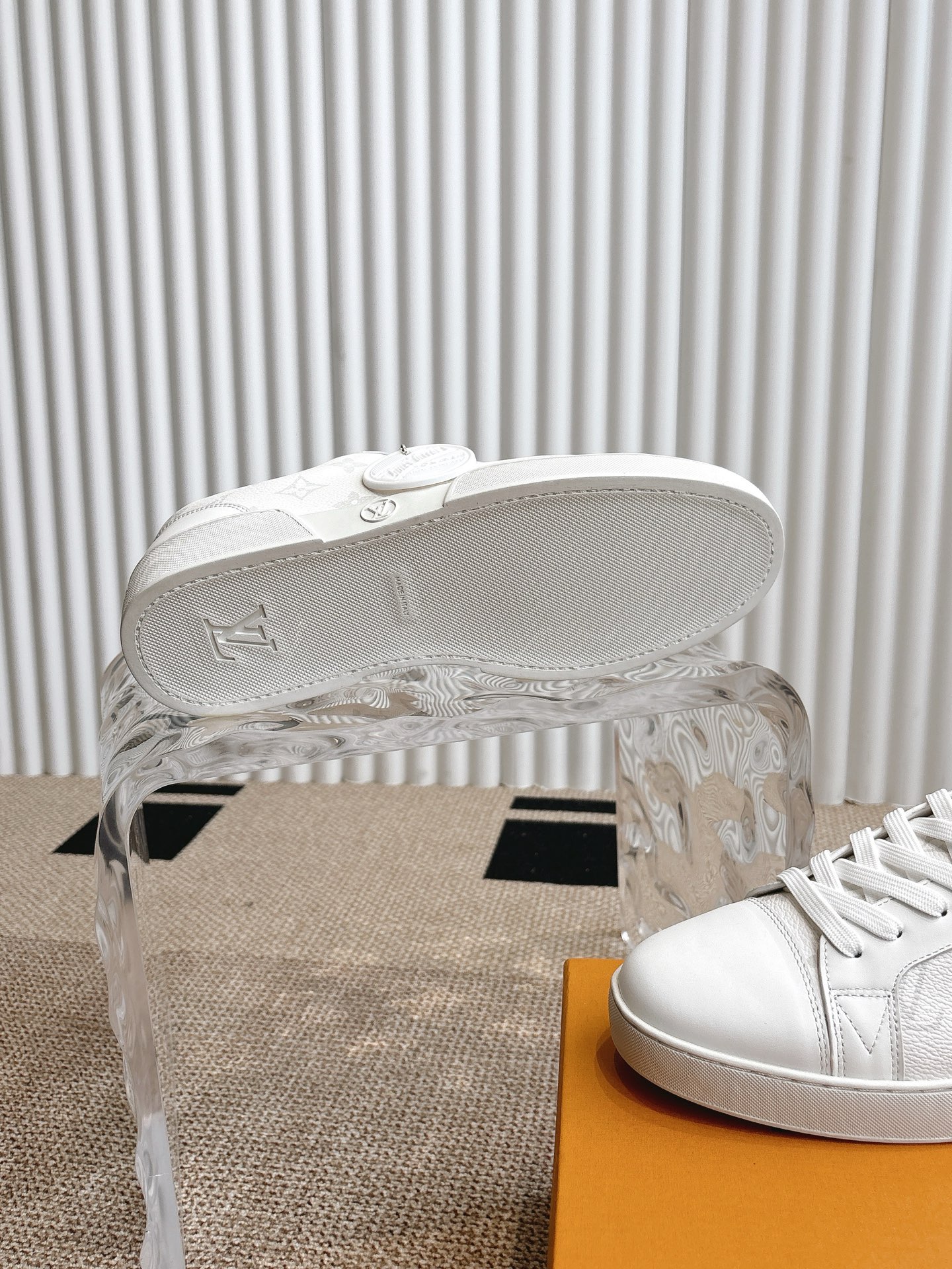 这款鞋子是AAAAA 1:1 质量 (非常棒). 使用了和原版一模一样的材料. 商标部分也保持了和路易威登/Louis Vuitton一样. 图片拍摄是实物鞋子拍摄, 您所收到的实物保证和我们图片一模一样.