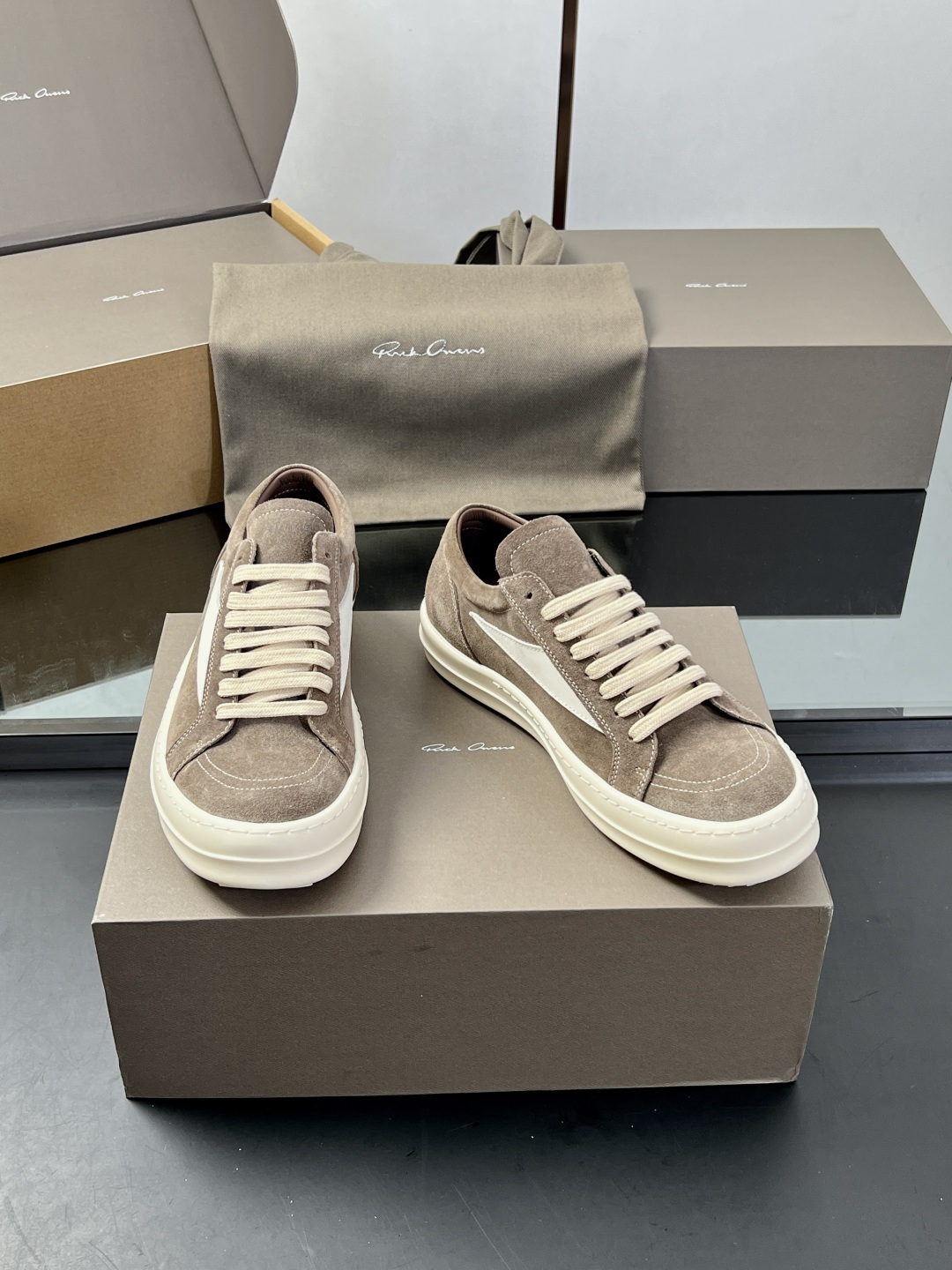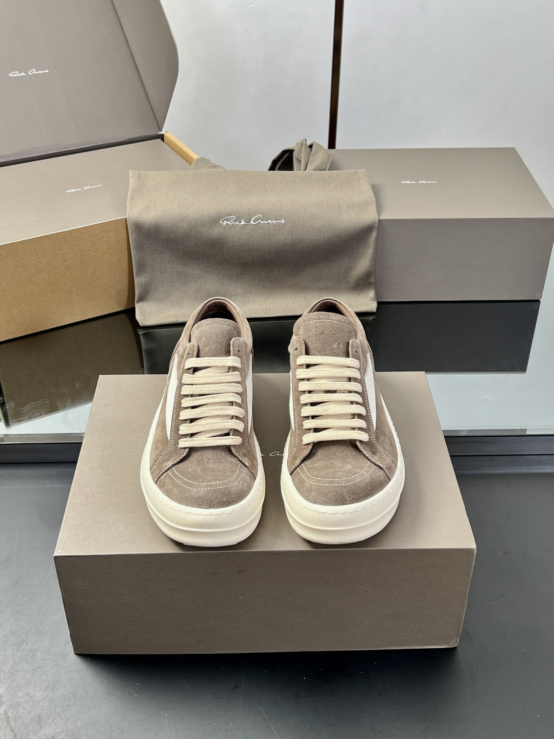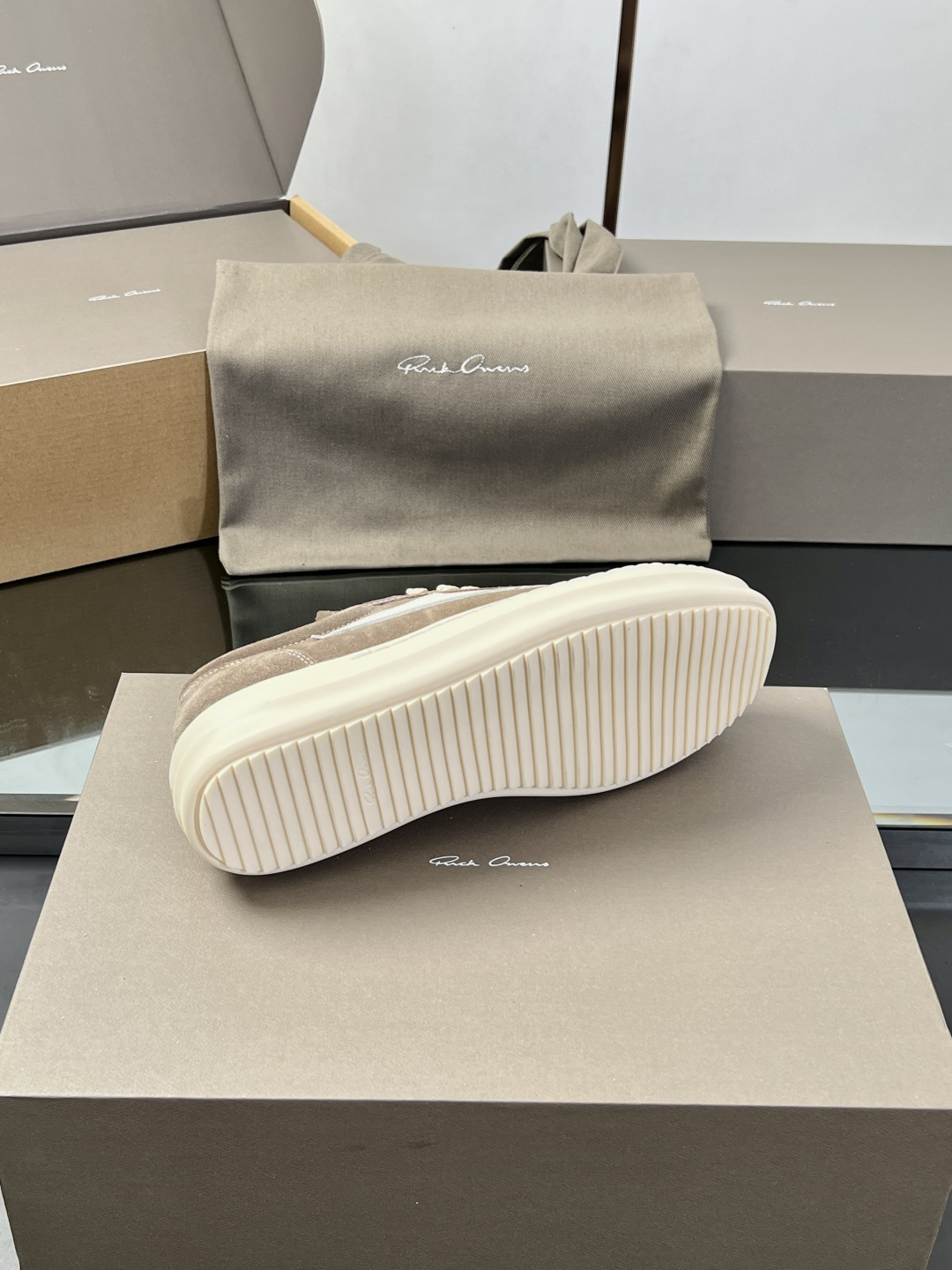 这款鞋子是AAAAA 1:1 质量 (非常棒). 使用了和原版一模一样的材料. 商标部分也保持了和里克·欧文斯/Rick Owens一样. 图片拍摄是实物鞋子拍摄, 您所收到的实物保证和我们图片一模一样.