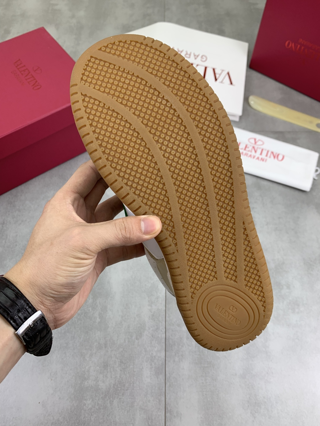 这款鞋子是AAAAA 1:1 质量 (非常棒). 使用了和原版一模一样的材料. 商标部分也保持了和华伦天奴/Valentino一样. 图片拍摄是实物鞋子拍摄, 您所收到的实物保证和我们图片一模一样.