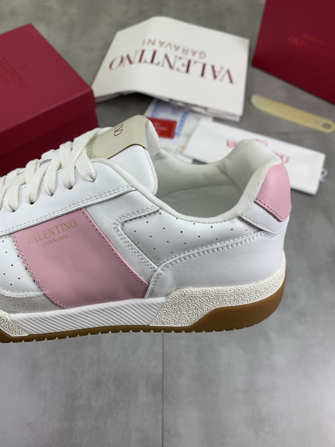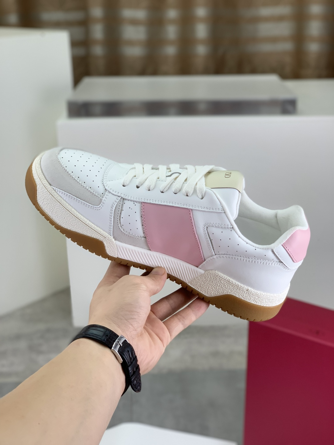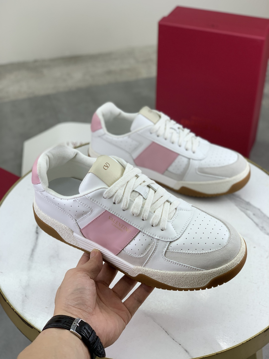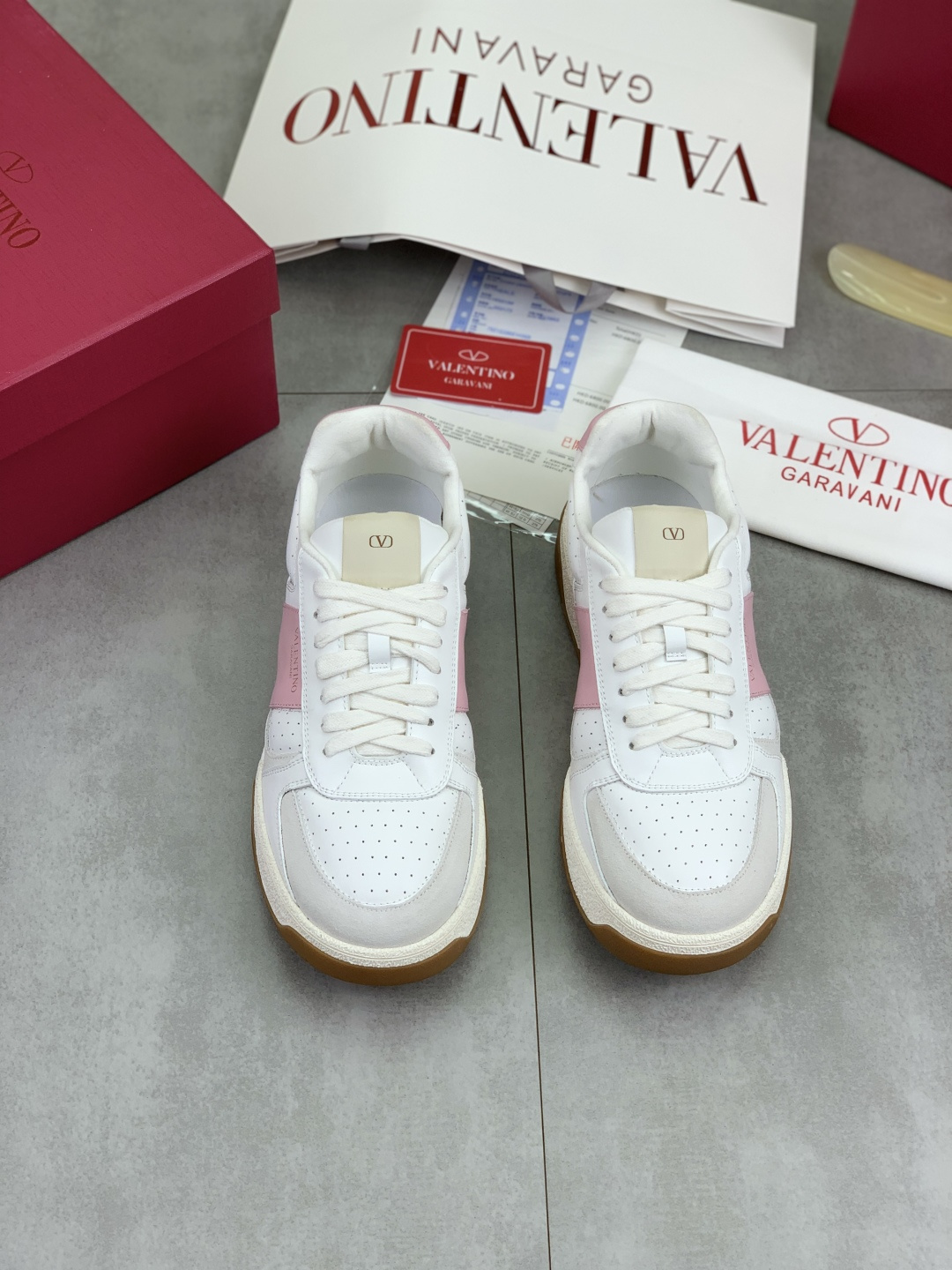 这款鞋子是AAAAA 1:1 质量 (非常棒). 使用了和原版一模一样的材料. 商标部分也保持了和华伦天奴/Valentino一样. 图片拍摄是实物鞋子拍摄, 您所收到的实物保证和我们图片一模一样.