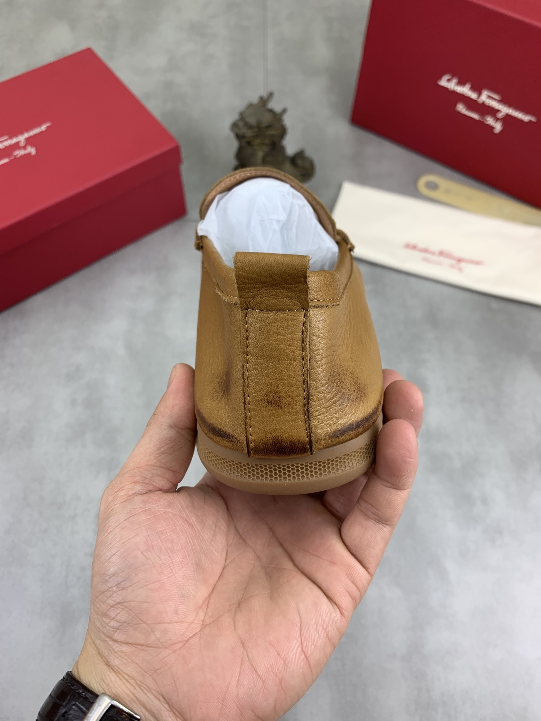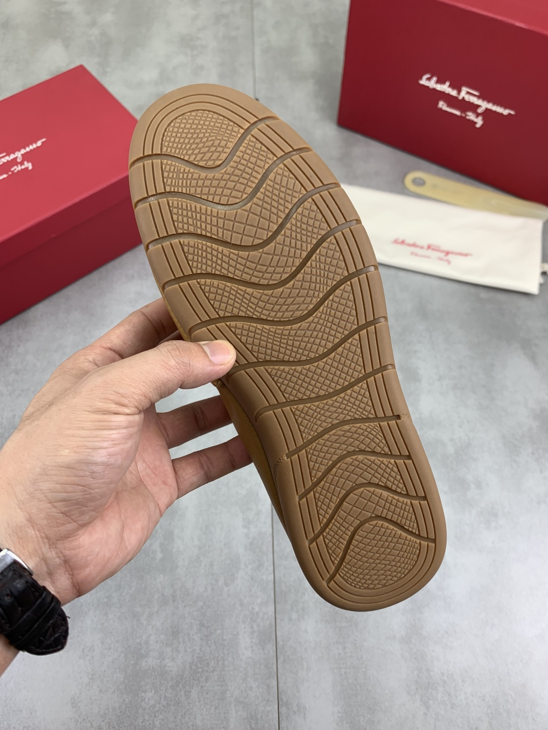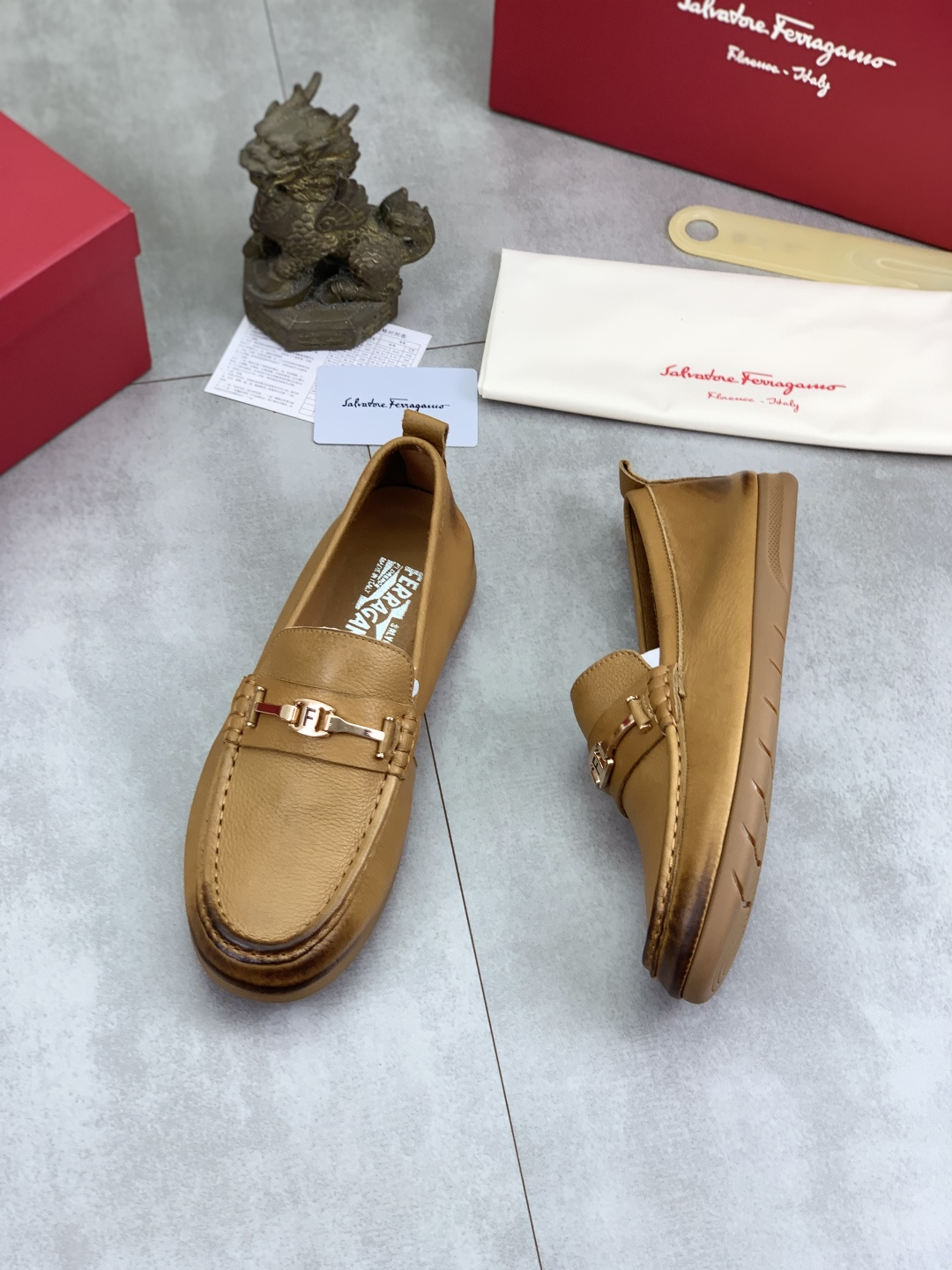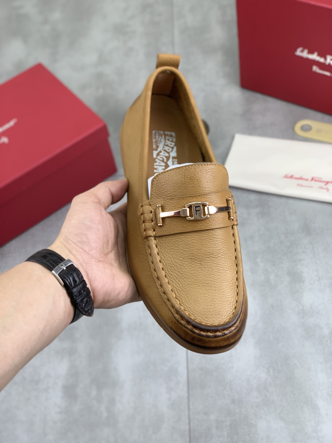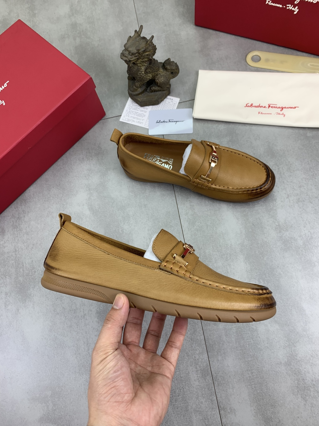 这款鞋子是AAAAA 1:1 质量 (非常棒). 使用了和原版一模一样的材料. 商标部分也保持了和菲拉格慕/Salvatore Ferragamo一样. 图片拍摄是实物鞋子拍摄, 您所收到的实物保证和我们图片一模一样.