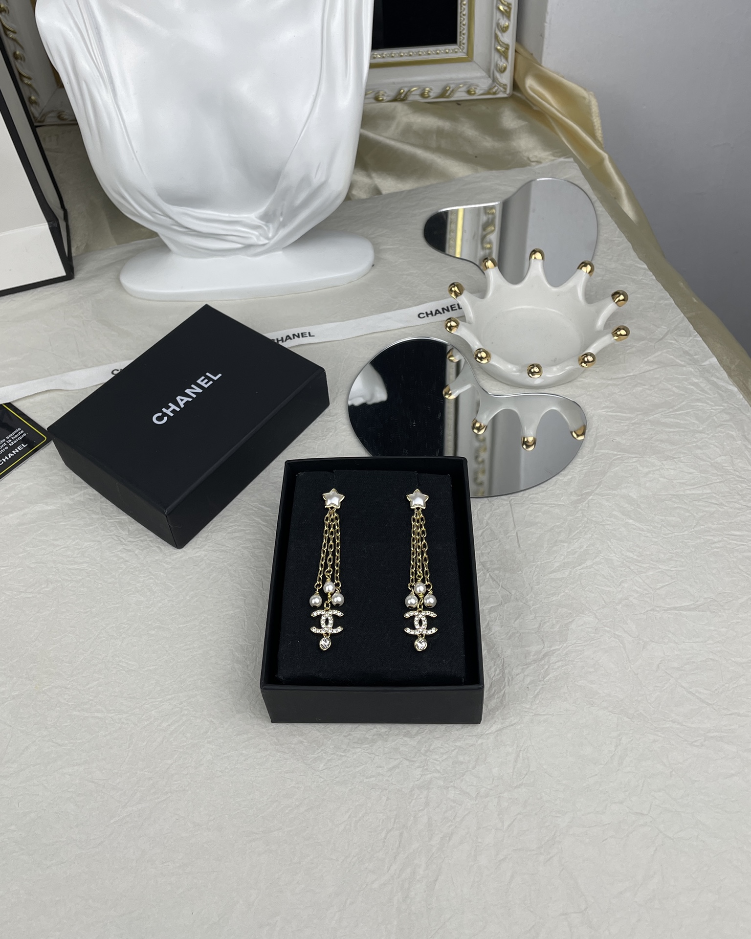 这款首饰是AAAAA 1:1 质量 (非常棒). 使用了和原版一模一样的材料. 商标部分也保持了和香奈儿/Chanel一样. 图片拍摄是实物首饰拍摄, 您所收到的实物保证和我们图片一模一样.