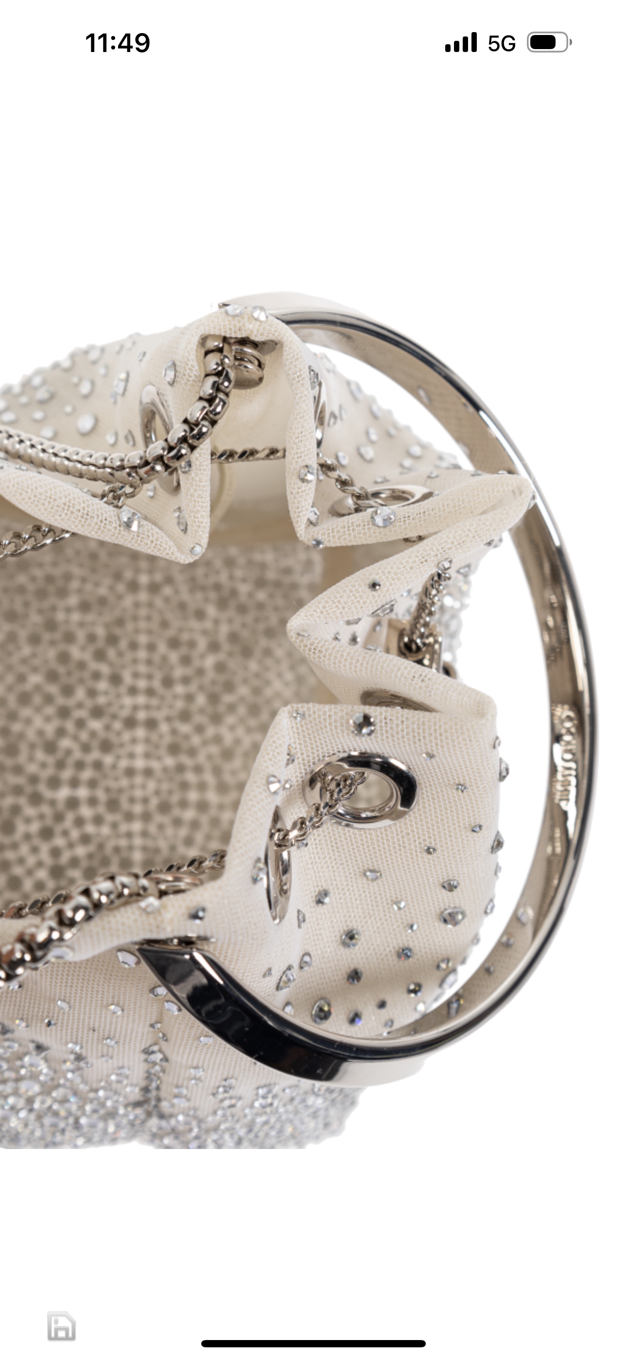 这款包包是AAAAA 1:1 质量 (非常棒). 使用了和原版一模一样的材料. 商标部分也保持了和吉米乔/JIMMY CHOO一样. 图片拍摄是实物包包拍摄, 您所收到的实物保证和我们图片一模一样.
