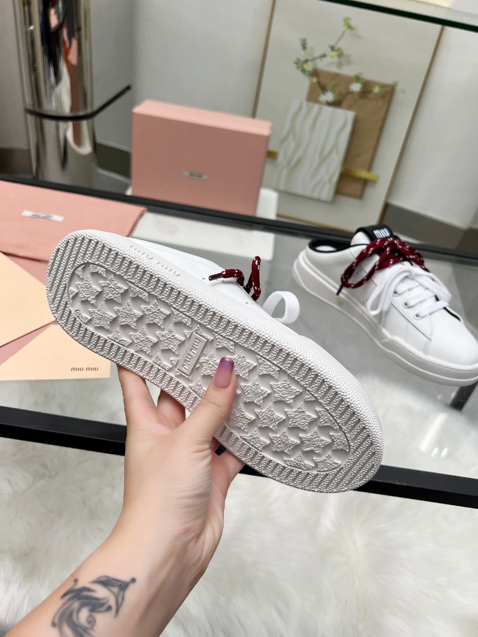 这款鞋子是AAAAA 1:1 质量 (非常棒). 使用了和原版一模一样的材料. 商标部分也保持了和缪缪/Miu Miu一样. 图片拍摄是实物鞋子拍摄, 您所收到的实物保证和我们图片一模一样.
