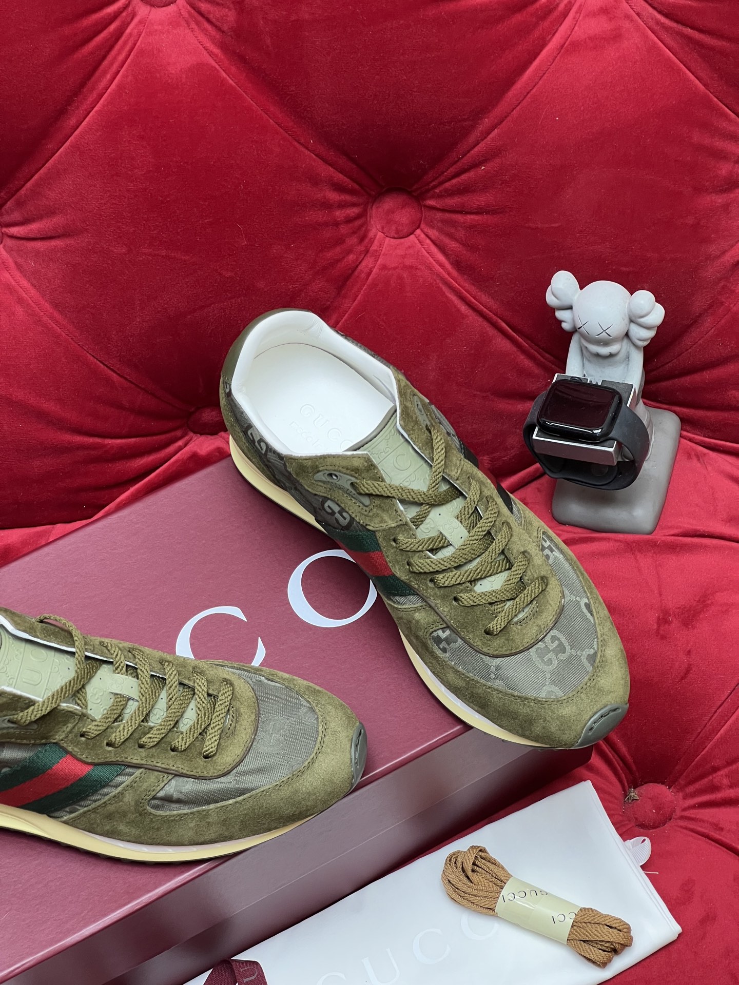 这款鞋子是AAAAA 1:1 质量 (非常棒). 使用了和原版一模一样的材料. 商标部分也保持了和古奇/Gucci一样. 图片拍摄是实物鞋子拍摄, 您所收到的实物保证和我们图片一模一样.