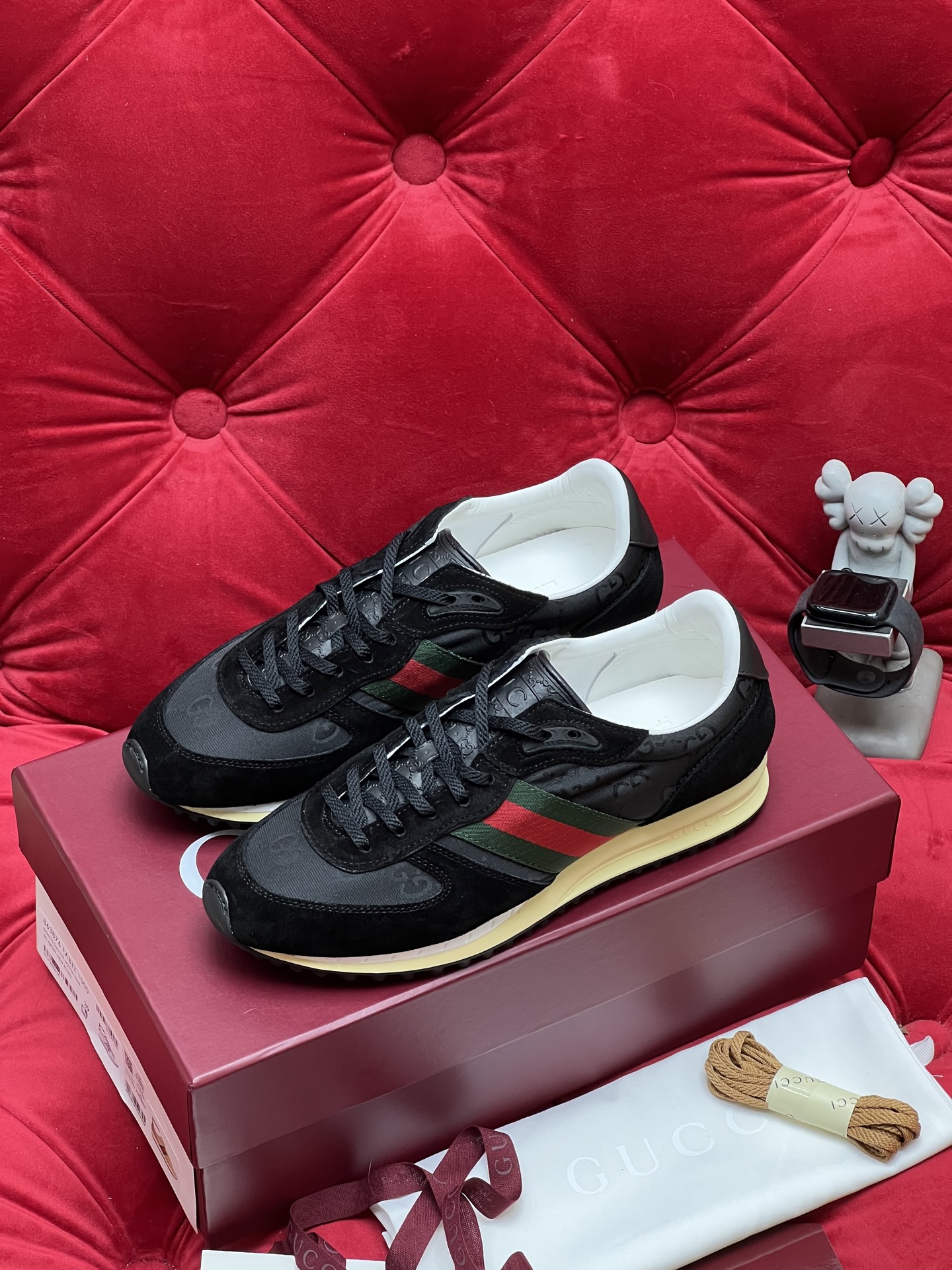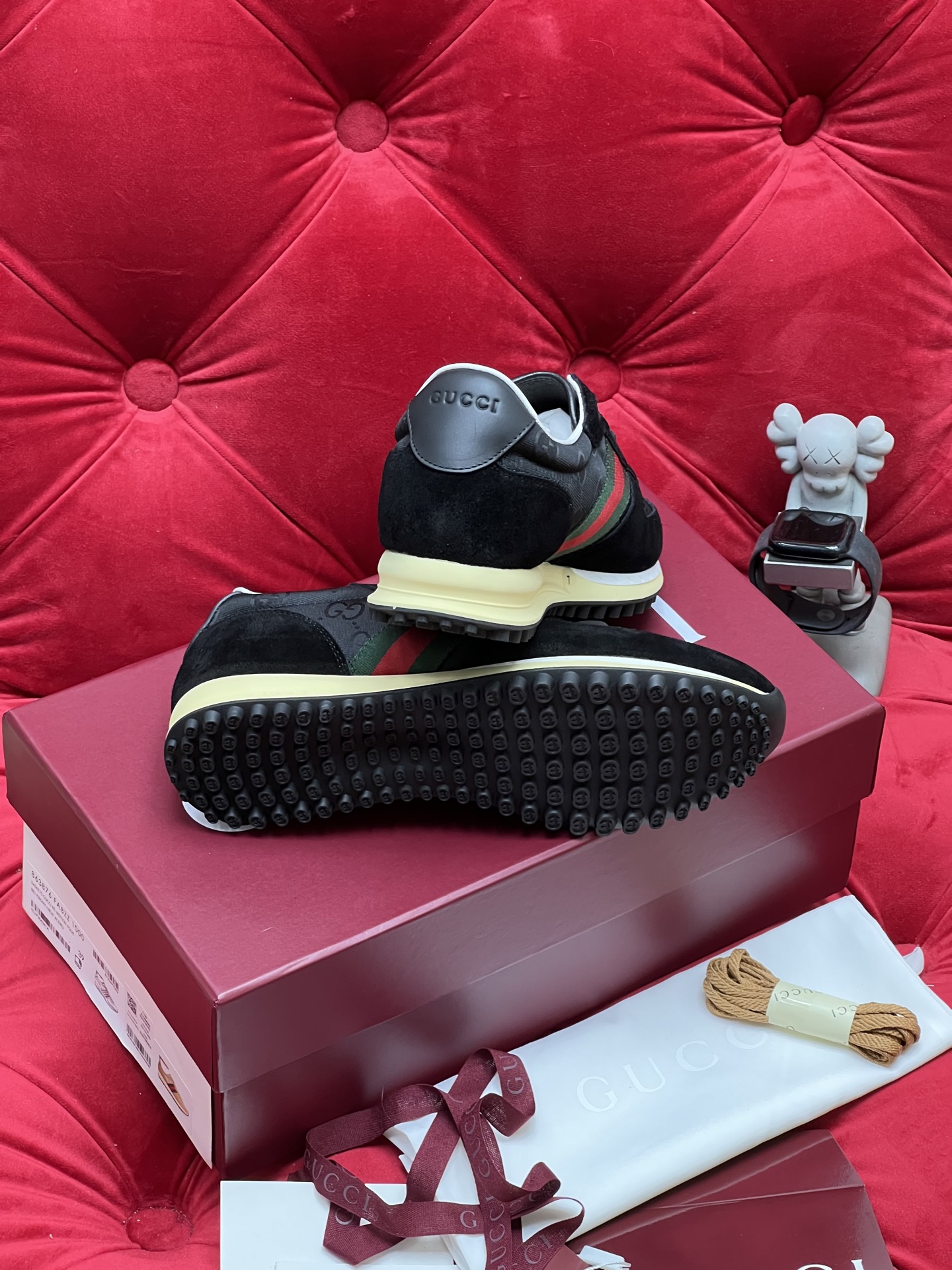 这款鞋子是AAAAA 1:1 质量 (非常棒). 使用了和原版一模一样的材料. 商标部分也保持了和古奇/Gucci一样. 图片拍摄是实物鞋子拍摄, 您所收到的实物保证和我们图片一模一样.