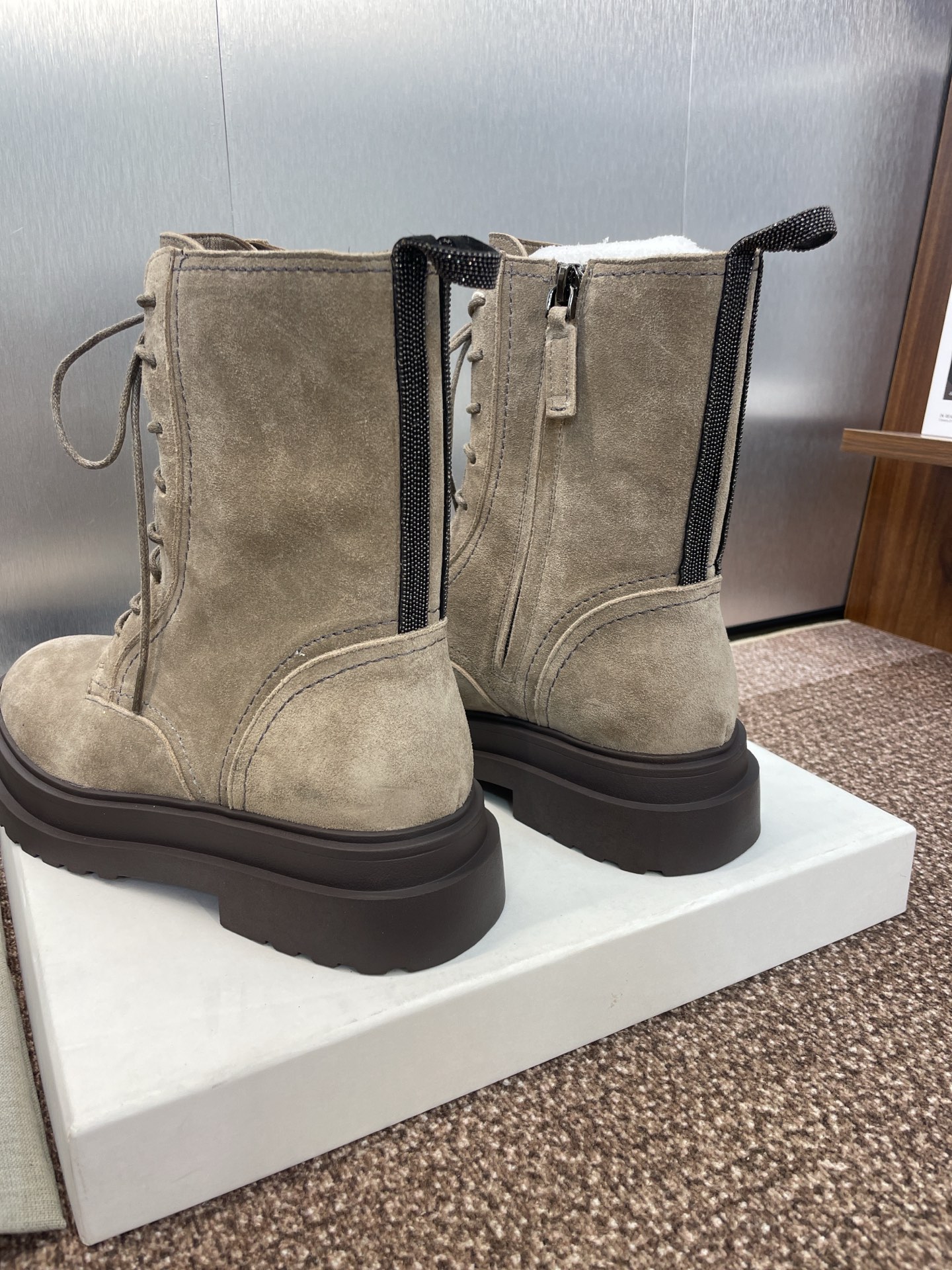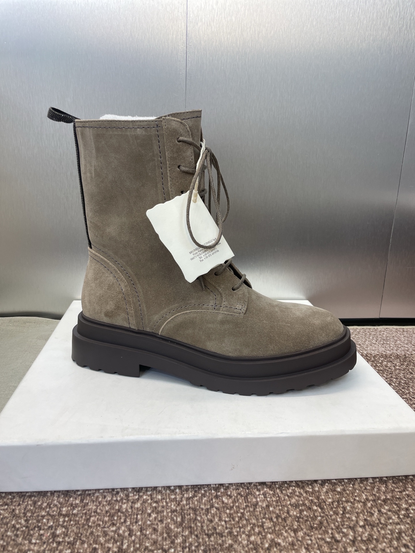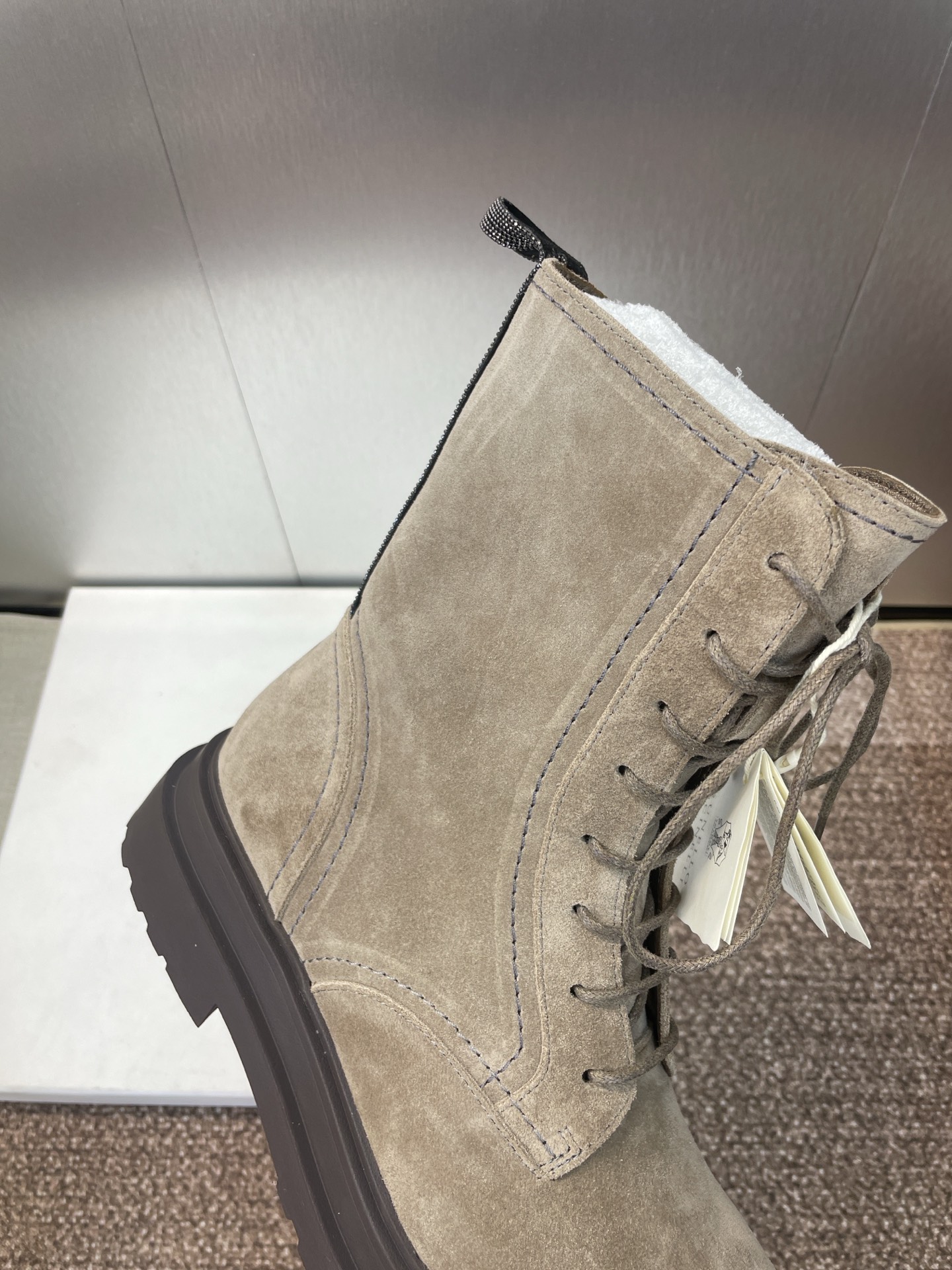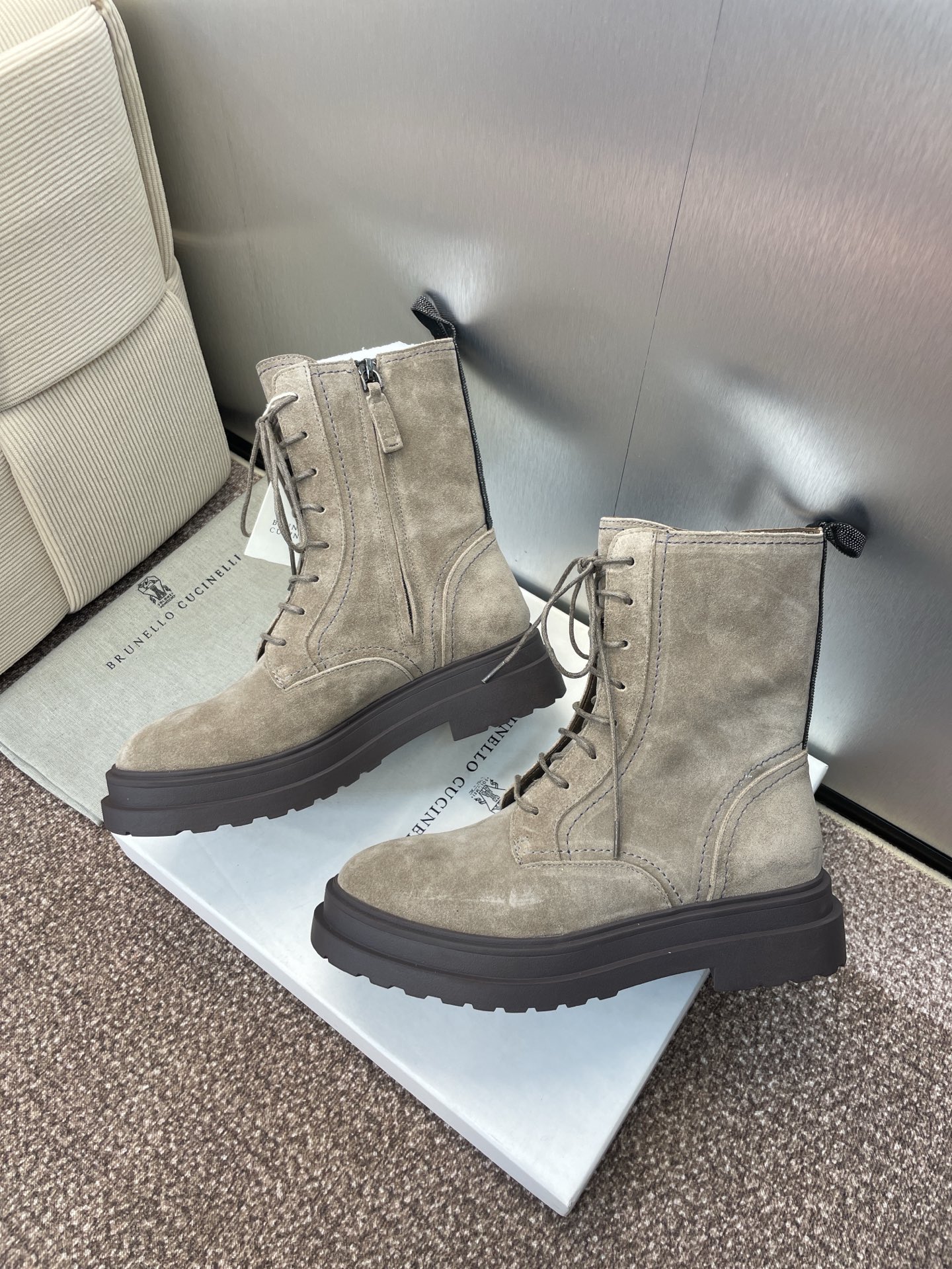 这款鞋子是AAAAA 1:1 质量 (非常棒). 使用了和原版一模一样的材料. 商标部分也保持了和Brunello Cucinelli一样. 图片拍摄是实物鞋子拍摄, 您所收到的实物保证和我们图片一模一样.