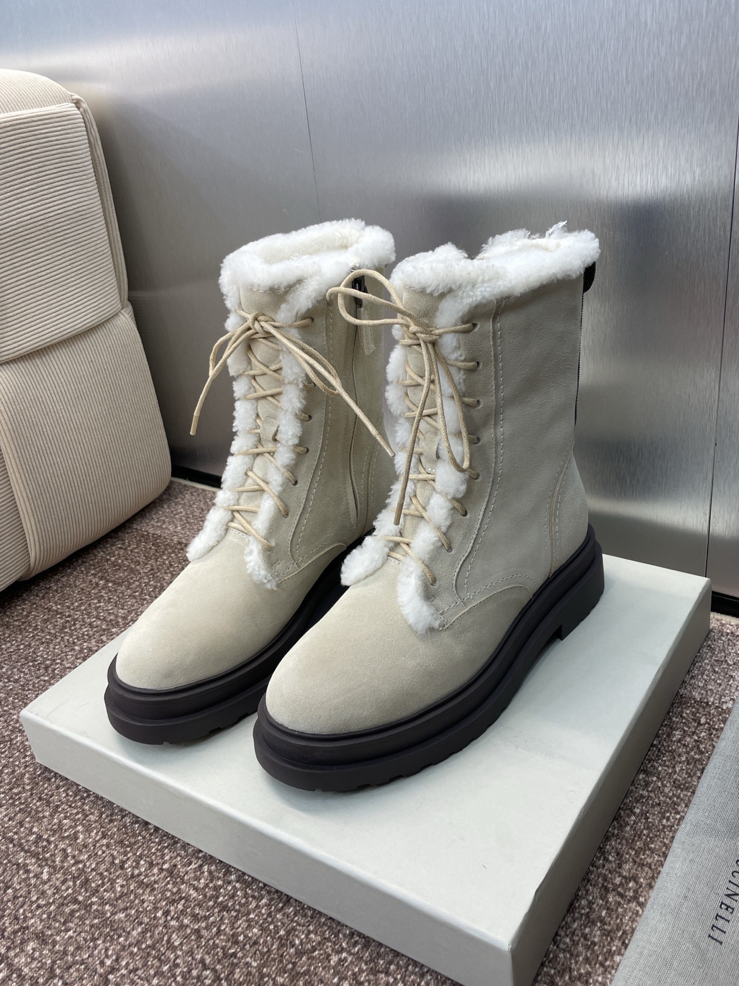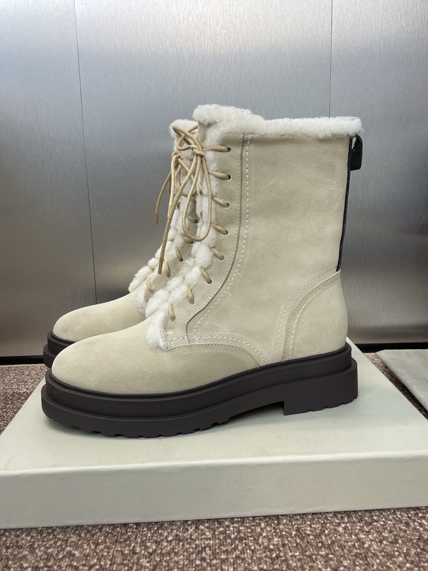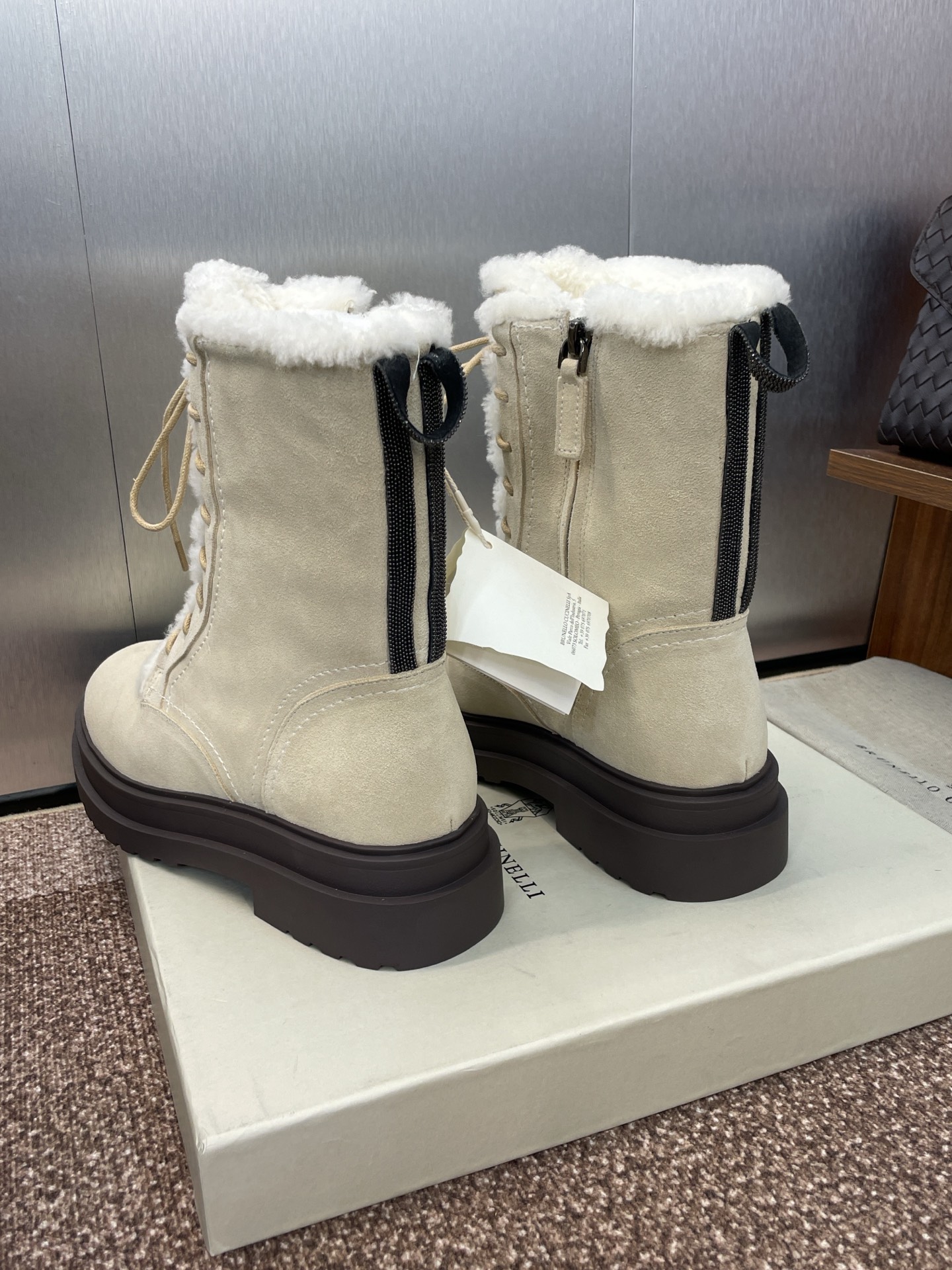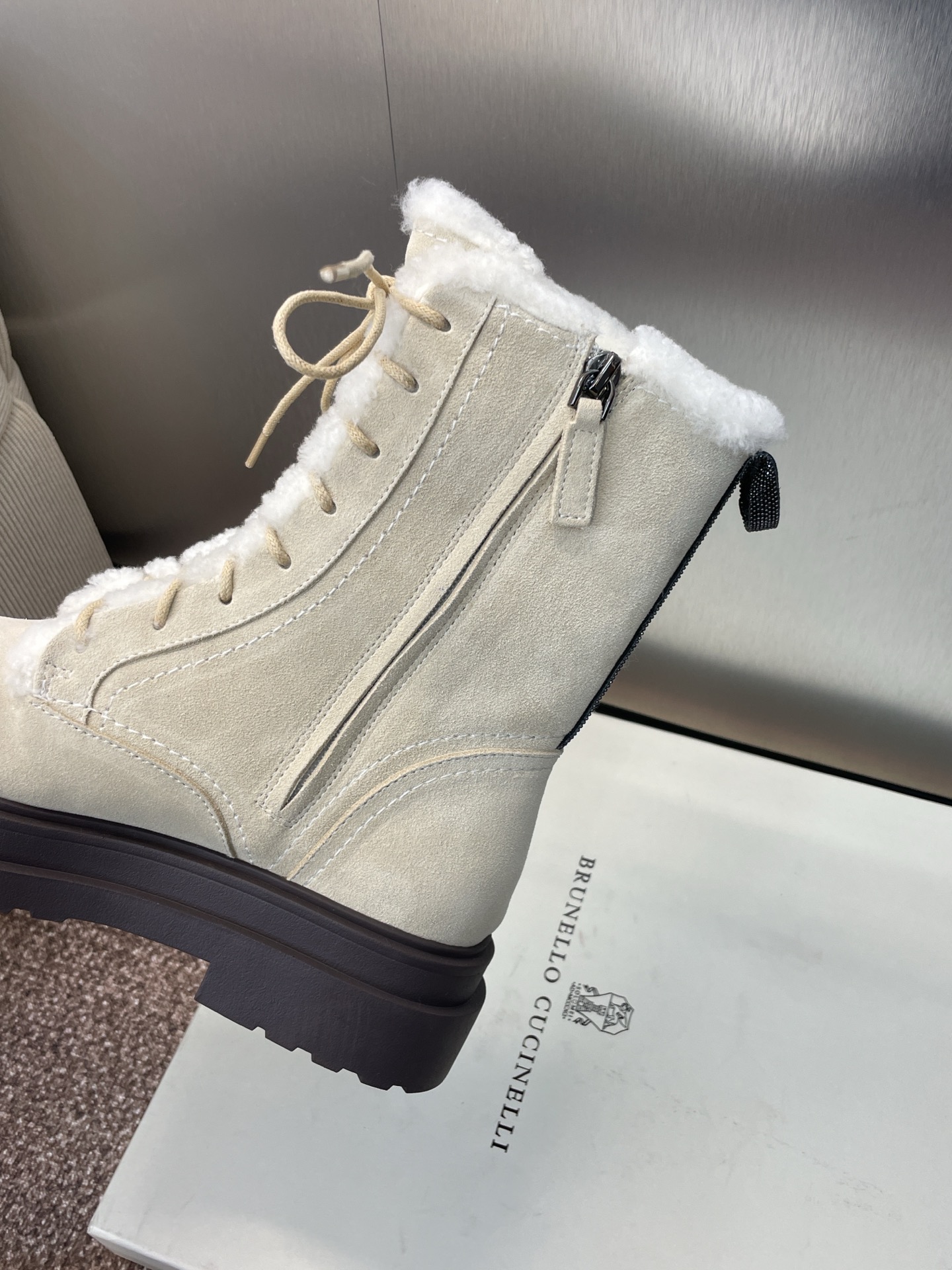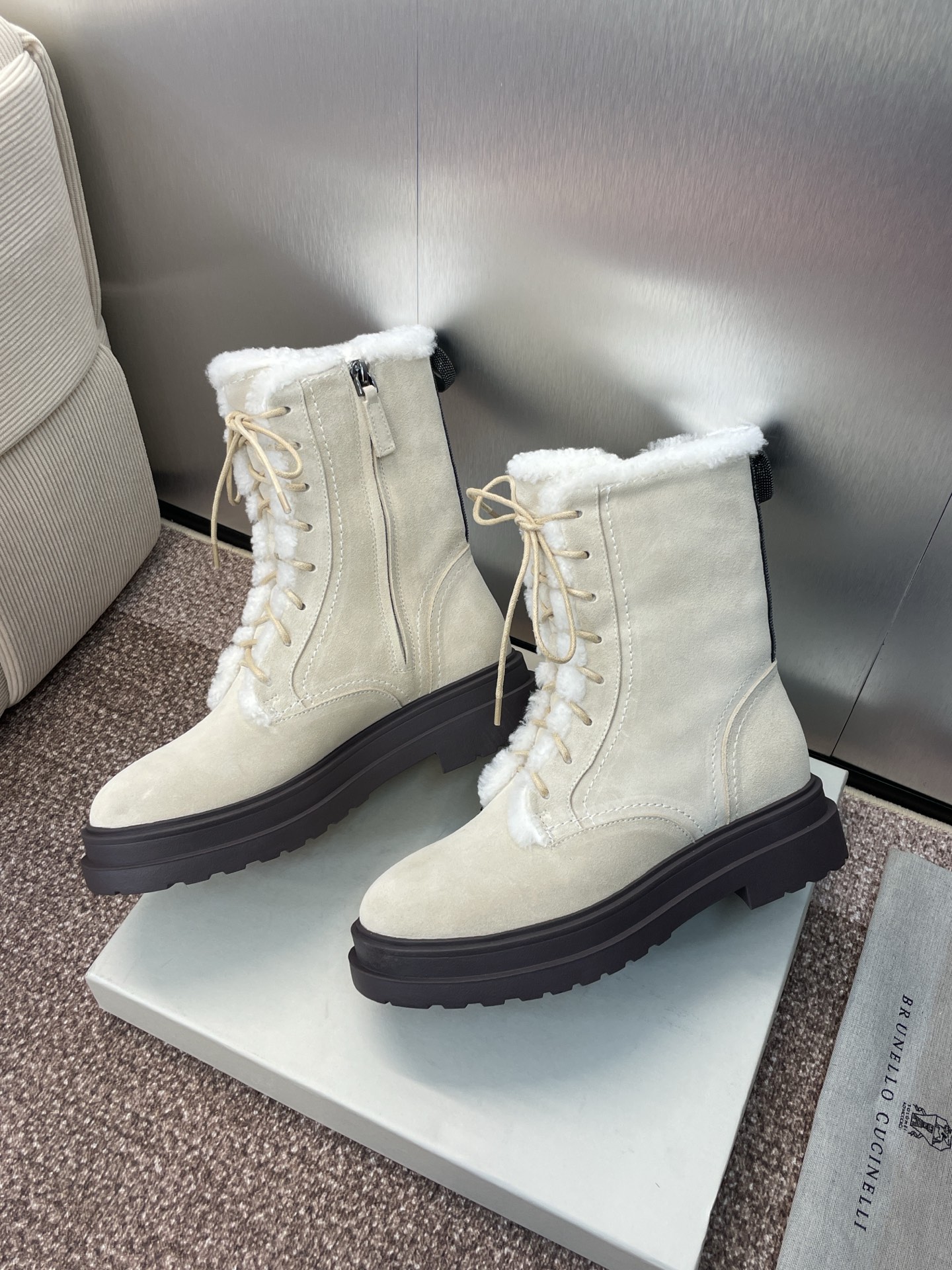 这款鞋子是AAAAA 1:1 质量 (非常棒). 使用了和原版一模一样的材料. 商标部分也保持了和Brunello Cucinelli一样. 图片拍摄是实物鞋子拍摄, 您所收到的实物保证和我们图片一模一样.
