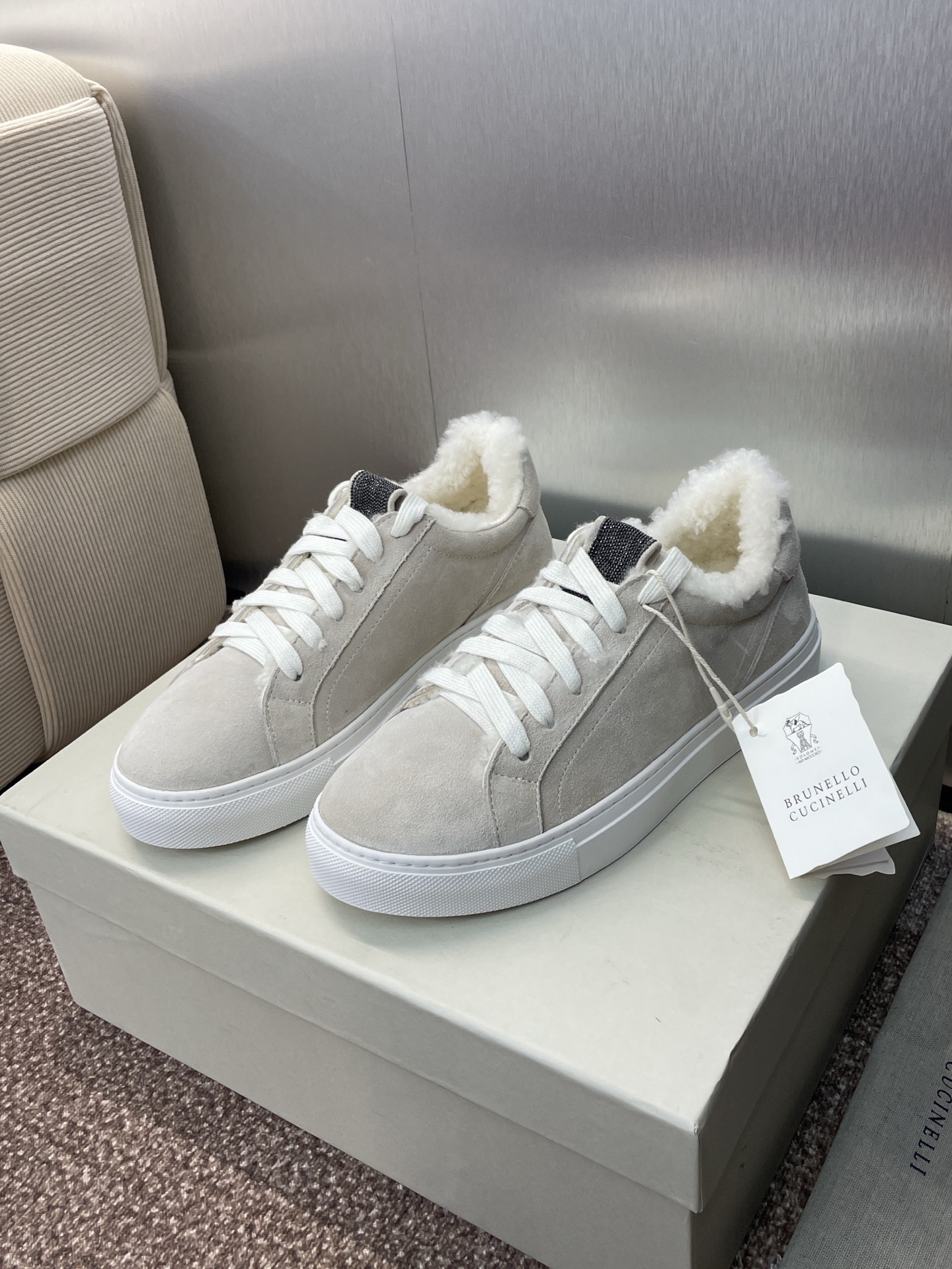 这款鞋子是AAAAA 1:1 质量 (非常棒). 使用了和原版一模一样的材料. 商标部分也保持了和Brunello Cucinelli一样. 图片拍摄是实物鞋子拍摄, 您所收到的实物保证和我们图片一模一样.