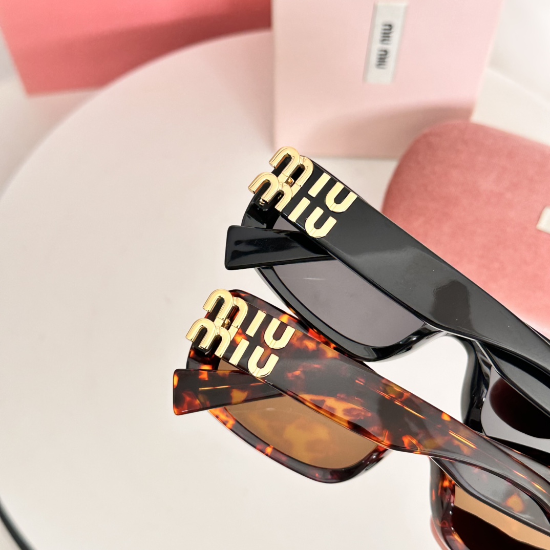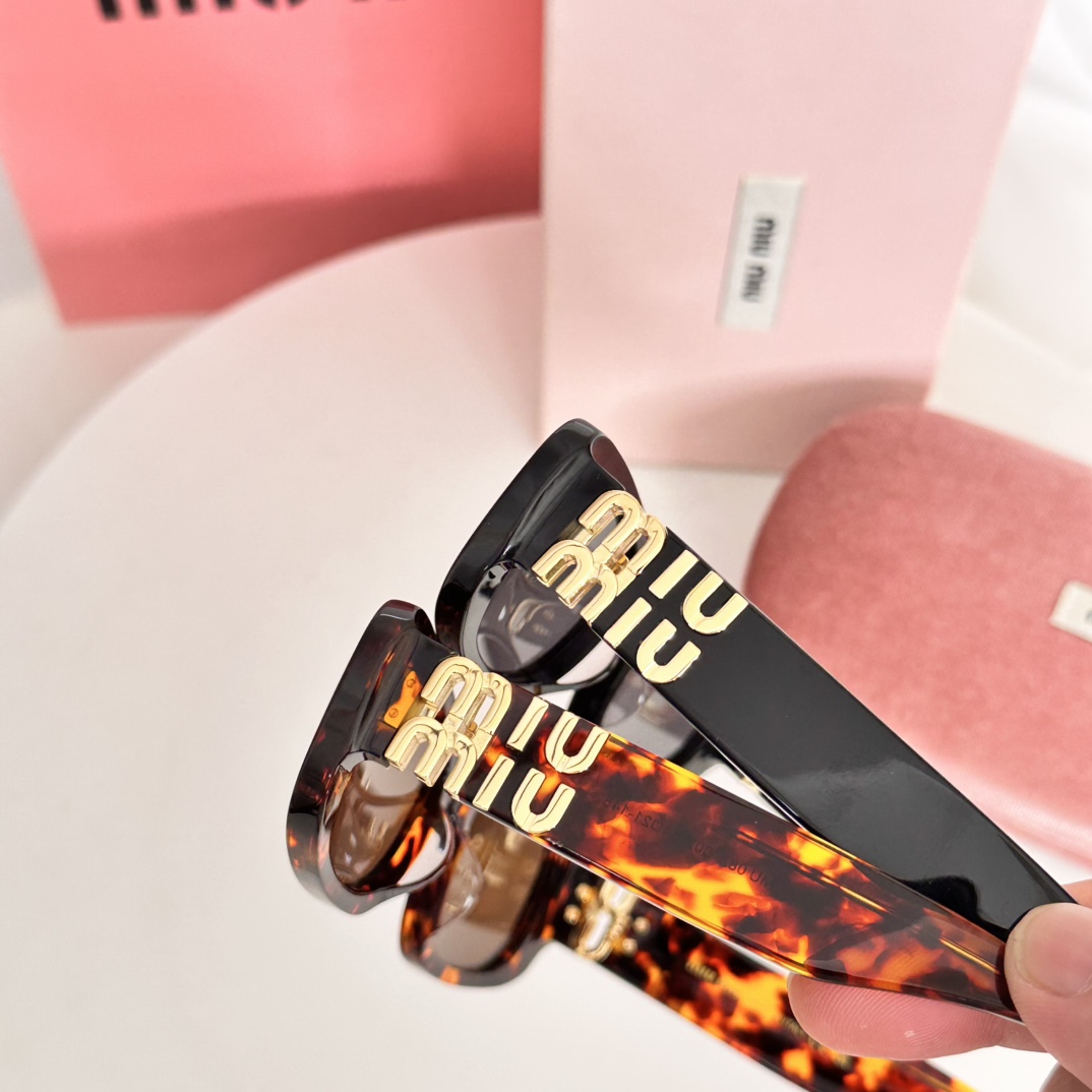这款太阳眼镜是AAAAA 1:1 质量 (非常棒). 使用了和原版一模一样的材料. 商标部分也保持了和缪缪/Miu Miu一样. 图片拍摄是实物太阳眼镜拍摄, 您所收到的实物保证和我们图片一模一样.