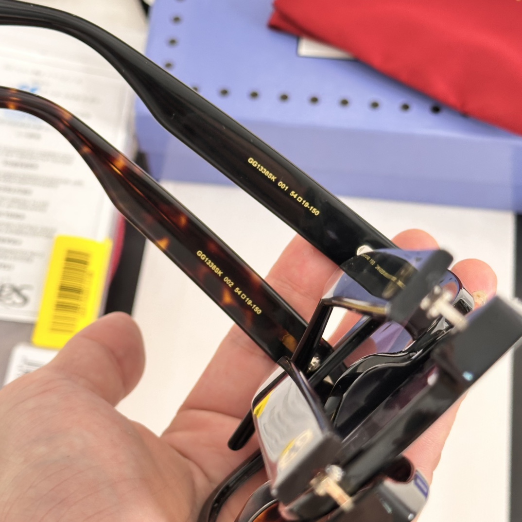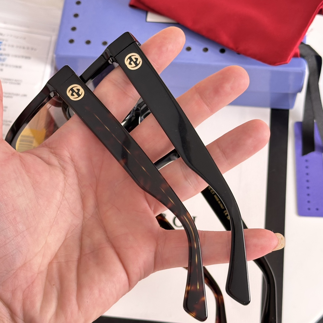 这款太阳眼镜是AAAAA 1:1 质量 (非常棒). 使用了和原版一模一样的材料. 商标部分也保持了和古奇/Gucci一样. 图片拍摄是实物太阳眼镜拍摄, 您所收到的实物保证和我们图片一模一样.