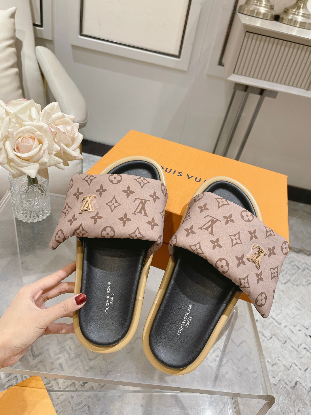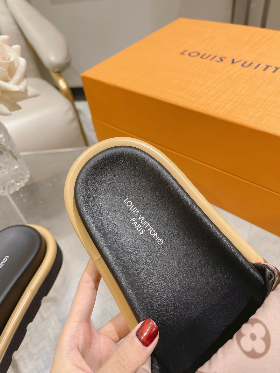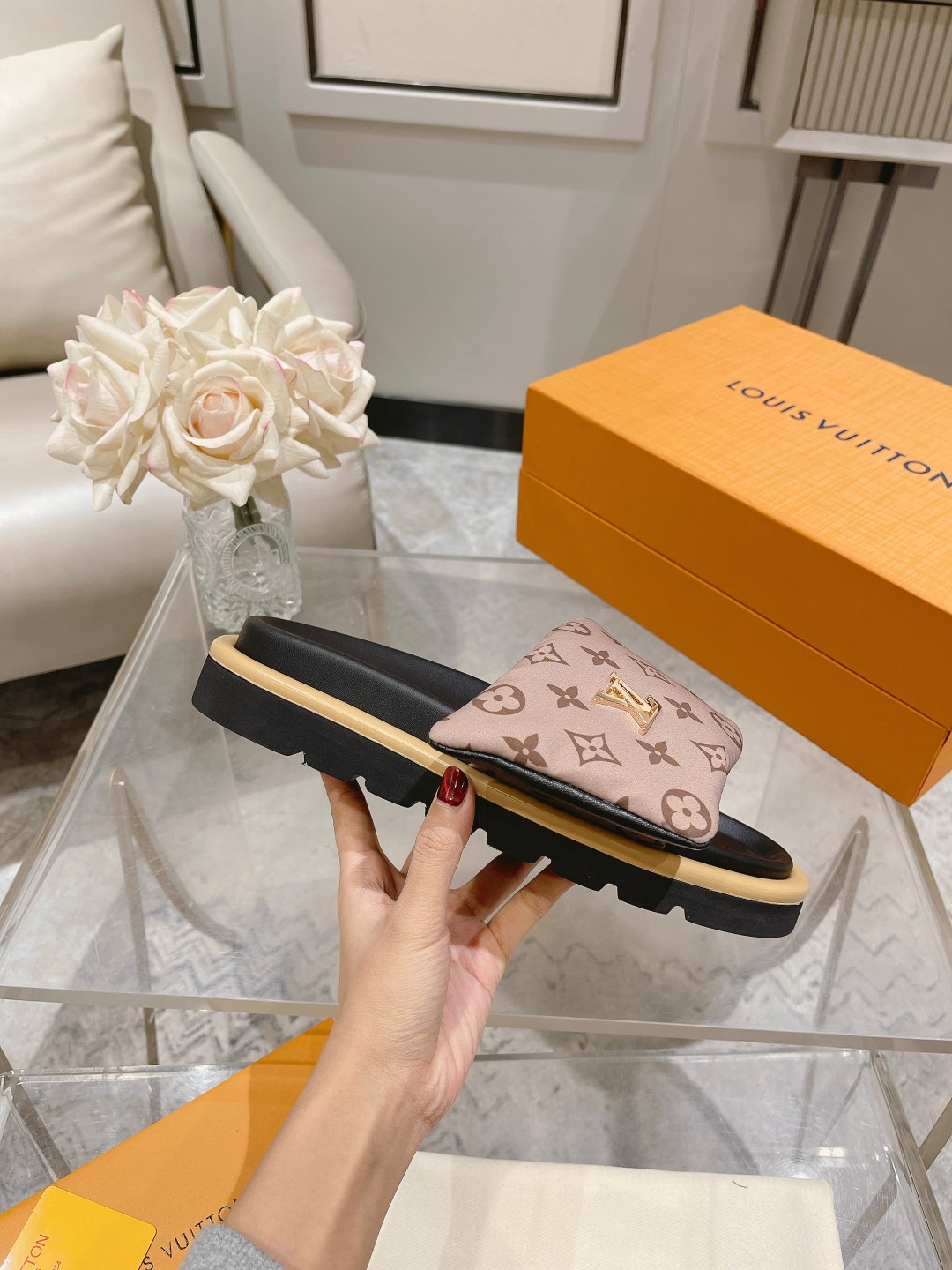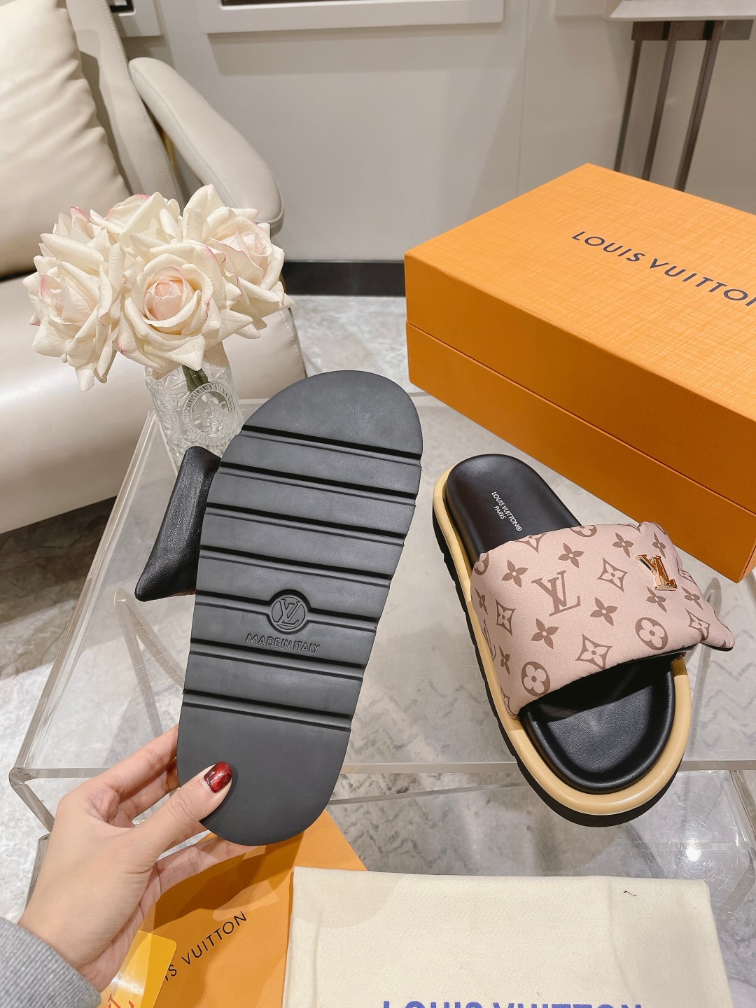 这款鞋子是AAAAA 1:1 质量 (非常棒). 使用了和原版一模一样的材料. 商标部分也保持了和路易威登/Louis Vuitton一样. 图片拍摄是实物鞋子拍摄, 您所收到的实物保证和我们图片一模一样.