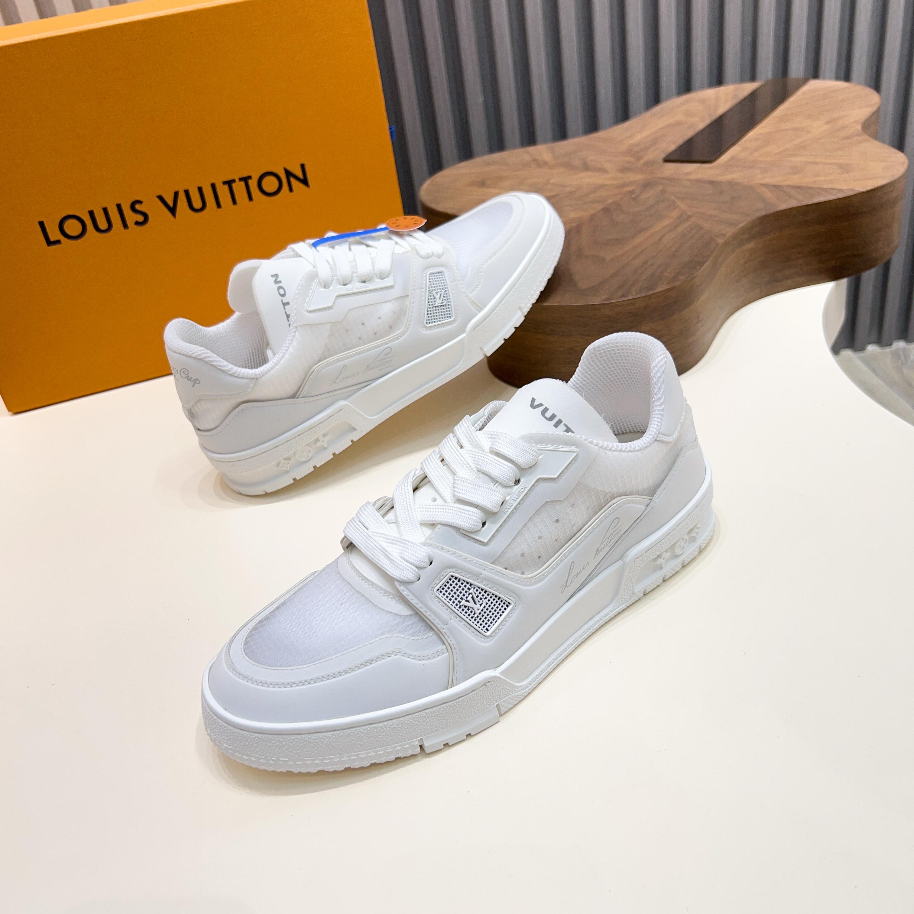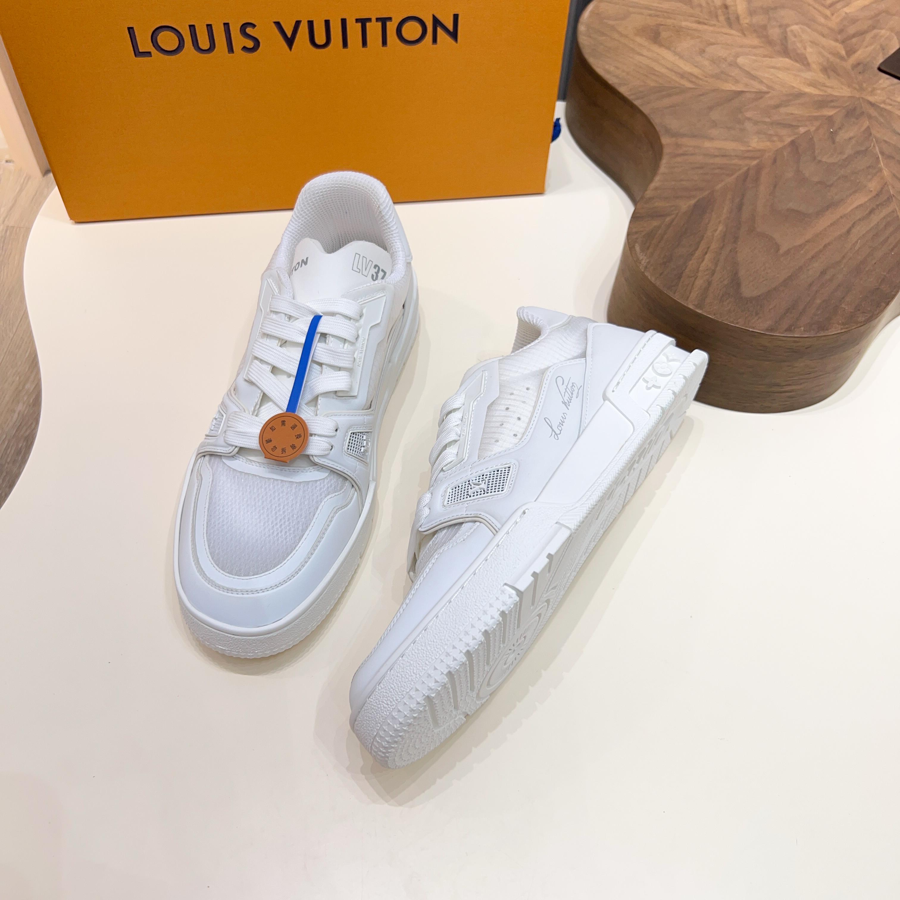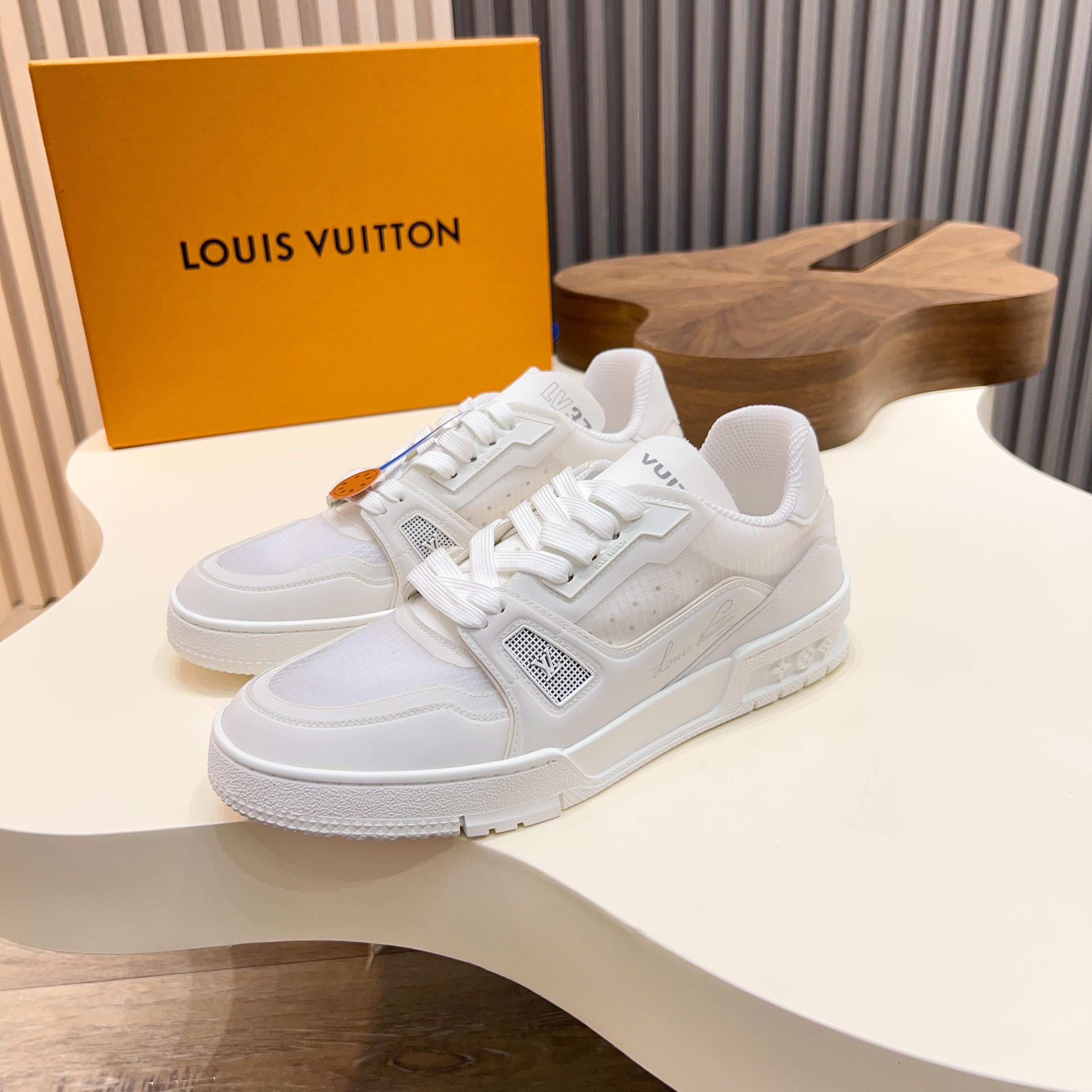 这款鞋子是AAAAA 1:1 质量 (非常棒). 使用了和原版一模一样的材料. 商标部分也保持了和路易威登/Louis Vuitton一样. 图片拍摄是实物鞋子拍摄, 您所收到的实物保证和我们图片一模一样.