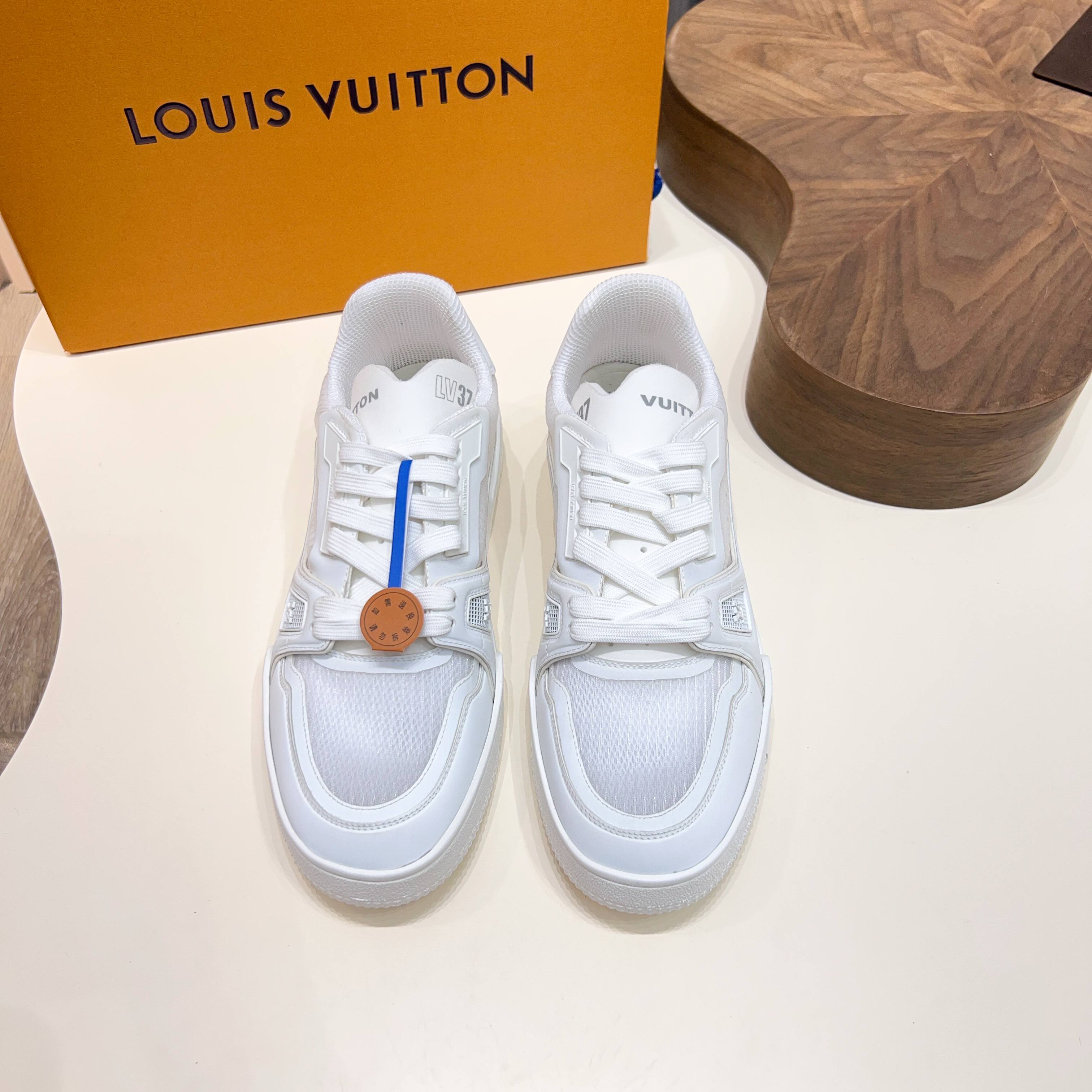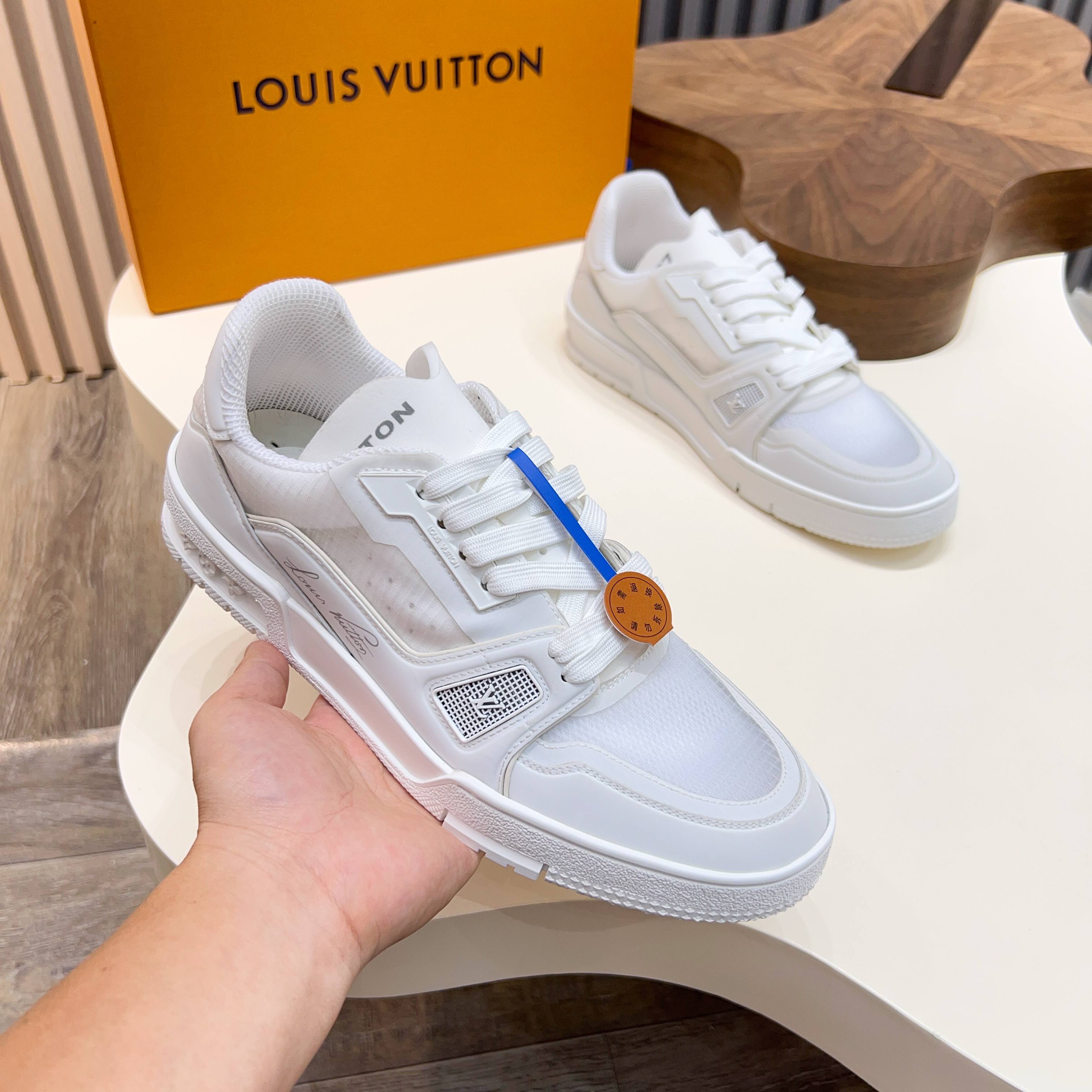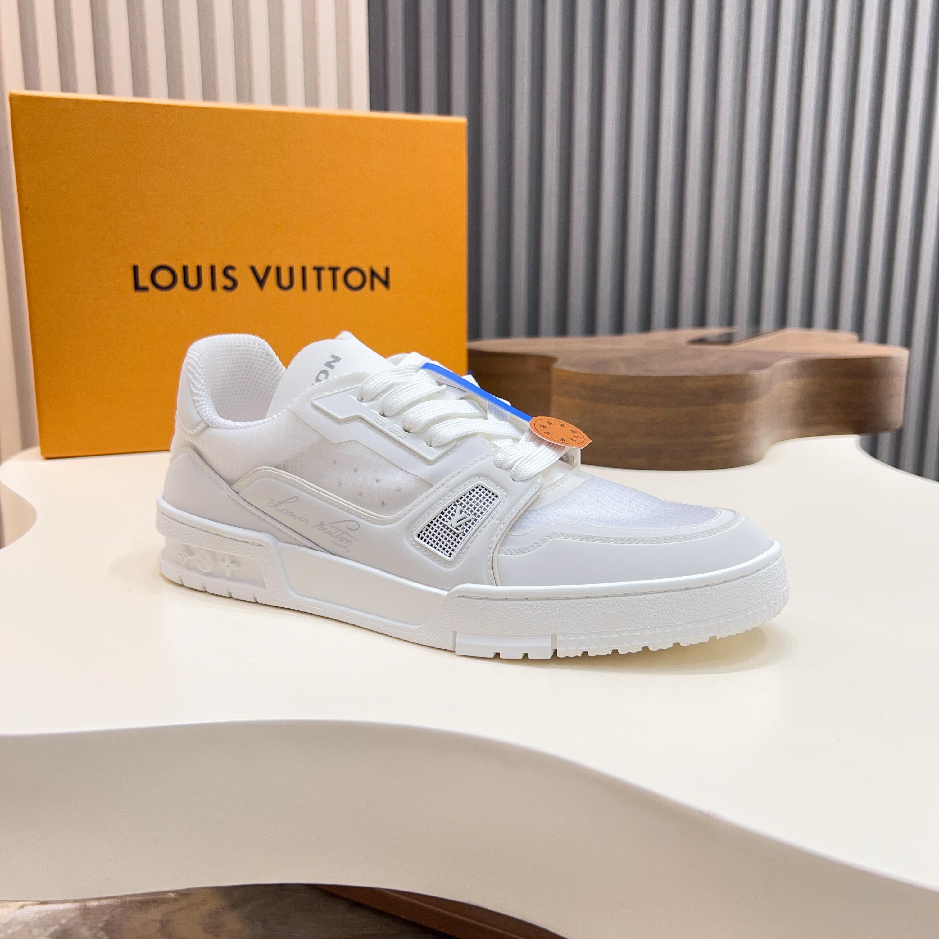 这款鞋子是AAAAA 1:1 质量 (非常棒). 使用了和原版一模一样的材料. 商标部分也保持了和路易威登/Louis Vuitton一样. 图片拍摄是实物鞋子拍摄, 您所收到的实物保证和我们图片一模一样.
