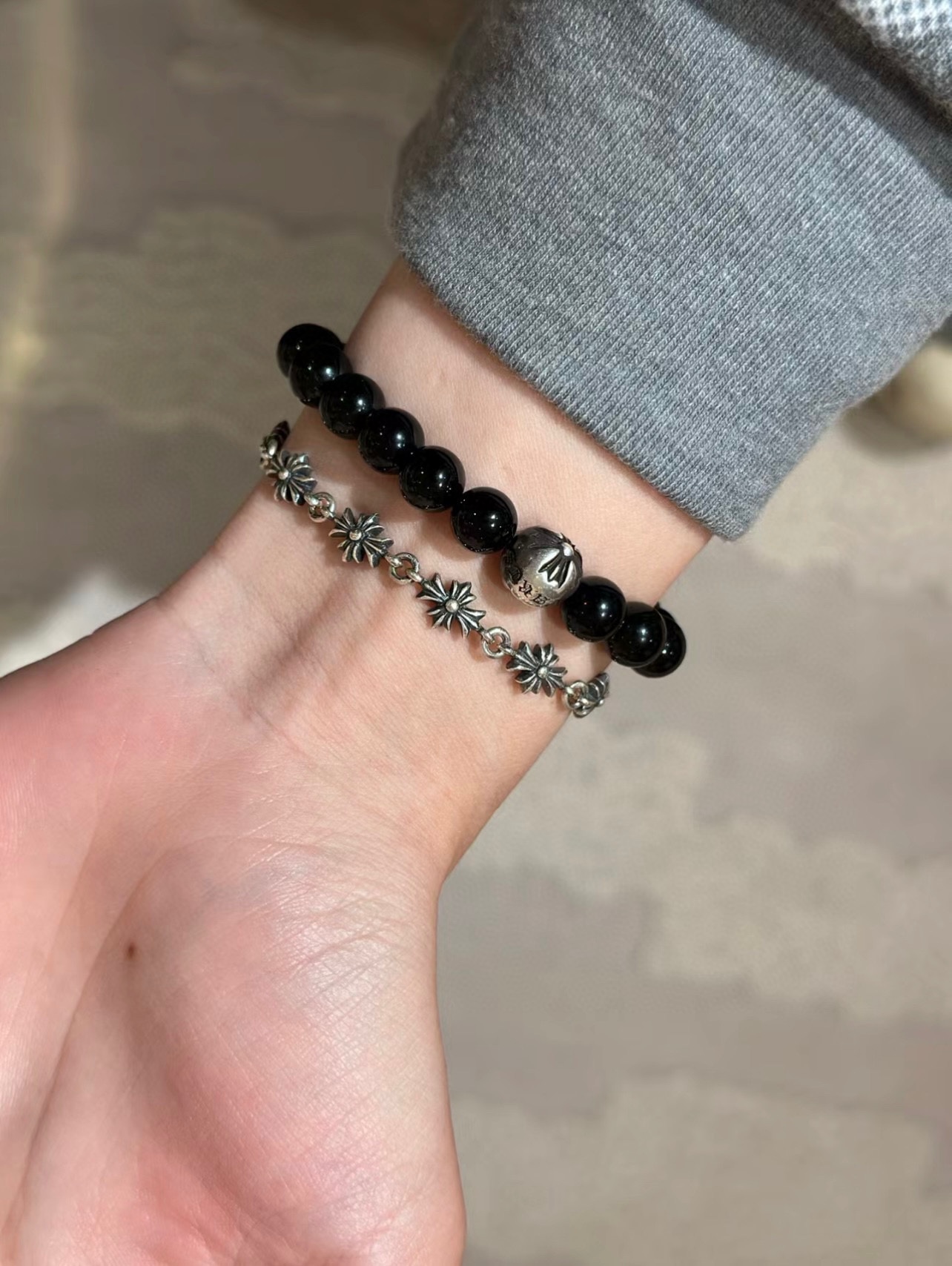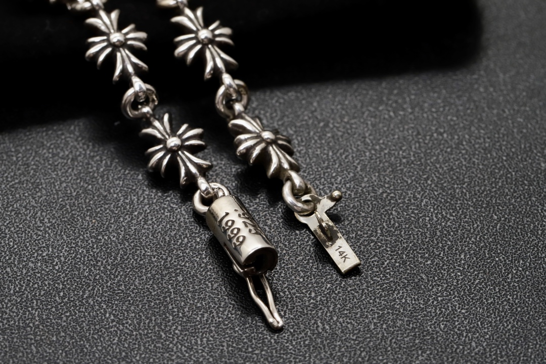 这款首饰是AAAAA 1:1 质量 (非常棒). 使用了和原版一模一样的材料. 商标部分也保持了和克罗心/Chrome Hearts一样. 图片拍摄是实物首饰拍摄, 您所收到的实物保证和我们图片一模一样.