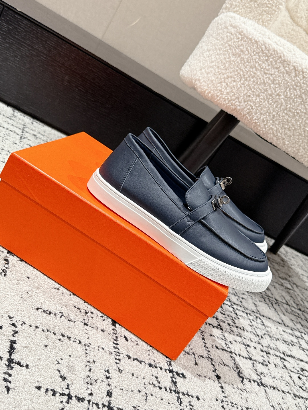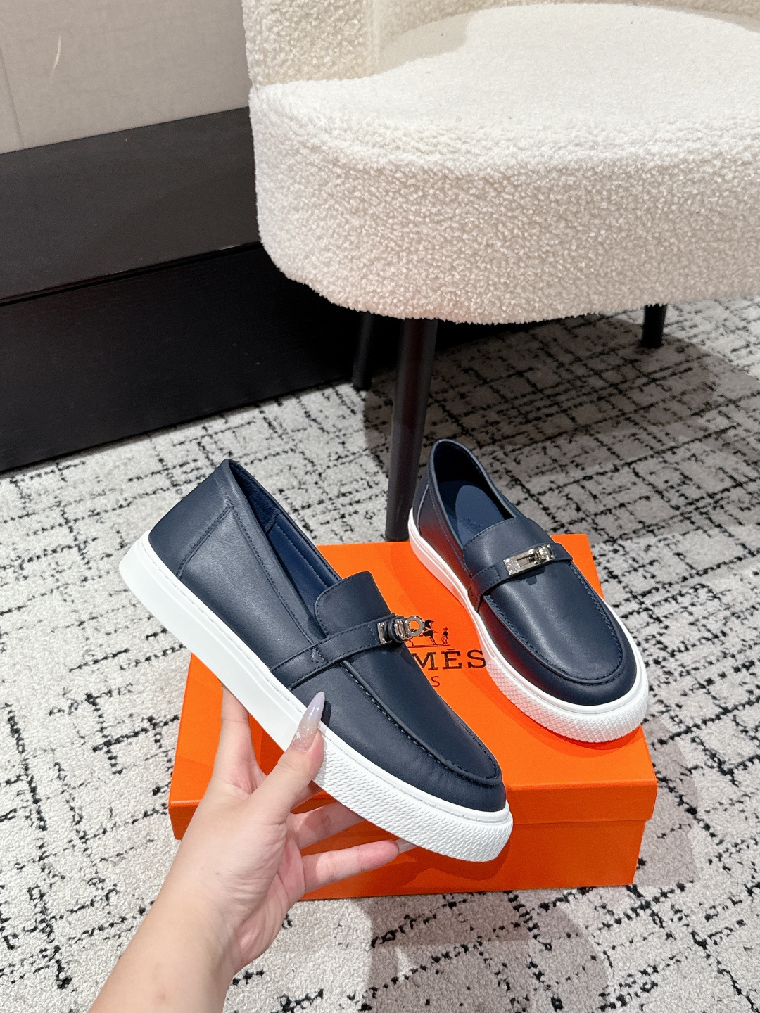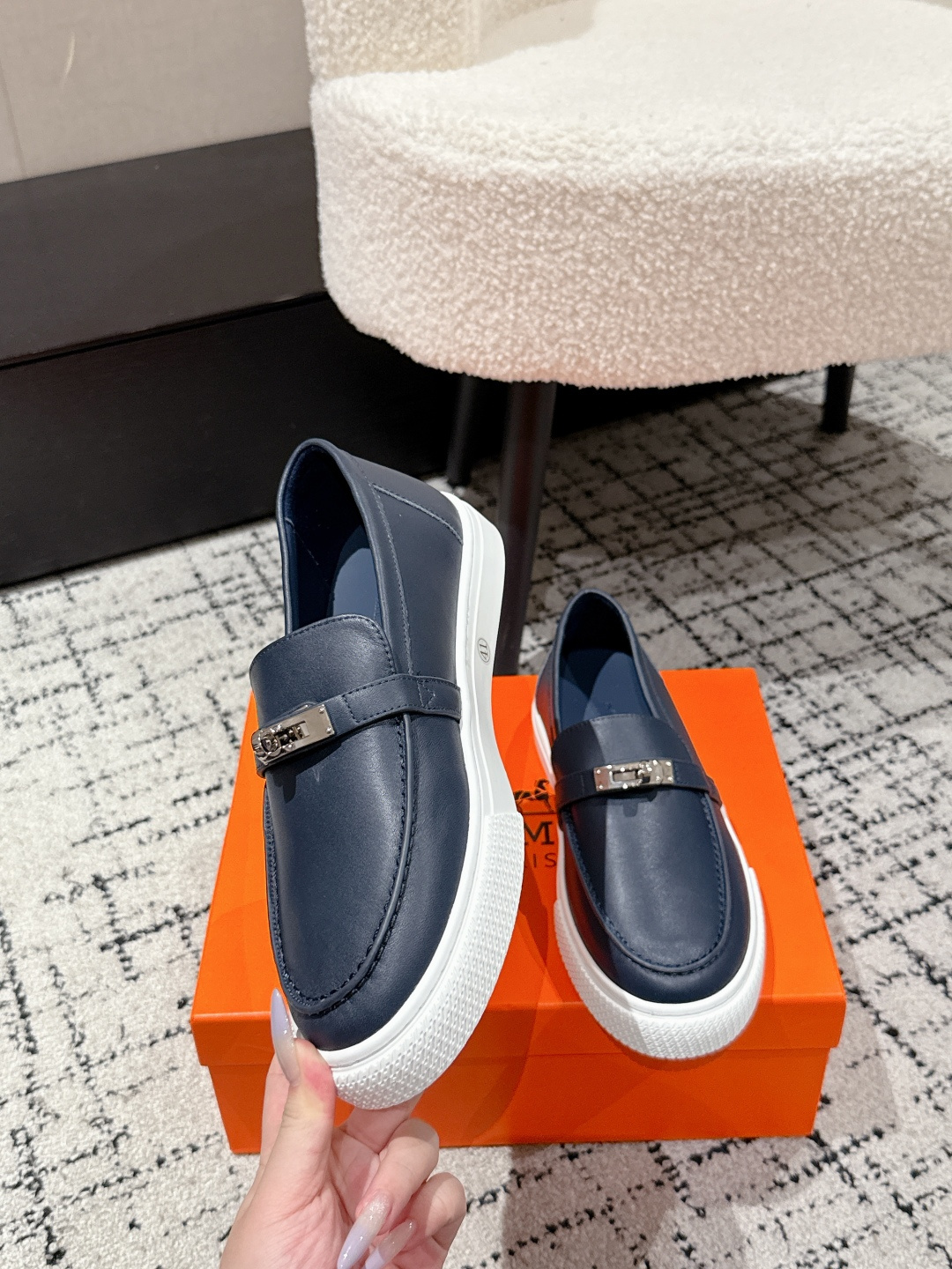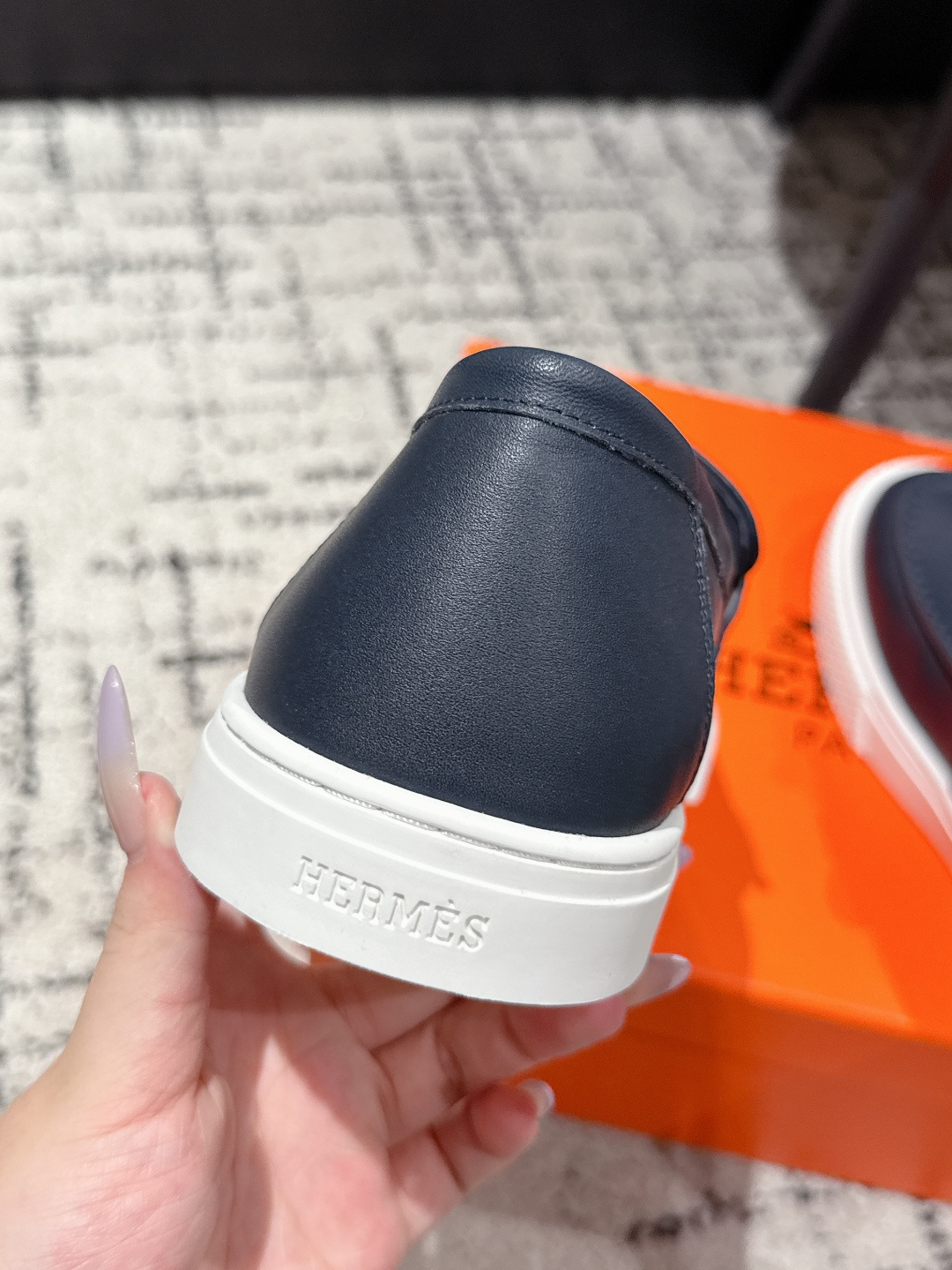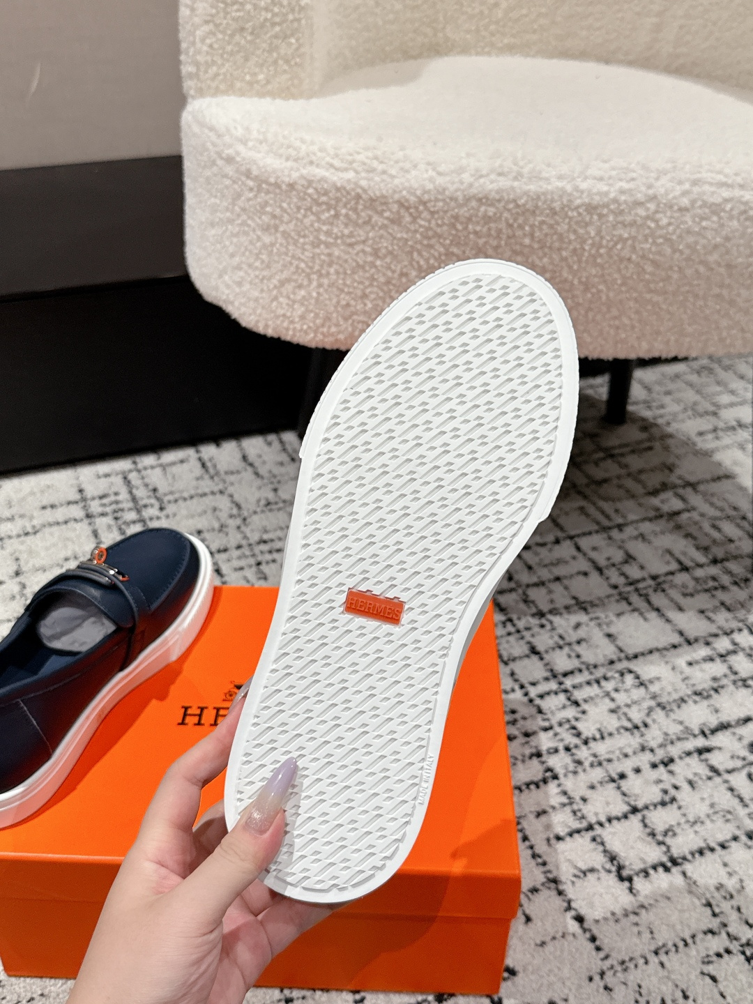 这款鞋子是AAAAA 1:1 质量 (非常棒). 使用了和原版一模一样的材料. 商标部分也保持了和爱马仕/Hermes一样. 图片拍摄是实物鞋子拍摄, 您所收到的实物保证和我们图片一模一样.