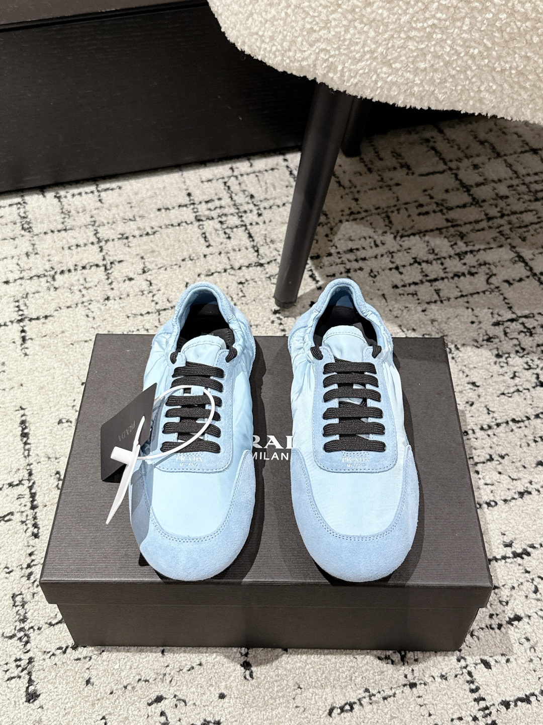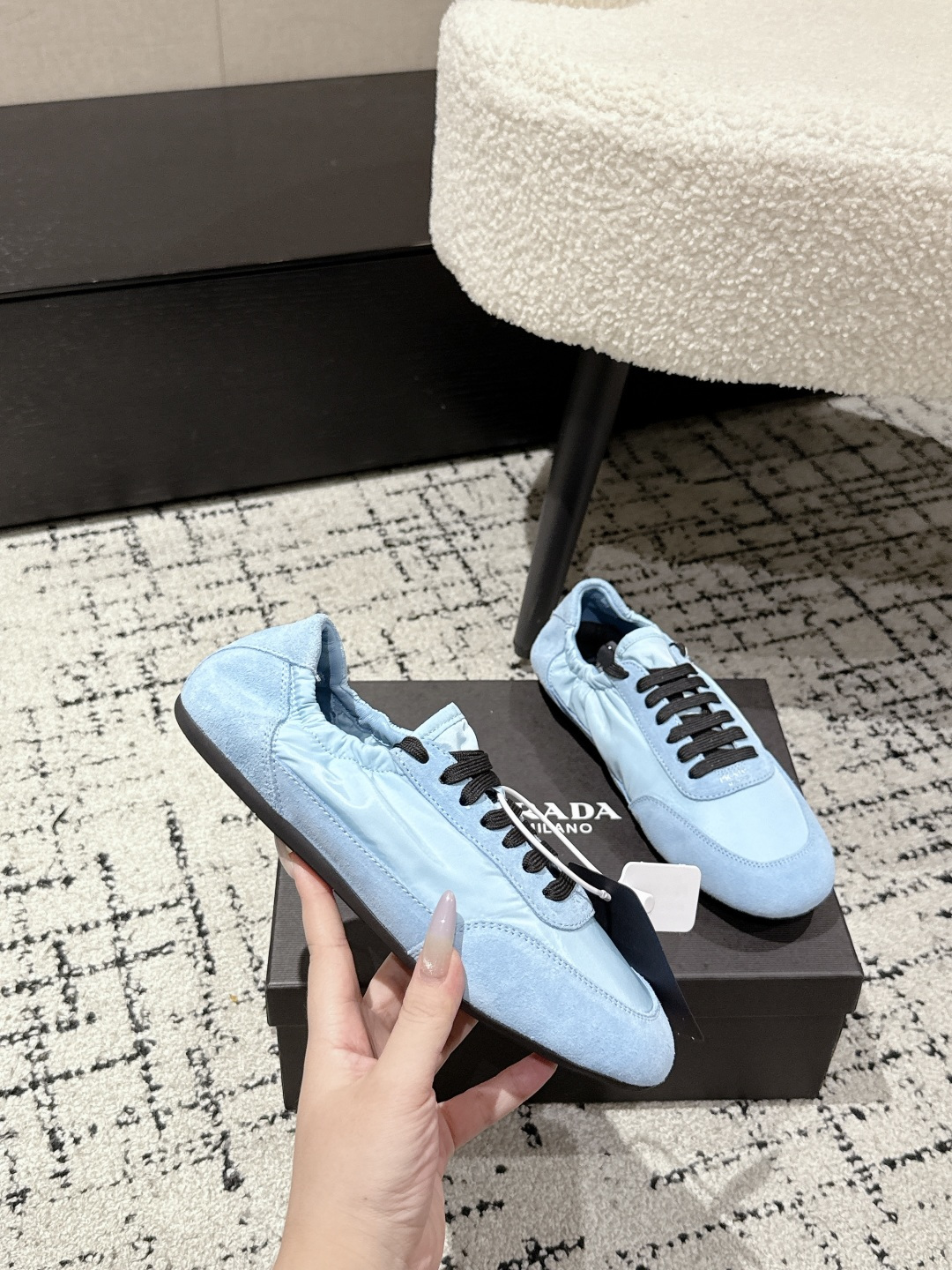 这款鞋子是AAAAA 1:1 质量 (非常棒). 使用了和原版一模一样的材料. 商标部分也保持了和普拉达/Prada一样. 图片拍摄是实物鞋子拍摄, 您所收到的实物保证和我们图片一模一样.