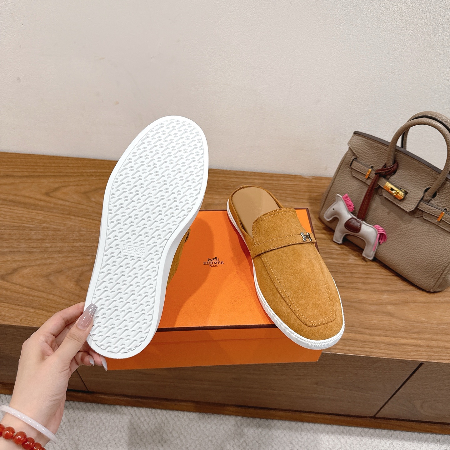 这款鞋子是AAAAA 1:1 质量 (非常棒). 使用了和原版一模一样的材料. 商标部分也保持了和爱马仕/Hermes一样. 图片拍摄是实物鞋子拍摄, 您所收到的实物保证和我们图片一模一样.