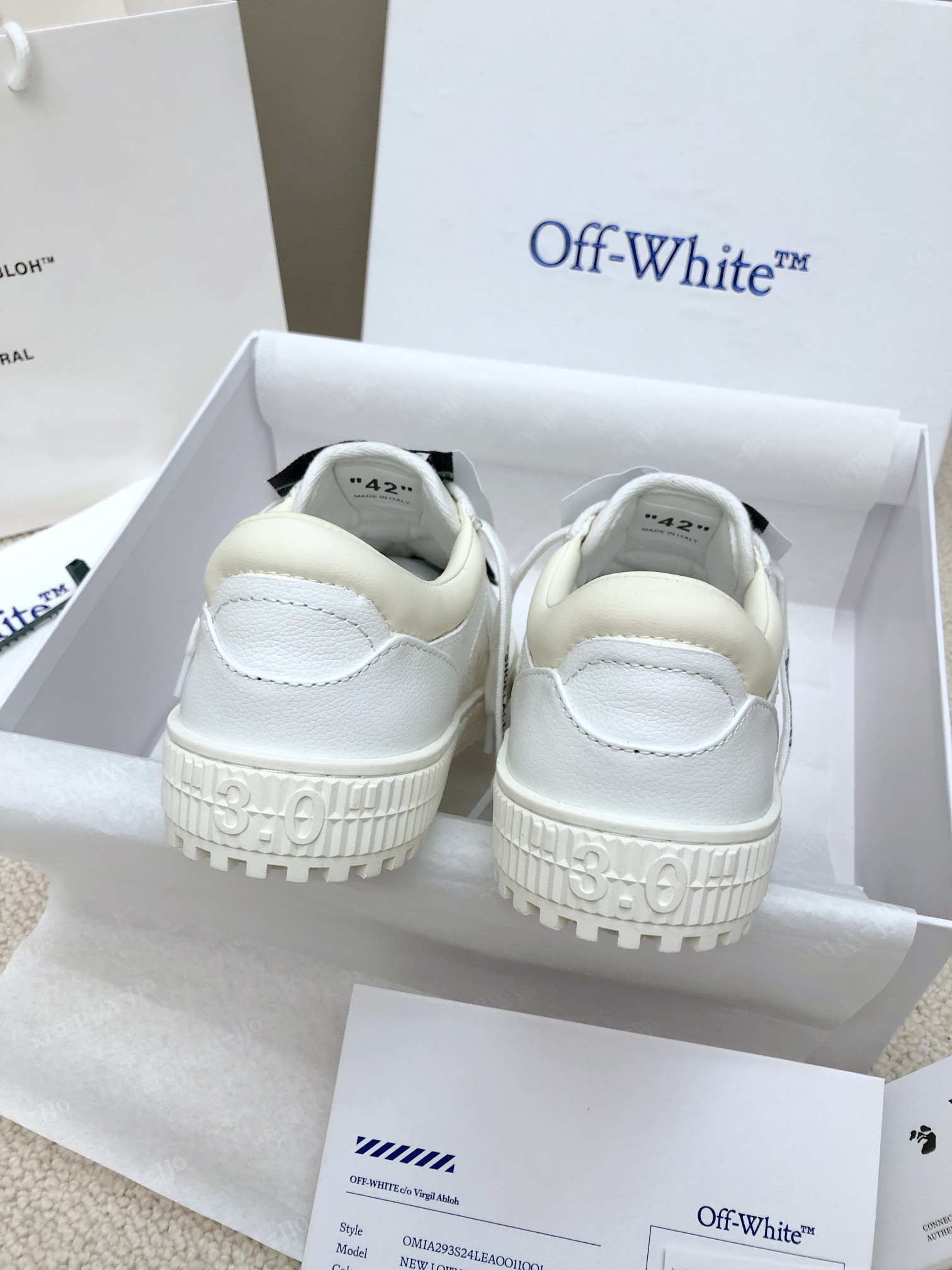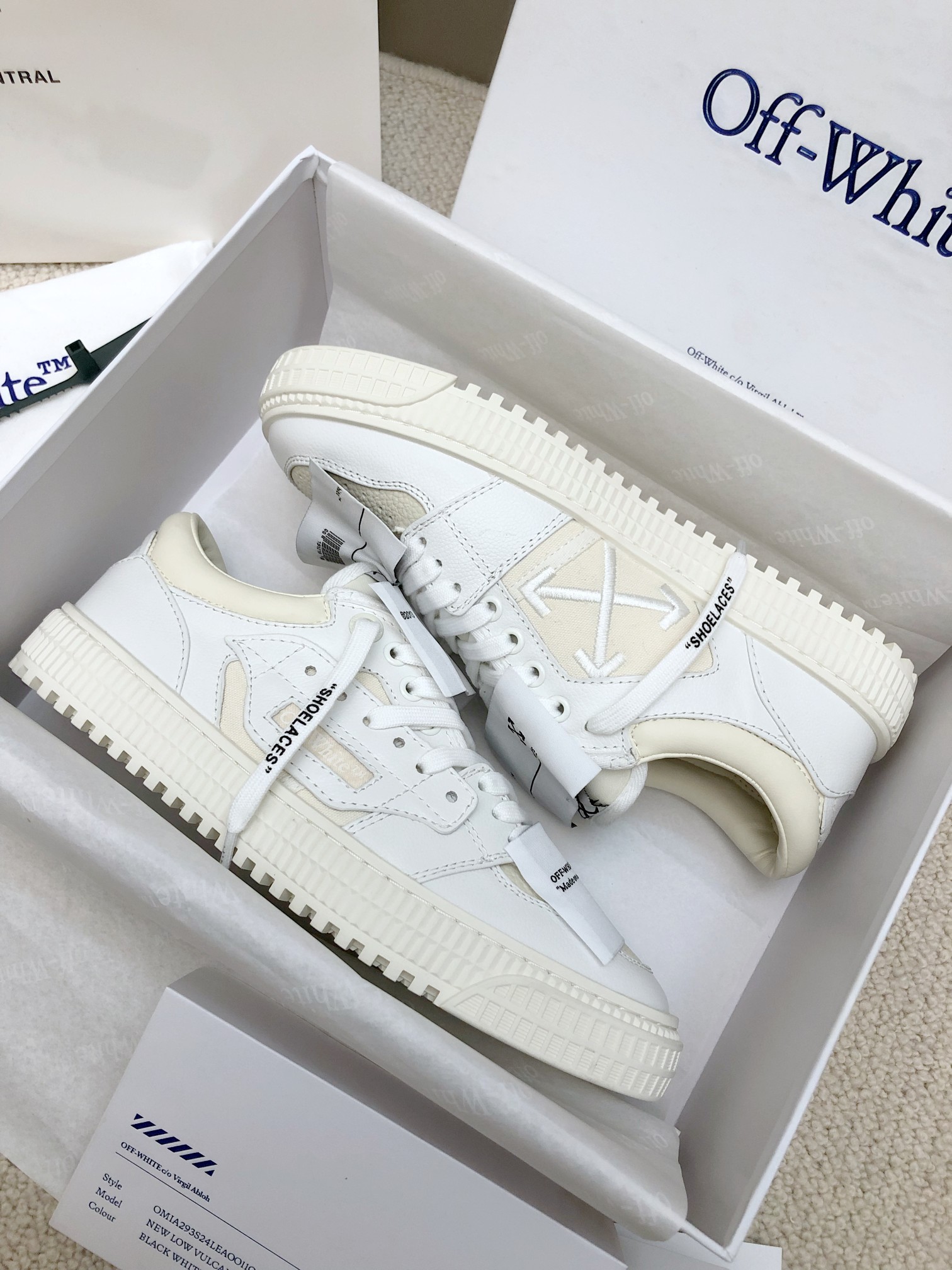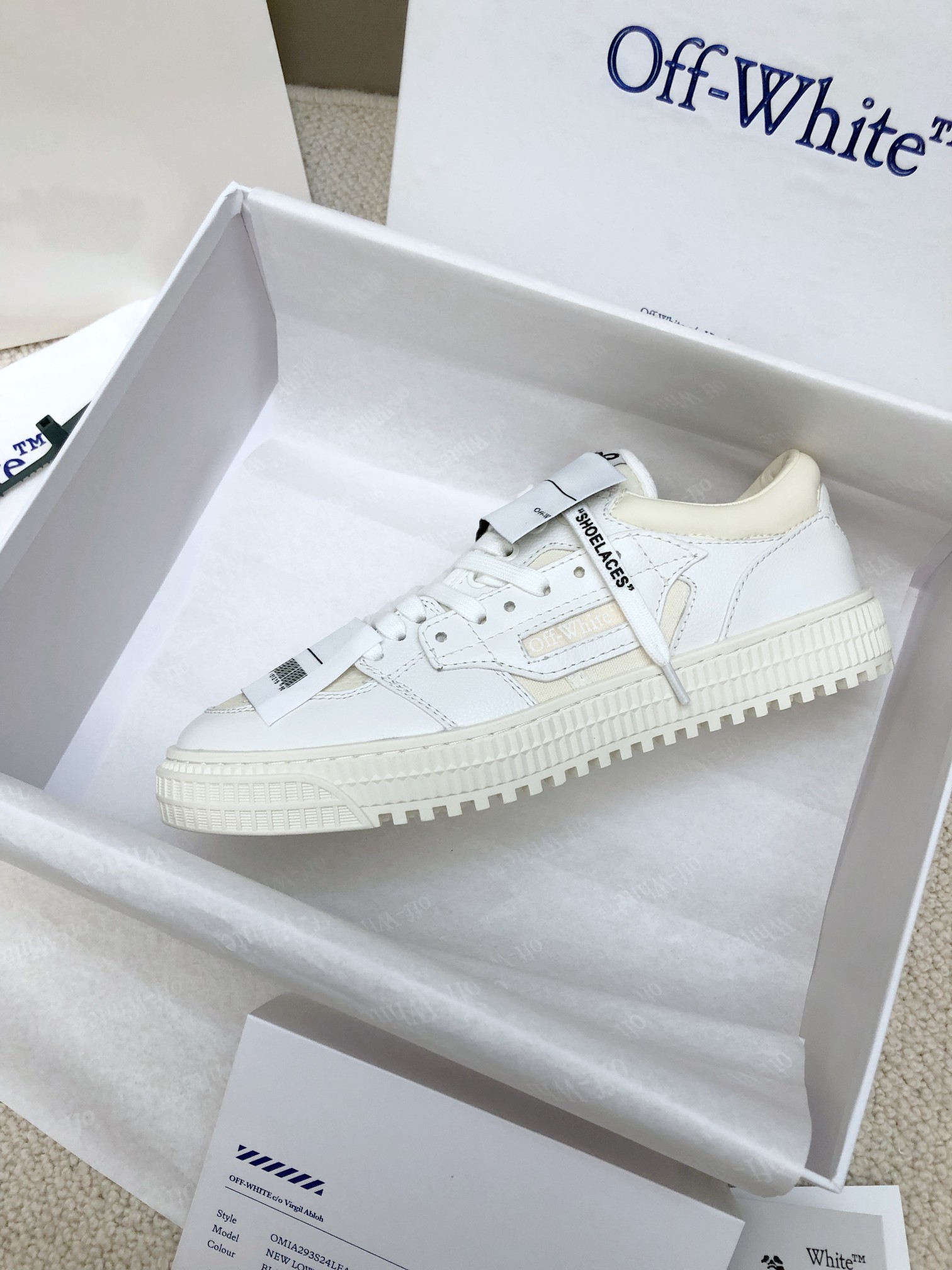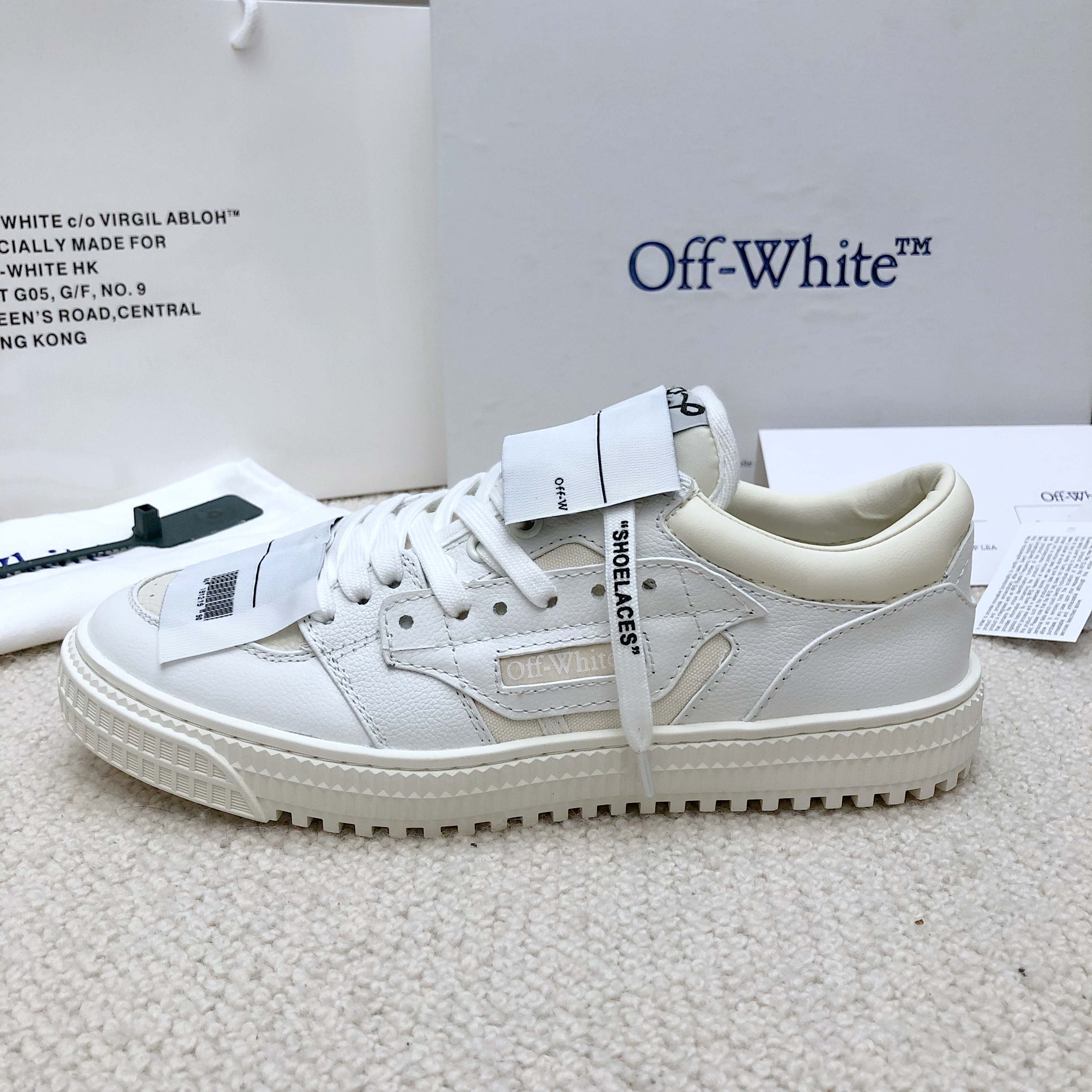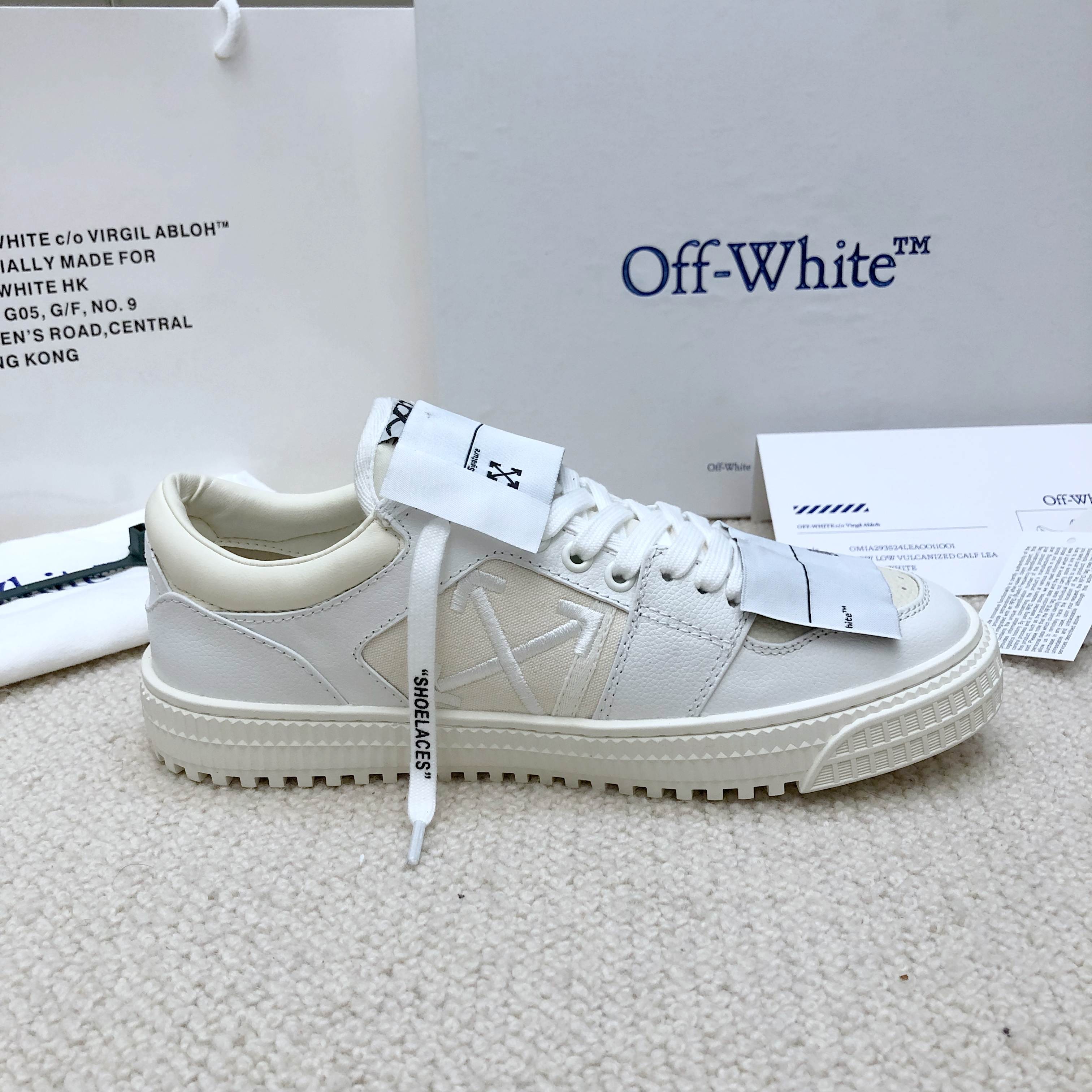 这款鞋子是AAAAA 1:1 质量 (非常棒). 使用了和原版一模一样的材料. 商标部分也保持了和OFF WHITE一样. 图片拍摄是实物鞋子拍摄, 您所收到的实物保证和我们图片一模一样.