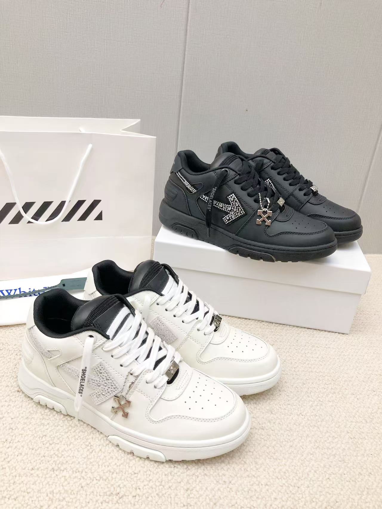 这款鞋子是AAAAA 1:1 质量 (非常棒). 使用了和原版一模一样的材料. 商标部分也保持了和OFF WHITE一样. 图片拍摄是实物鞋子拍摄, 您所收到的实物保证和我们图片一模一样.
