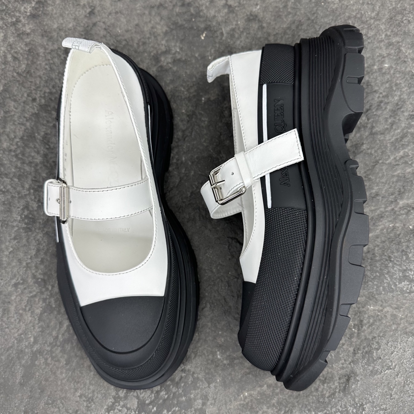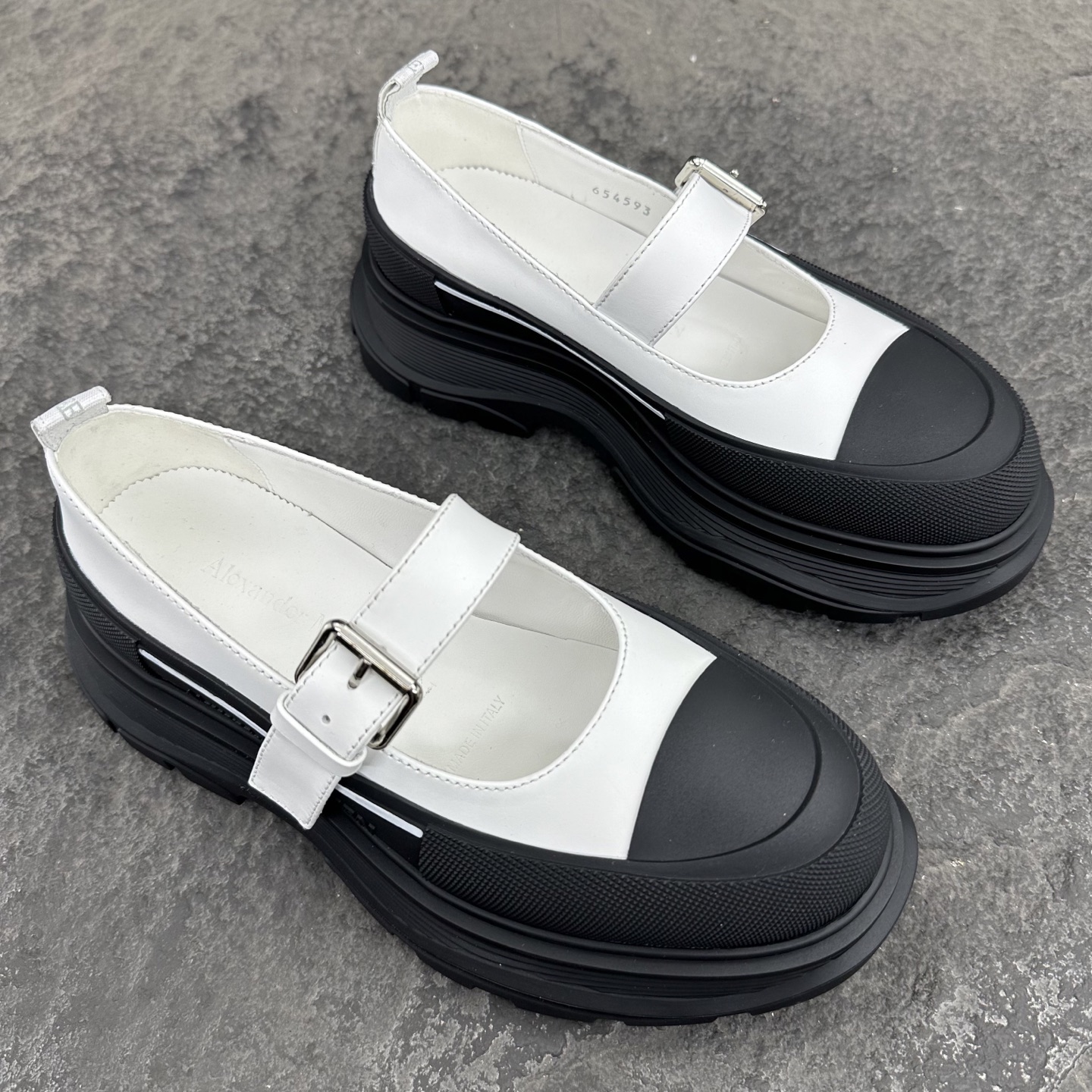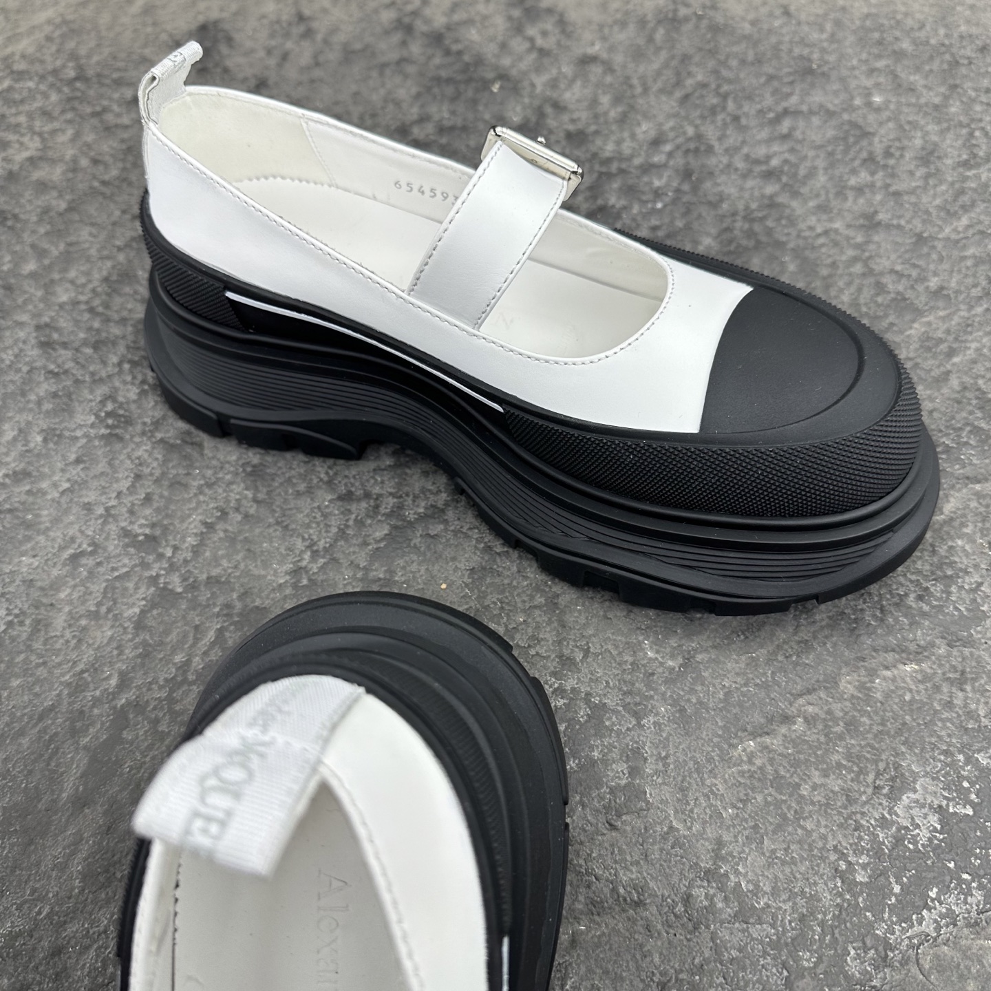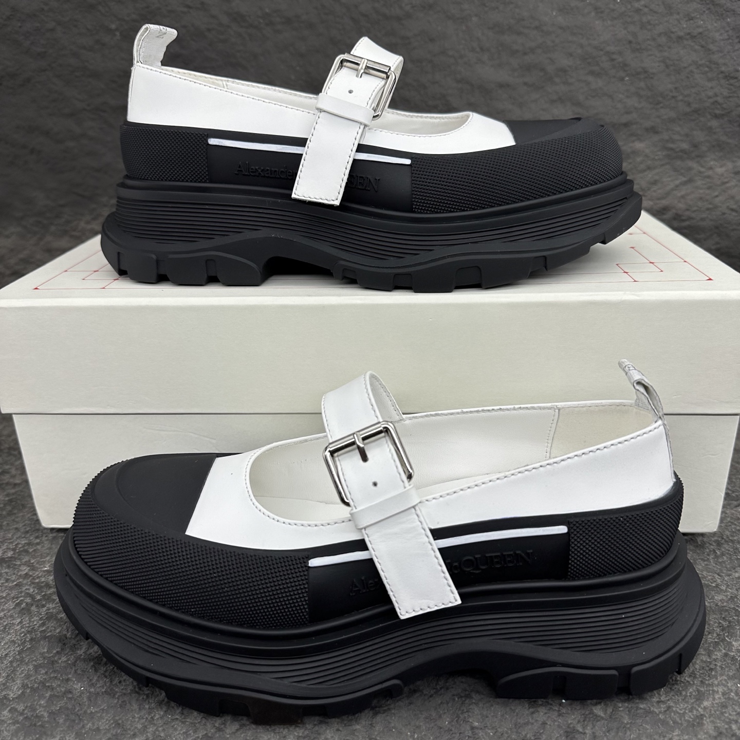 这款鞋子是AAAAA 1:1 质量 (非常棒). 使用了和原版一模一样的材料. 商标部分也保持了和亚历山大·麦昆/McQueen一样. 图片拍摄是实物鞋子拍摄, 您所收到的实物保证和我们图片一模一样.