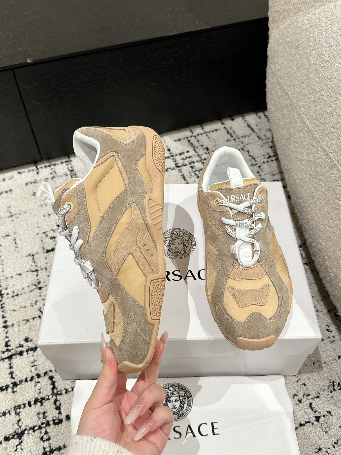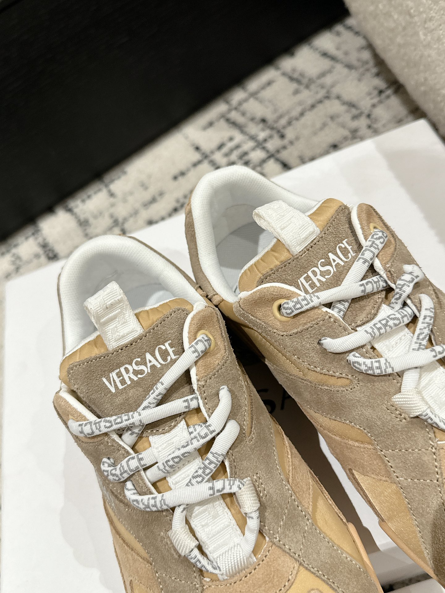 这款鞋子是AAAAA 1:1 质量 (非常棒). 使用了和原版一模一样的材料. 商标部分也保持了和范思哲/Versace一样. 图片拍摄是实物鞋子拍摄, 您所收到的实物保证和我们图片一模一样.