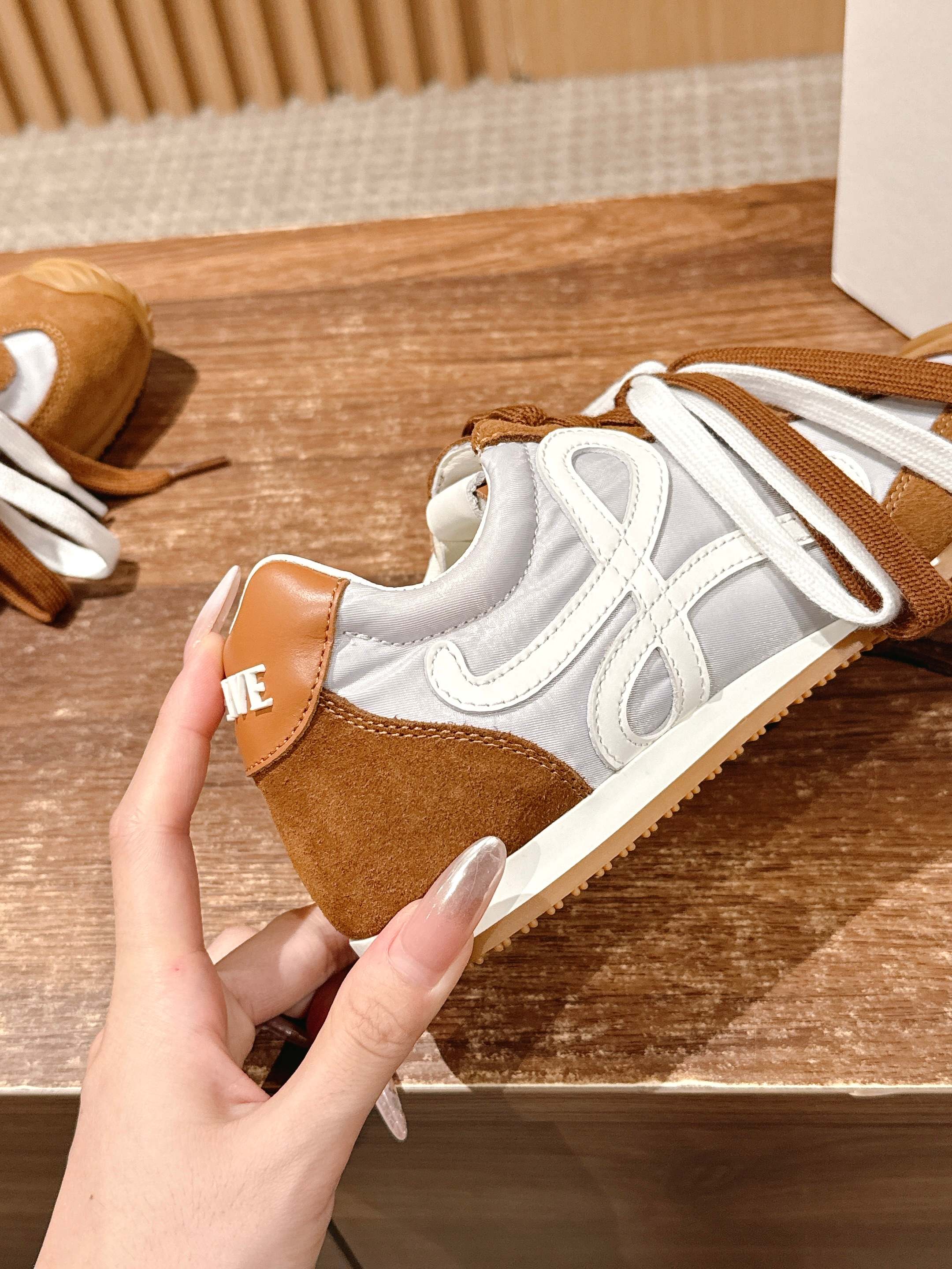 这款鞋子是AAAAA 1:1 质量 (非常棒). 使用了和原版一模一样的材料. 商标部分也保持了和罗意威/Loewe一样. 图片拍摄是实物鞋子拍摄, 您所收到的实物保证和我们图片一模一样.