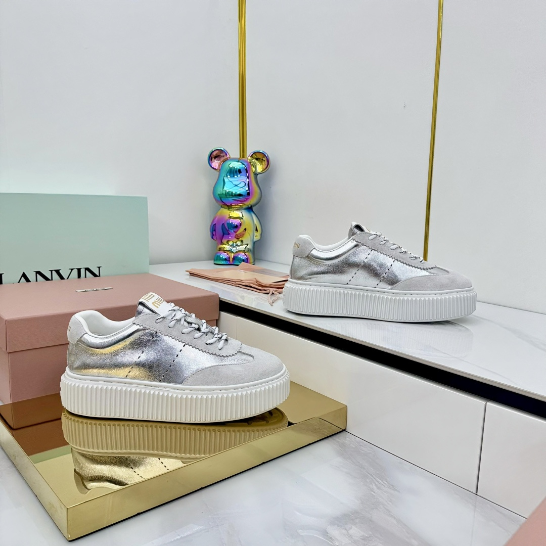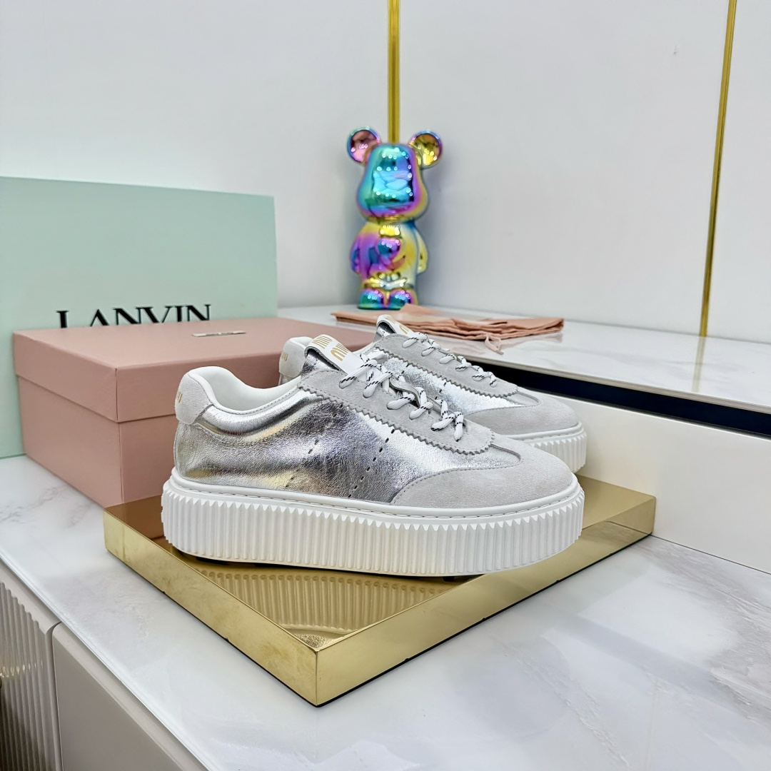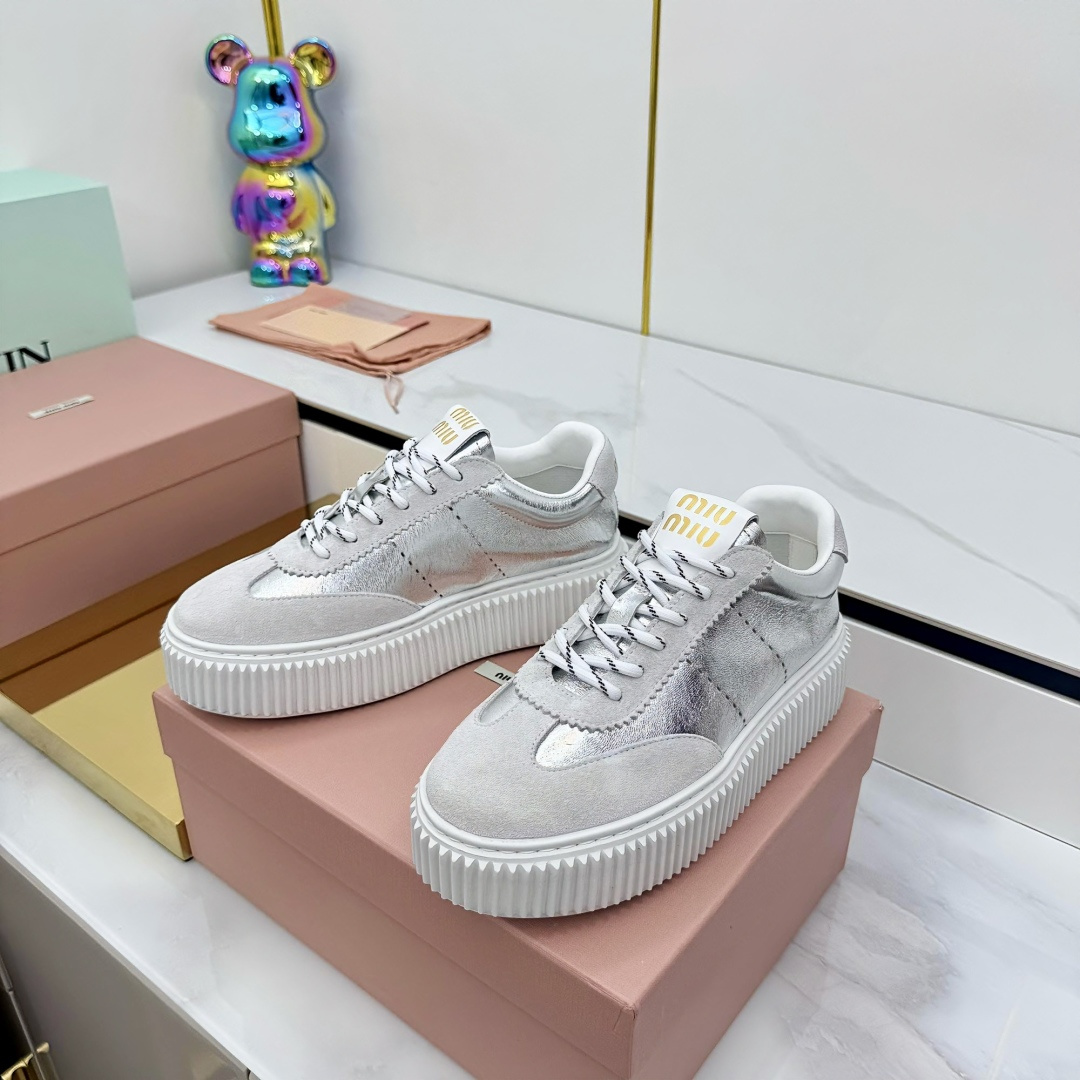 这款鞋子是AAAAA 1:1 质量 (非常棒). 使用了和原版一模一样的材料. 商标部分也保持了和缪缪/Miu Miu一样. 图片拍摄是实物鞋子拍摄, 您所收到的实物保证和我们图片一模一样.