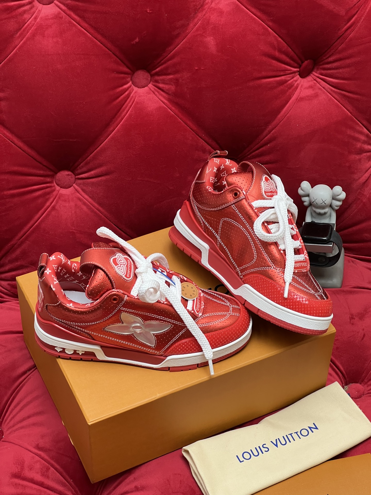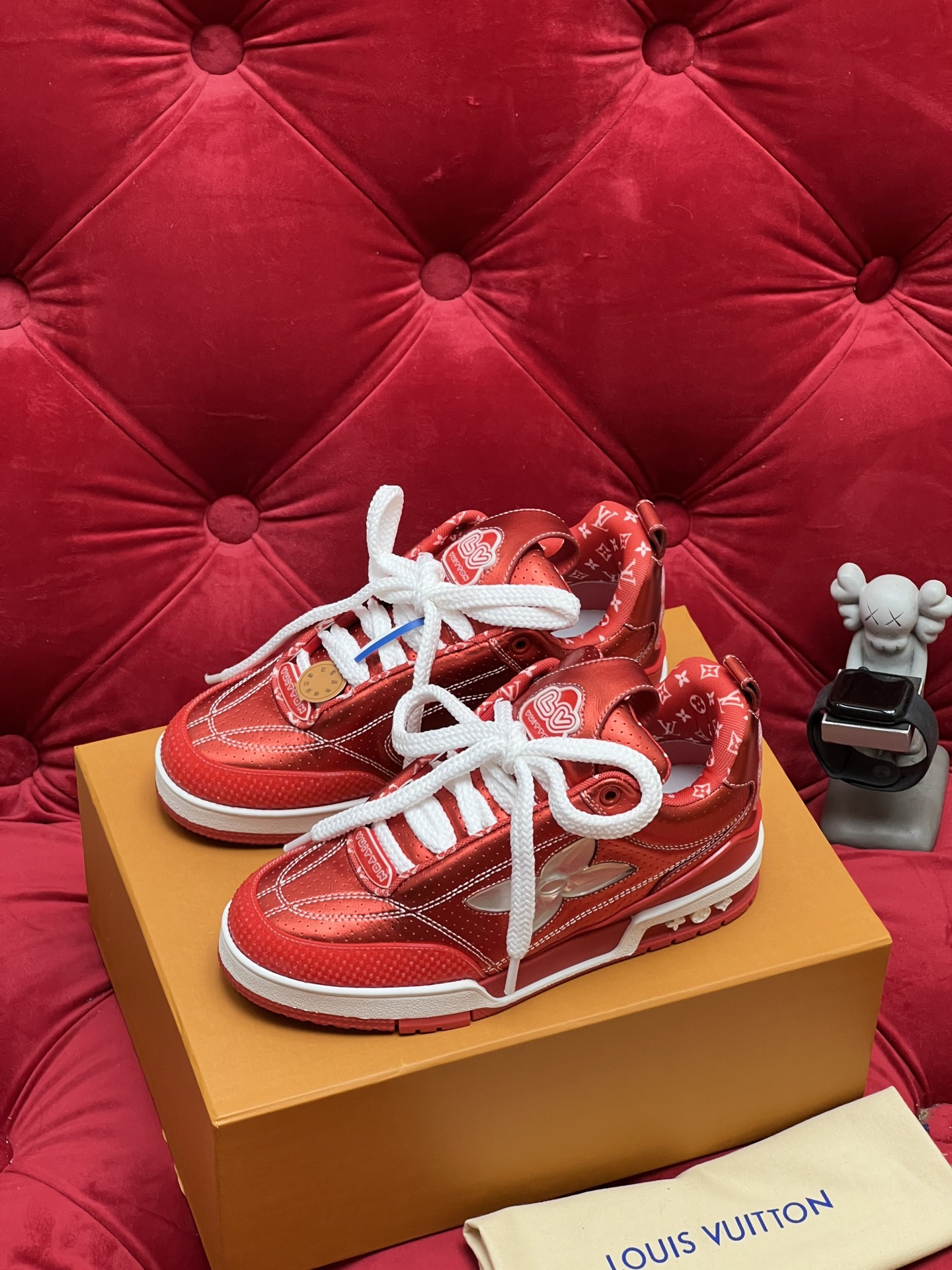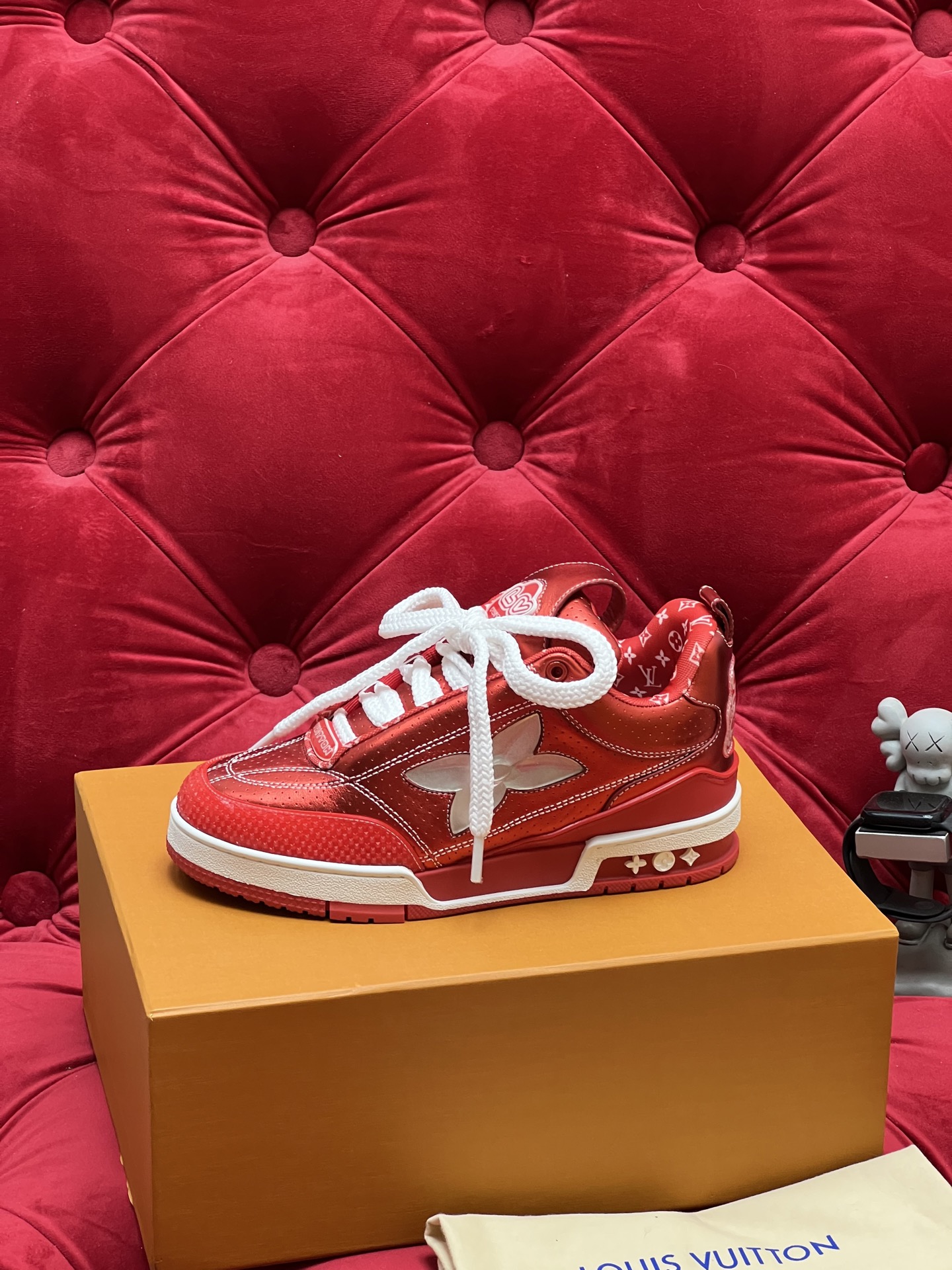 这款鞋子是AAAAA 1:1 质量 (非常棒). 使用了和原版一模一样的材料. 商标部分也保持了和路易威登/Louis Vuitton一样. 图片拍摄是实物鞋子拍摄, 您所收到的实物保证和我们图片一模一样.