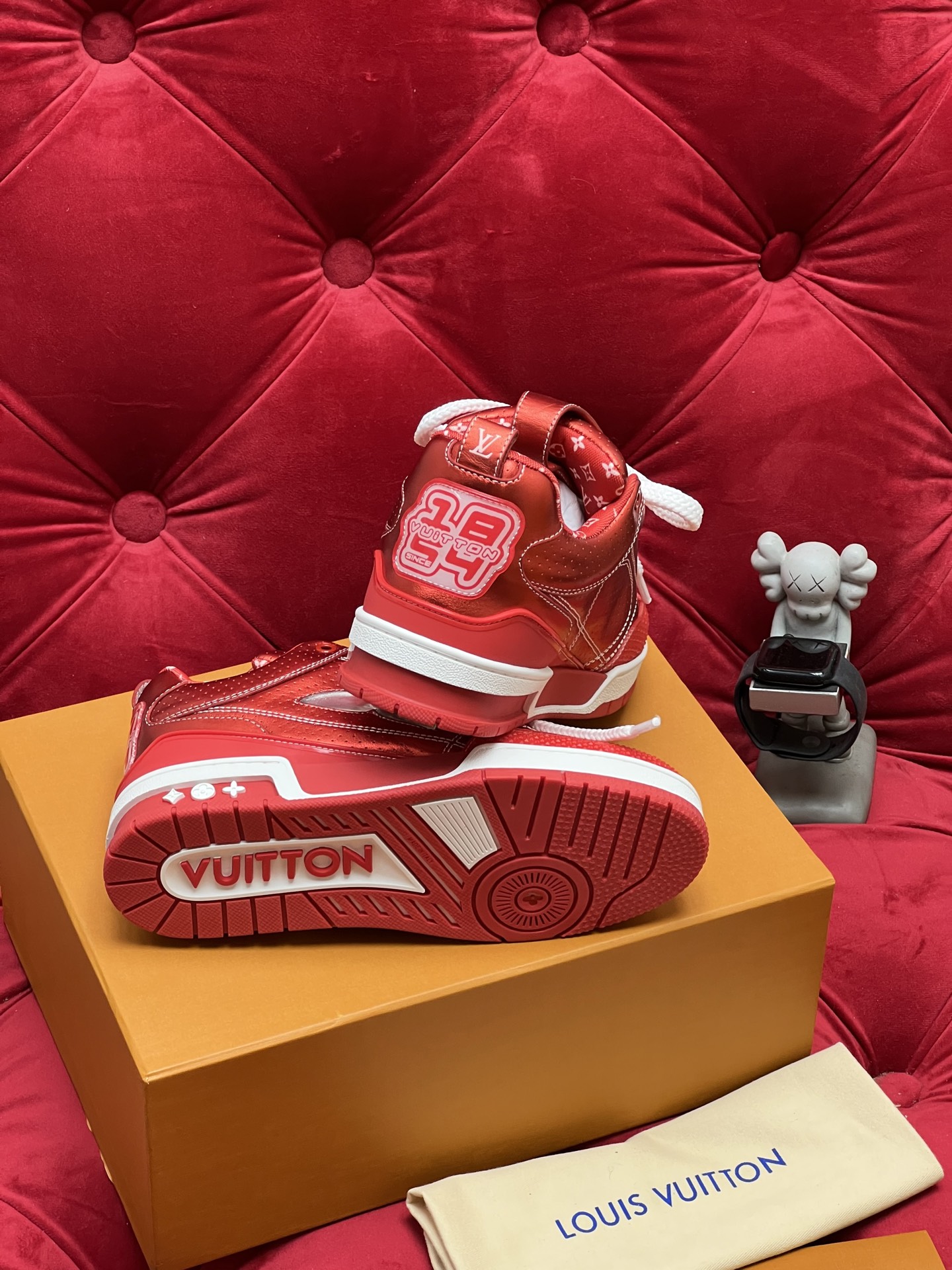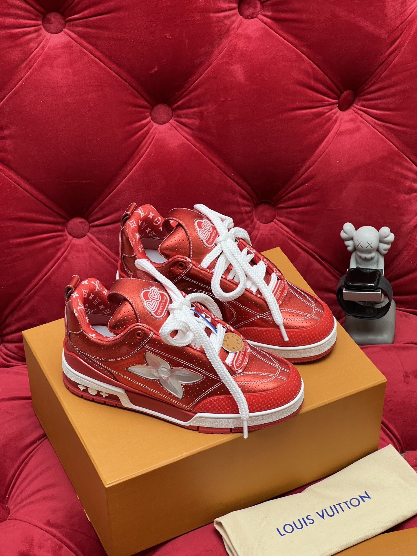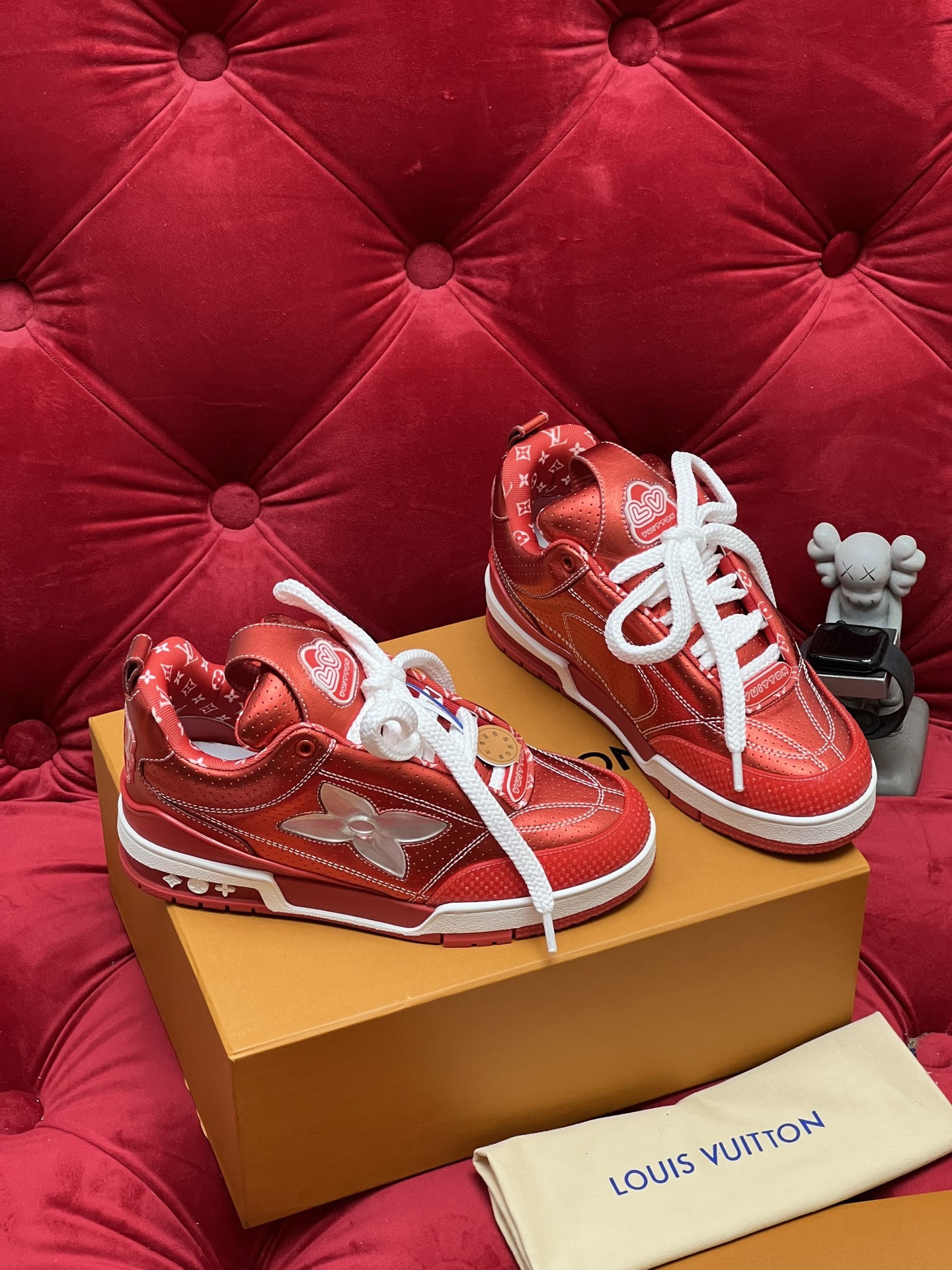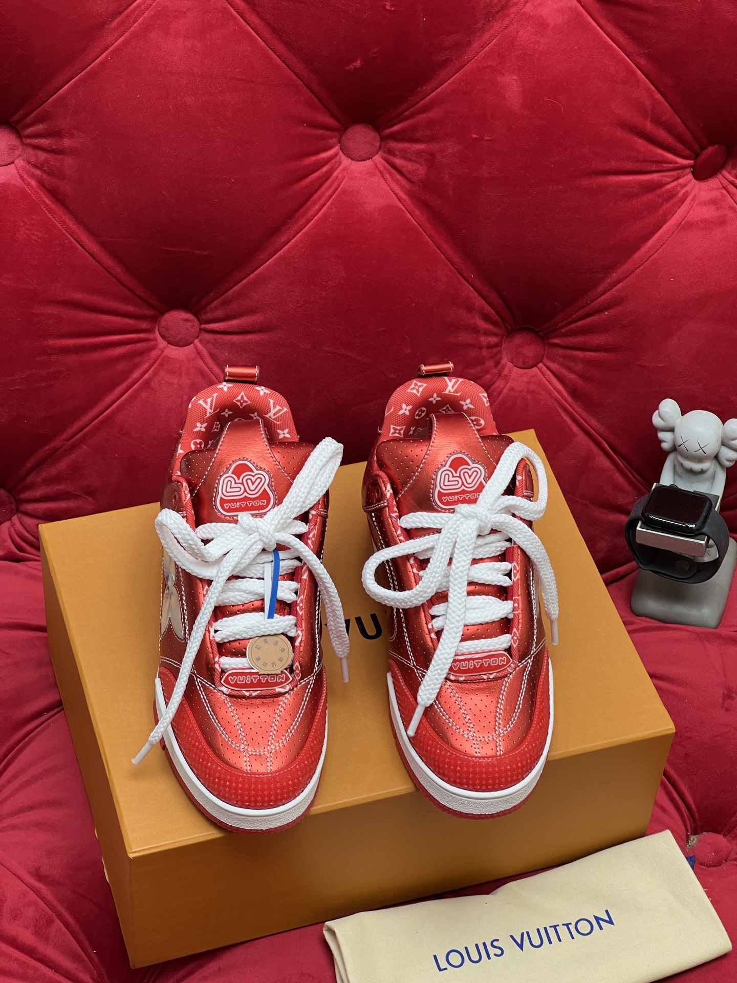 这款鞋子是AAAAA 1:1 质量 (非常棒). 使用了和原版一模一样的材料. 商标部分也保持了和路易威登/Louis Vuitton一样. 图片拍摄是实物鞋子拍摄, 您所收到的实物保证和我们图片一模一样.