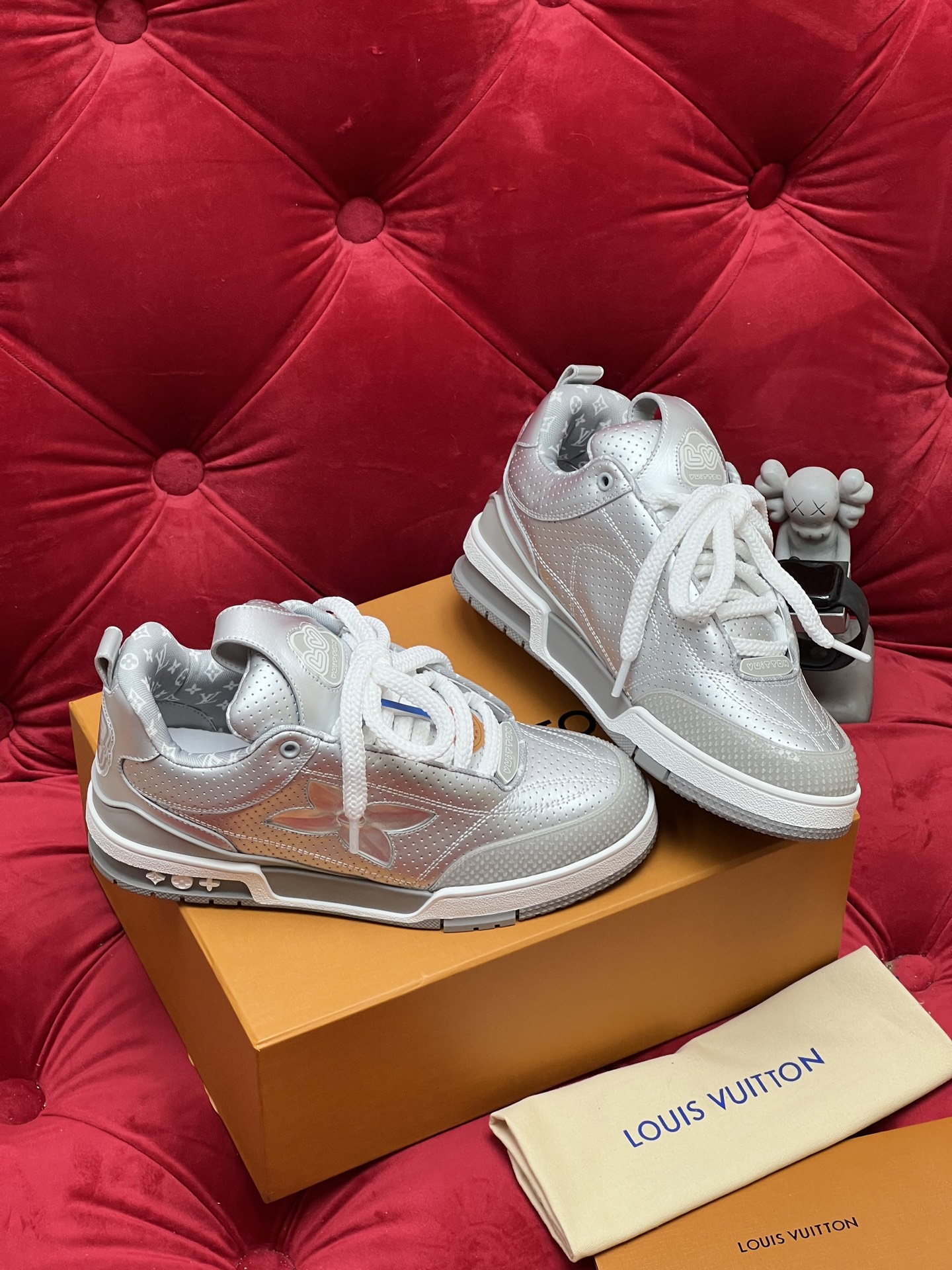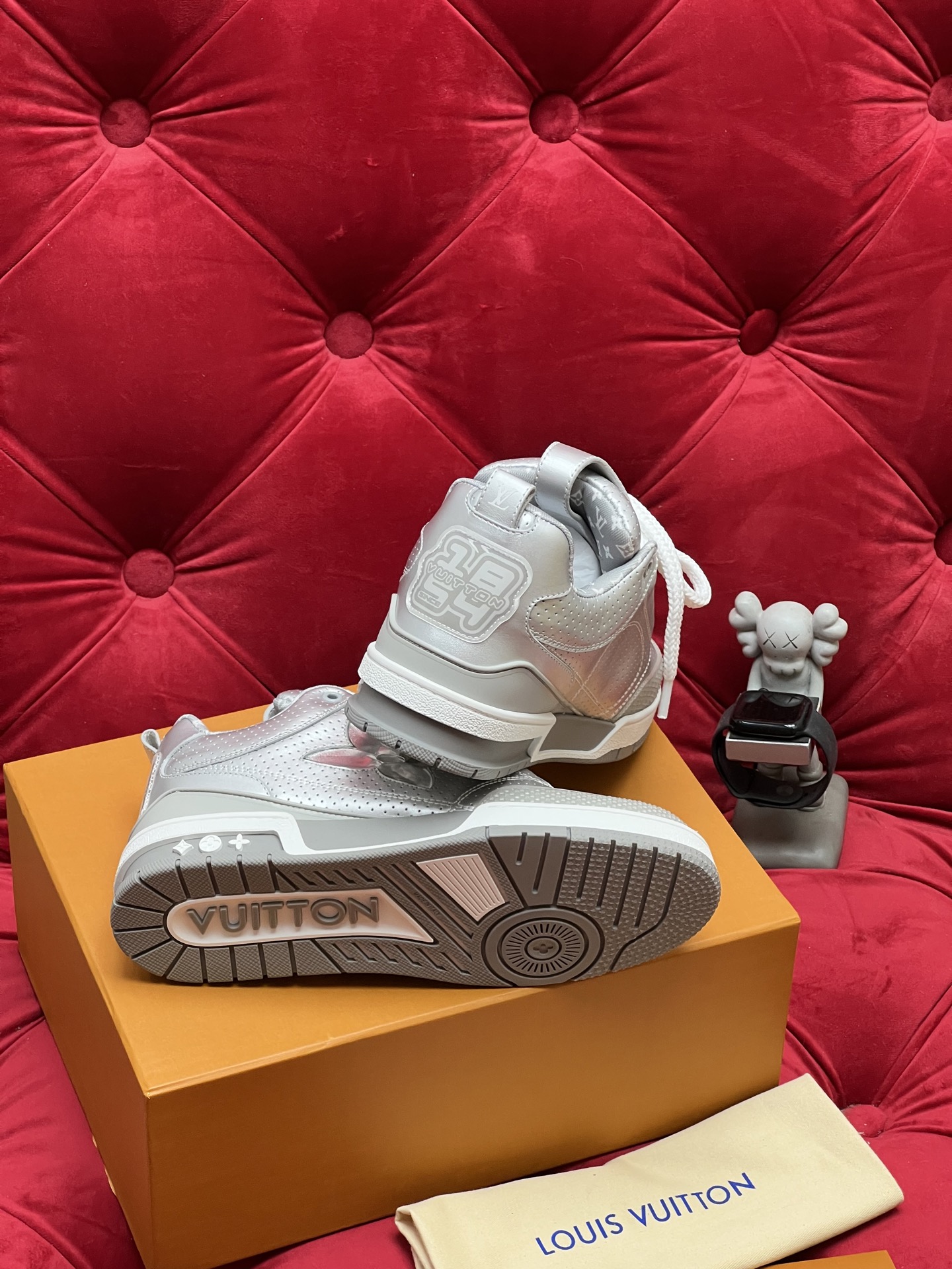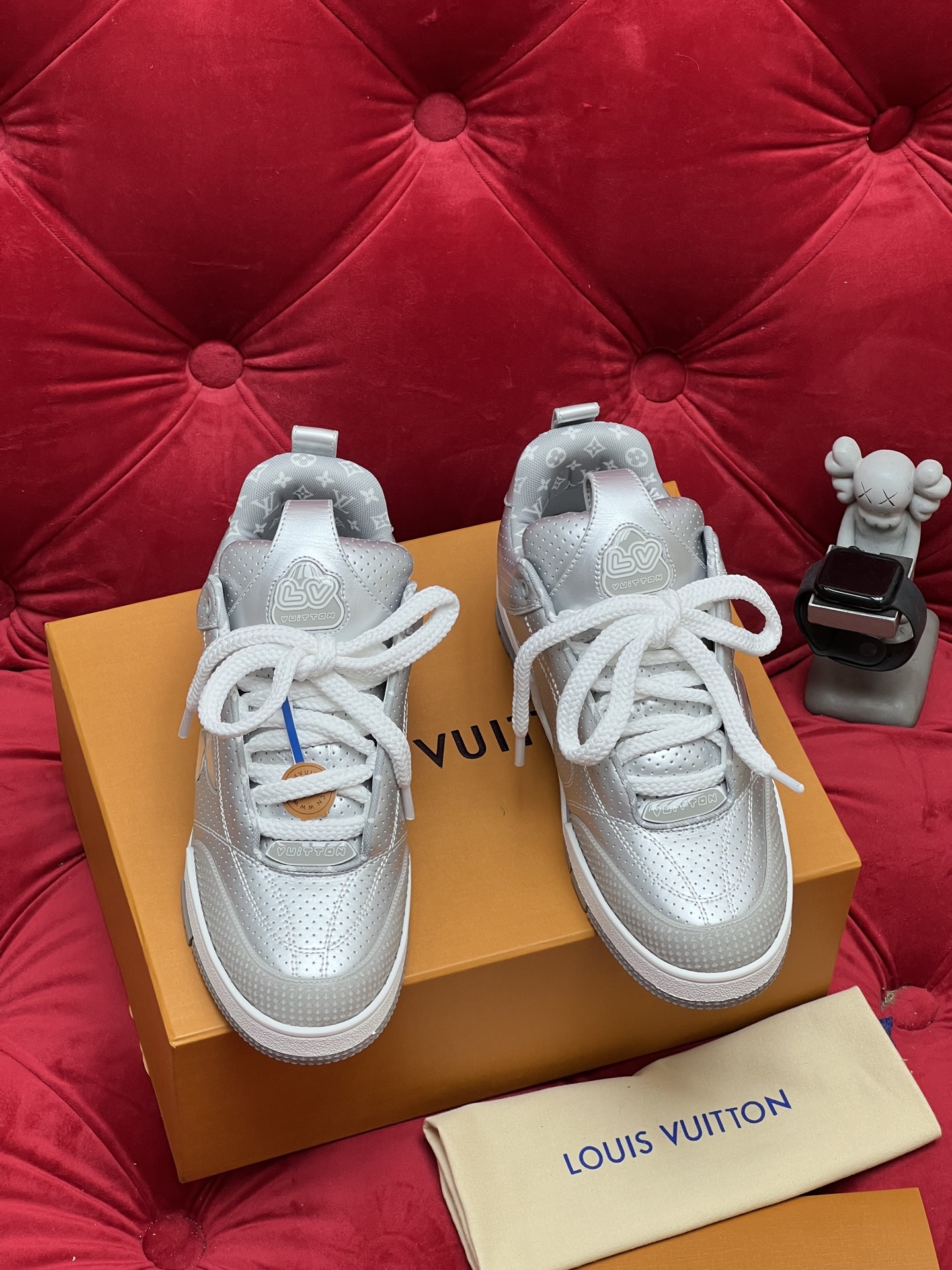 这款鞋子是AAAAA 1:1 质量 (非常棒). 使用了和原版一模一样的材料. 商标部分也保持了和路易威登/Louis Vuitton一样. 图片拍摄是实物鞋子拍摄, 您所收到的实物保证和我们图片一模一样.