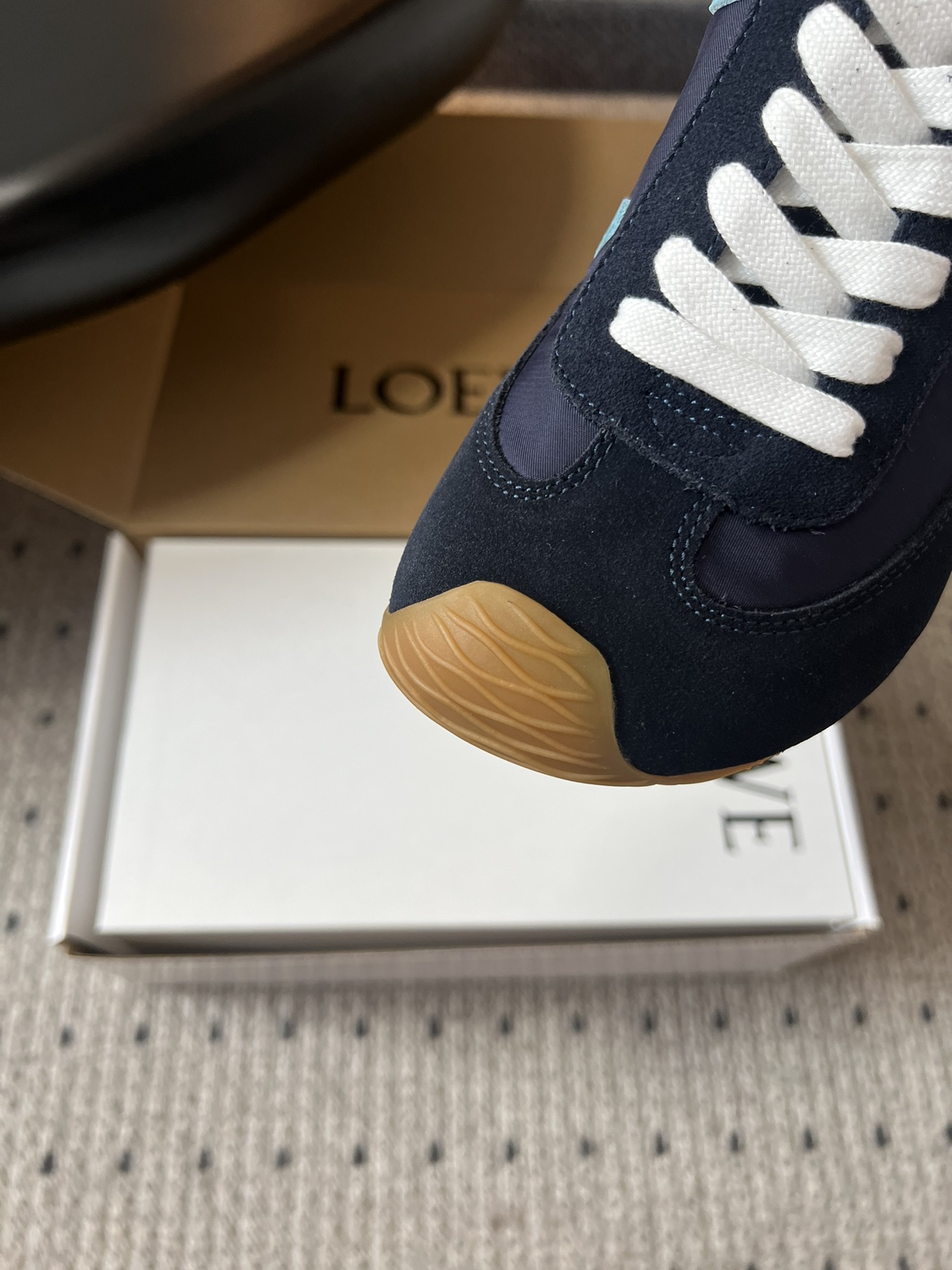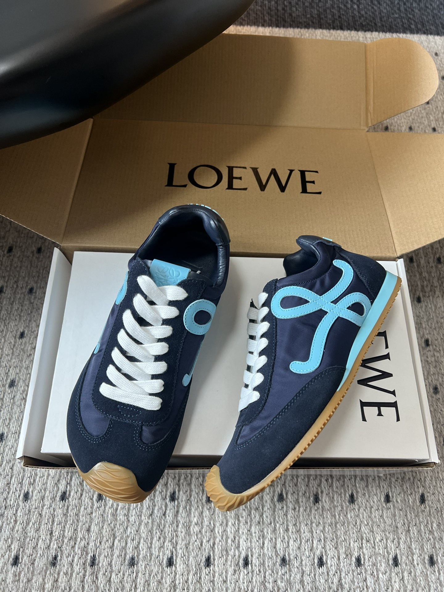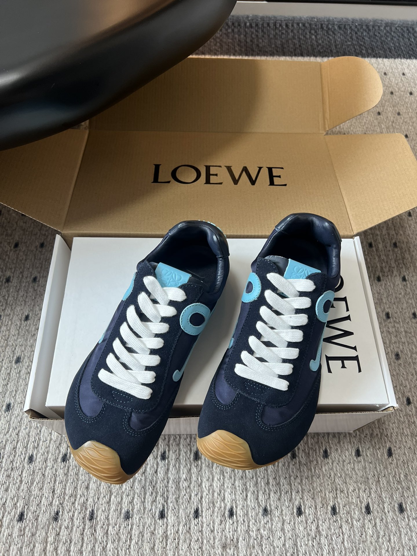 这款鞋子是AAAAA 1:1 质量 (非常棒). 使用了和原版一模一样的材料. 商标部分也保持了和罗意威/Loewe一样. 图片拍摄是实物鞋子拍摄, 您所收到的实物保证和我们图片一模一样.