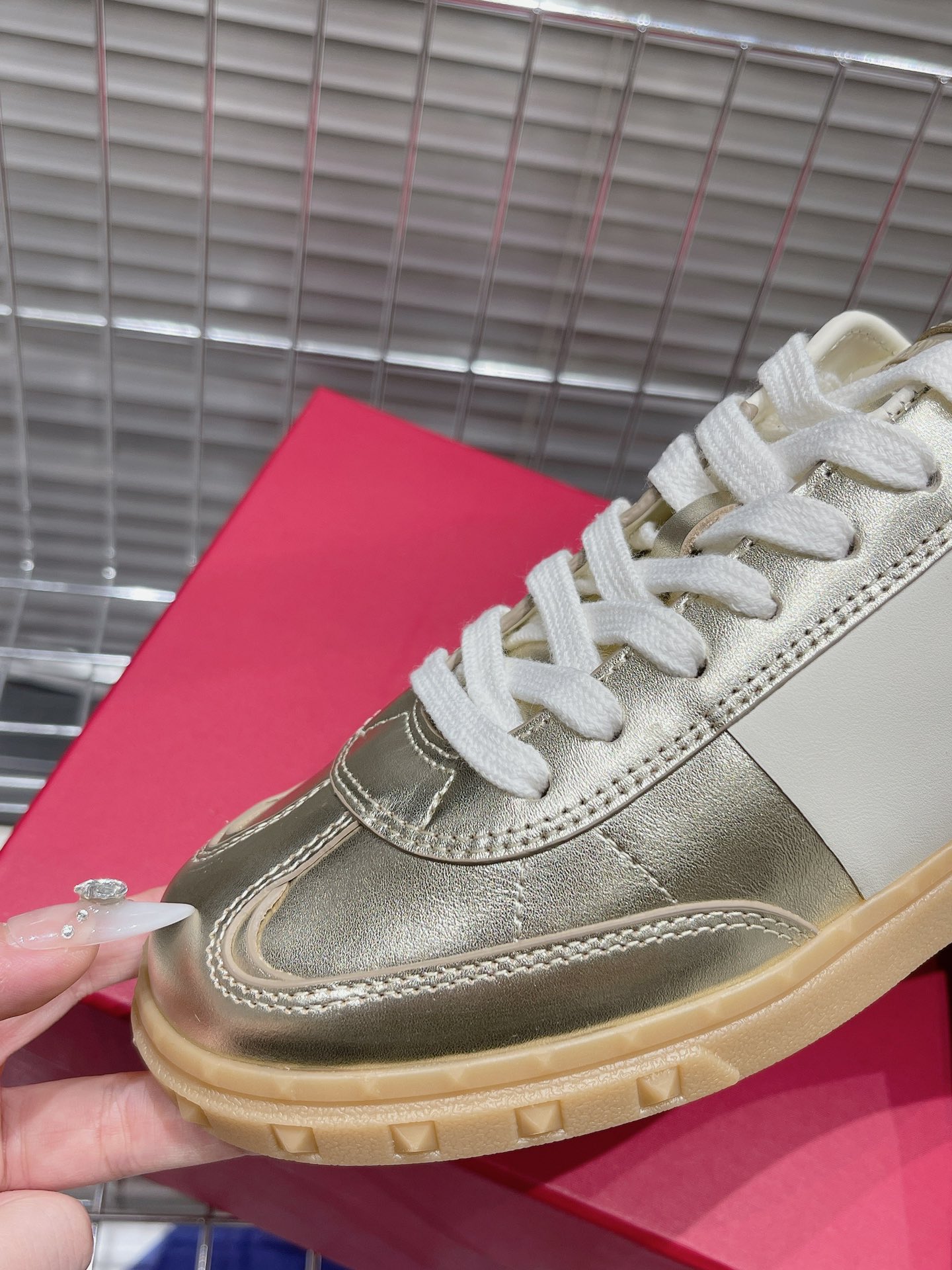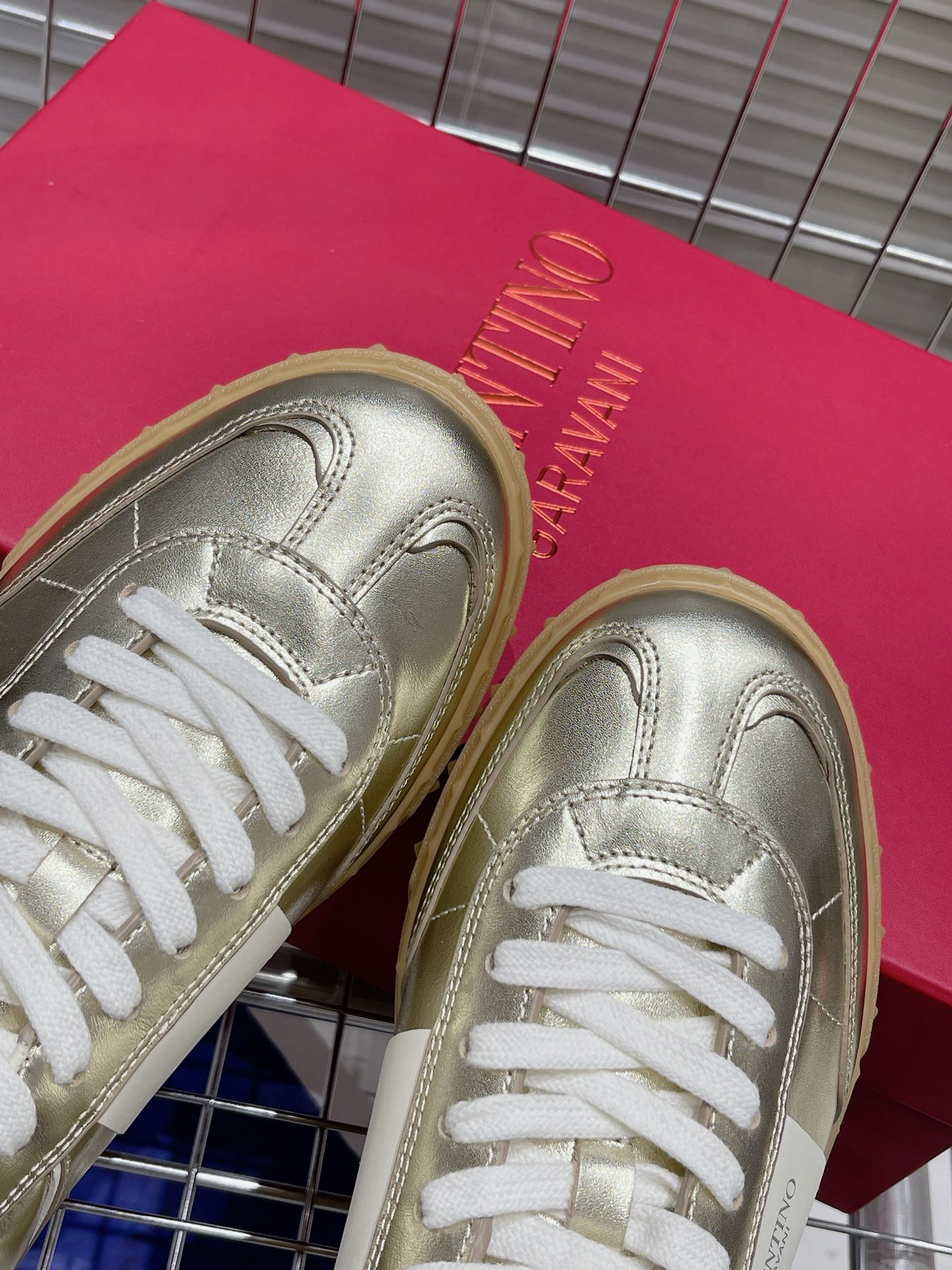 这款鞋子是AAAAA 1:1 质量 (非常棒). 使用了和原版一模一样的材料. 商标部分也保持了和华伦天奴/Valentino一样. 图片拍摄是实物鞋子拍摄, 您所收到的实物保证和我们图片一模一样.